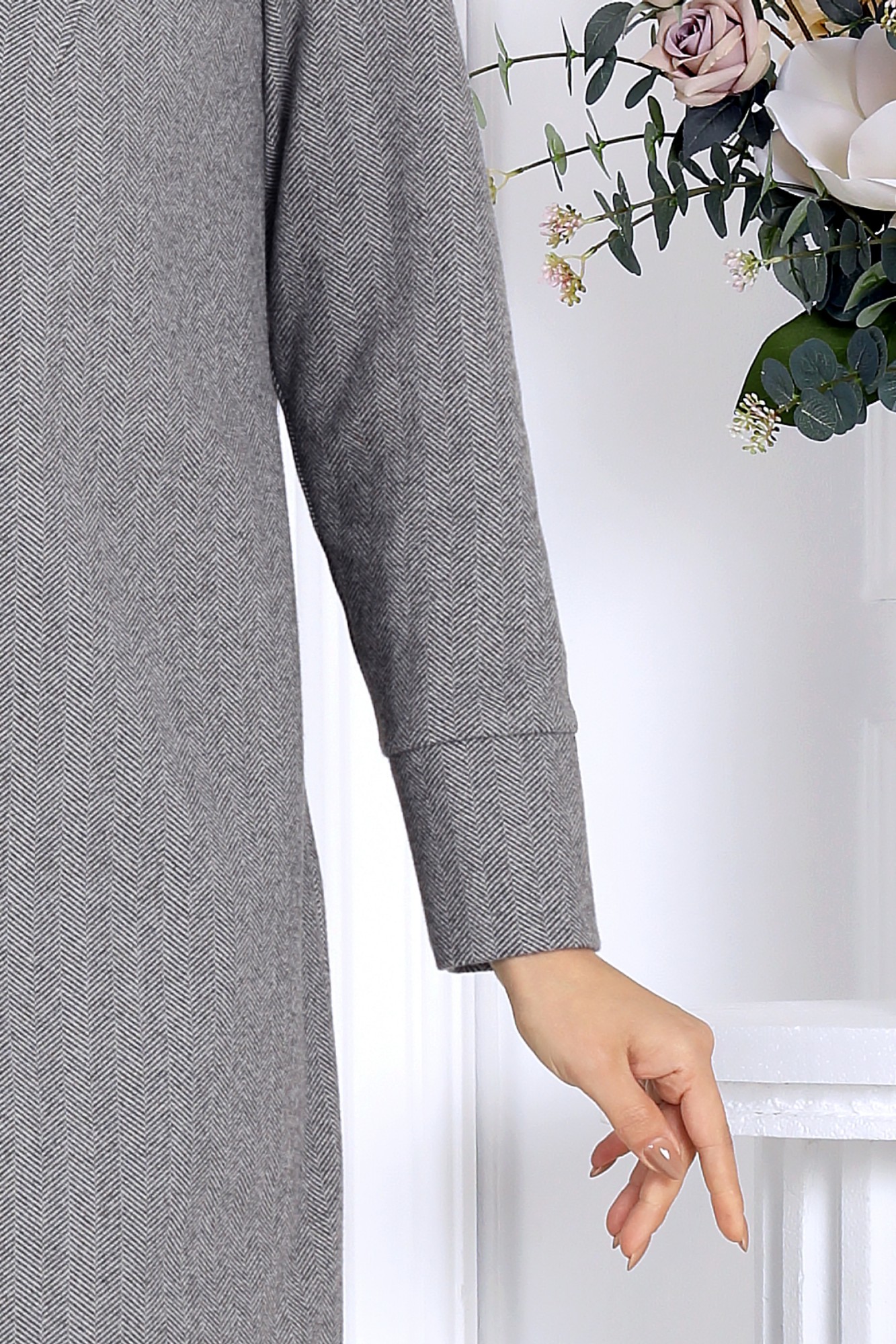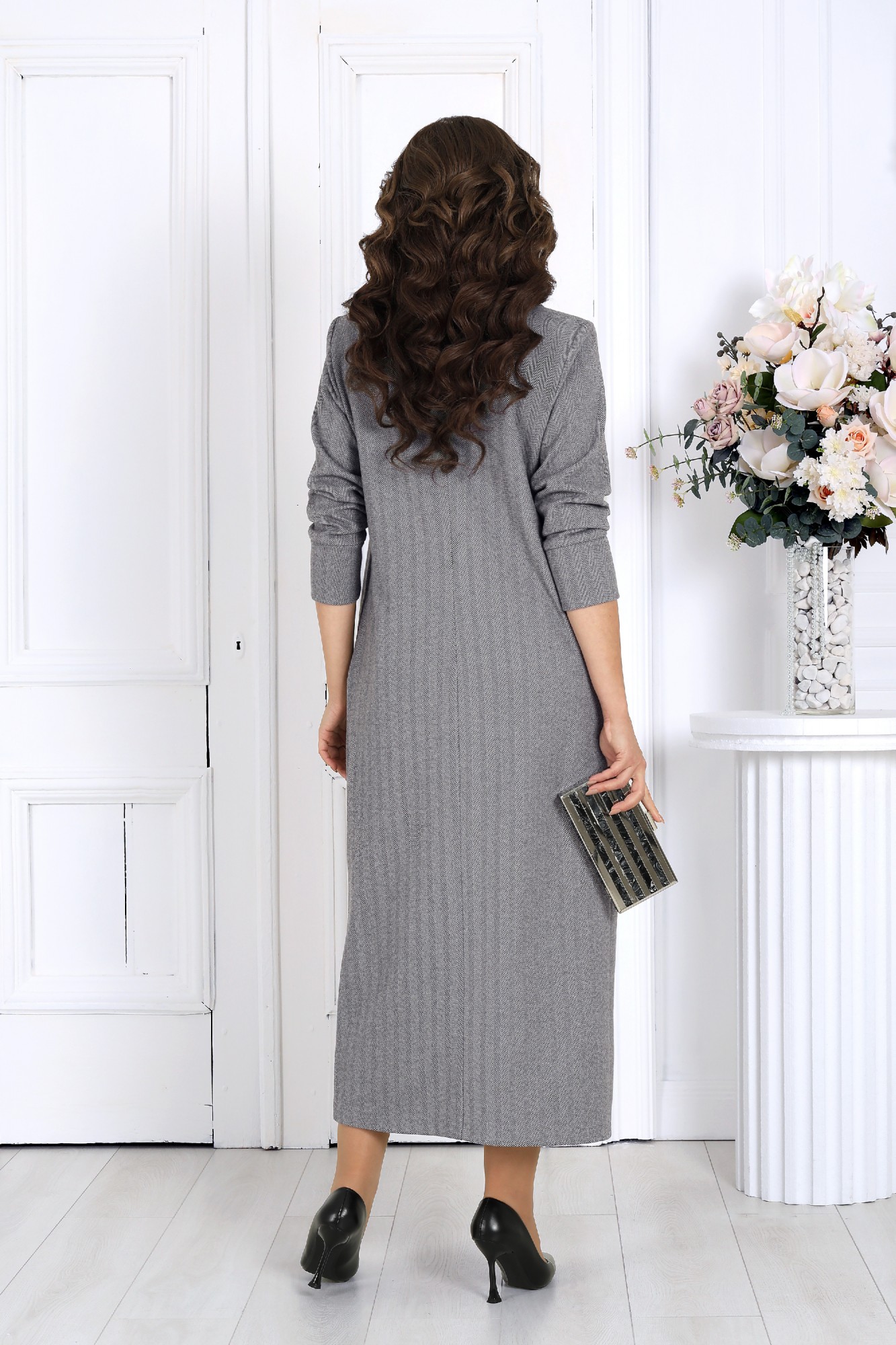 Элегантное офисное платье с карманами и разрезом для больших размеров. Пиджачный воротник модели придает особую строгость и стиль, идеально сочетаясь с деловым имиджем. Длинные рукава с притачными манжетами завершают образ, добавляя нотки классической элегантности. Это платье дарит не только стиль, но и ощущение уверенности, подчеркивая ваш статус и утонченный вкус. Подходит для женщин с любыми формами, создавая идеальный силуэт даже в больших размерах. Платье женское прямого силуэта, выполнено из трикотажного полотна «елочка». Модель без подкладки, без застежки. В боковых швах платья обработаны карманы. По переду – имитация потайной бортовой застежки; от плечевых швов к центру груди направлены вытачки. Спинка со средним швом. Воротник пиджачного типа. Рукав втачной, длинный, с притачной, замкнутой манжетой по низу.