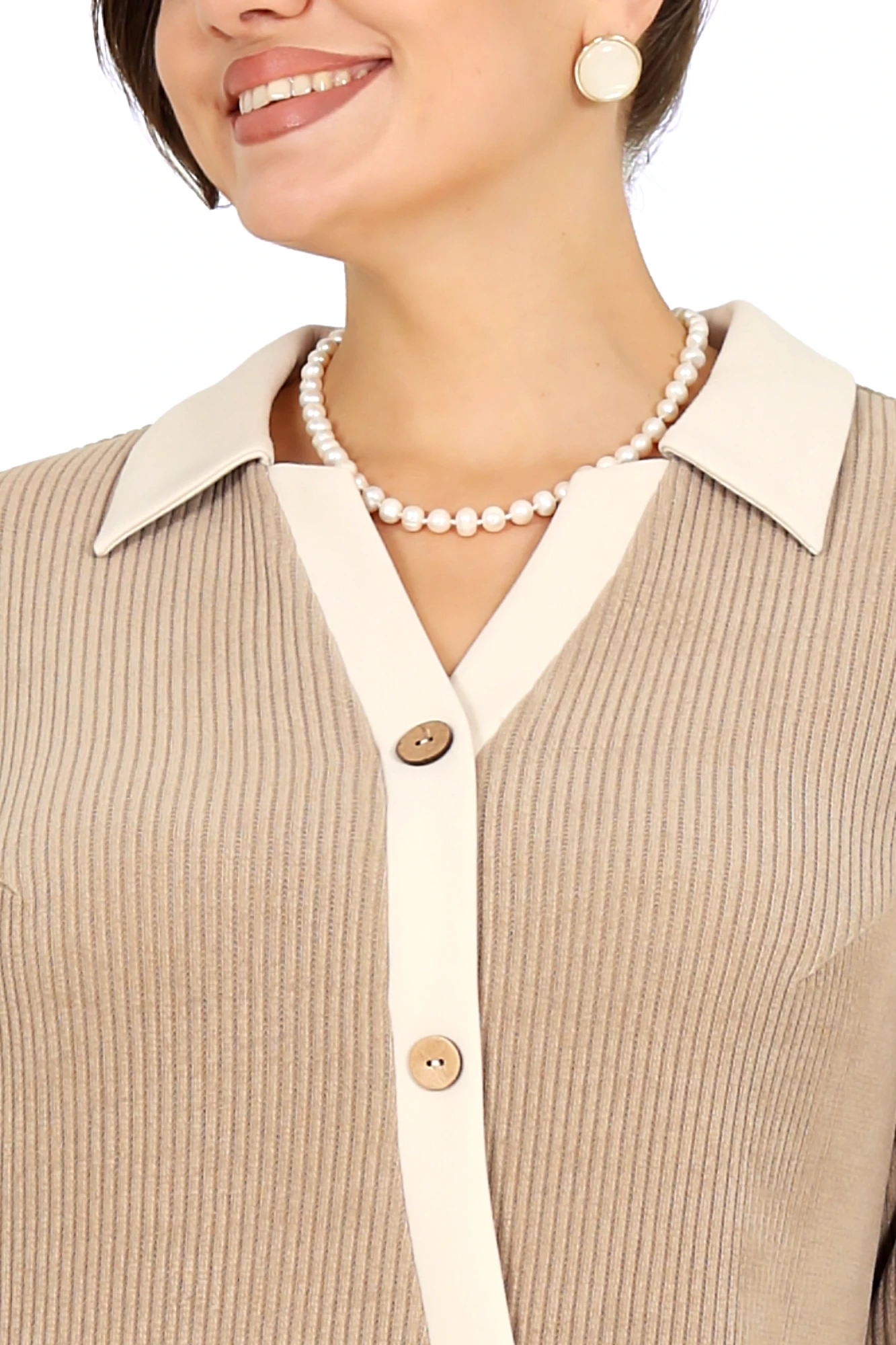 Женственное и универсальное платье, которое легко впишется как в деловой гардероб, так и в более нарядные образы. Модель выполнена из мягкого фактурного трикотажа с рубчиком — ткань приятна к телу, хорошо держит форму и обеспечивает комфорт в течение всего дня. Полуприлегающий силуэт аккуратно подчеркивает фигуру, не сковывая движений, а продуманные вытачки по переду и спинке создают красивую посадку, особенно для женщин с формами. Вертикальный фигурный подрез по центру визуально вытягивает силуэт и делает образ стройнее. Контрастная планка с декоративными пуговицами добавляет изящный акцент и эффектно имитирует застежку, придавая платью стильный и ухоженный вид. Отложной воротник придает модели нотки классики и делает платье уместным для офиса, деловых встреч и повседневных выходов. Длинный втачной рукав обеспечивает дополнительный комфорт и делает модель идеальной для прохладного сезона. Платье отлично сочетается как с лодочками и клатчем, так и с более повседневными аксессуарами. Это платье — удачный выбор для тех, кто ценит удобство, универсальность и аккуратный стиль, не жертвуя женственностью. Платье женское полуприлегающего силуэта, выполнено из фактурного трикотажного полотна с рубчиком. Модель без подкладки, без застежки и плечевых накладок. Перед платья с нагрудными вытачками, направленными от пройм, спинка – с талиевыми. По середине переда обработан фигурный вертикальный подрез, с притачными планками, имитирующими застежку на декоративные пуговицы. Планка выполнена из гладкого отделочного трикотажного полотна. Горловина оформлена отложным воротником. Рукав втачной, длинный.