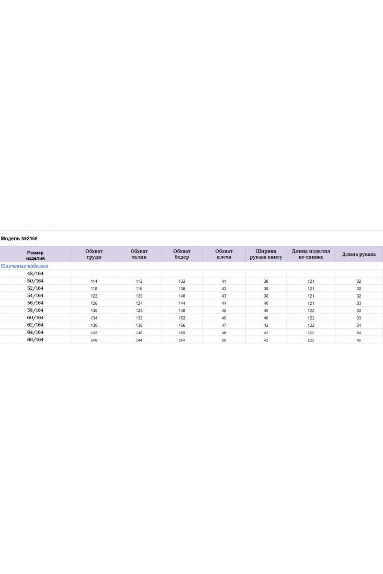 Таблица размеров