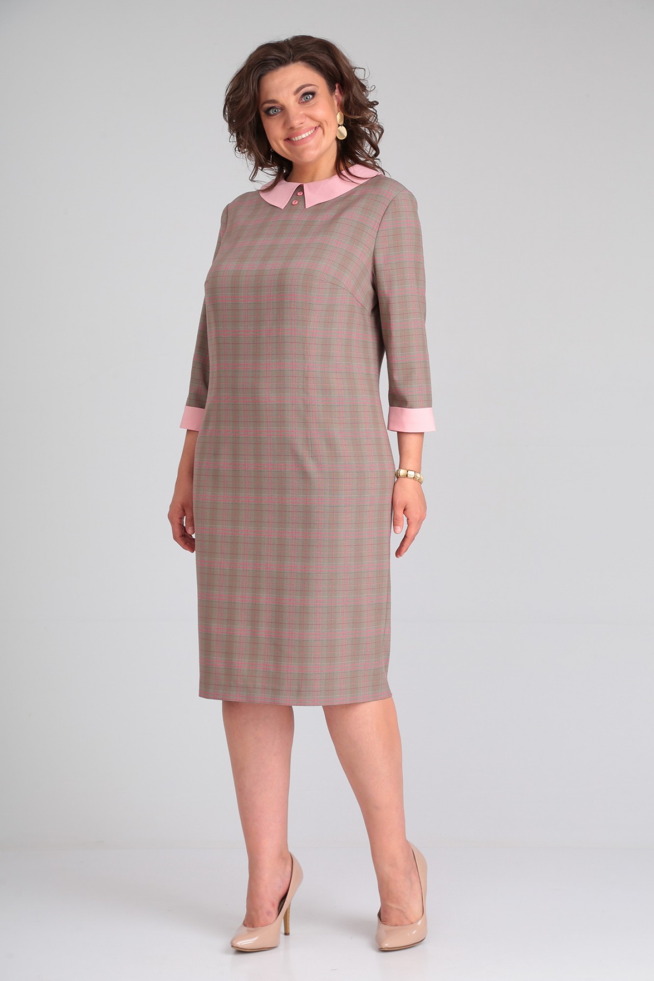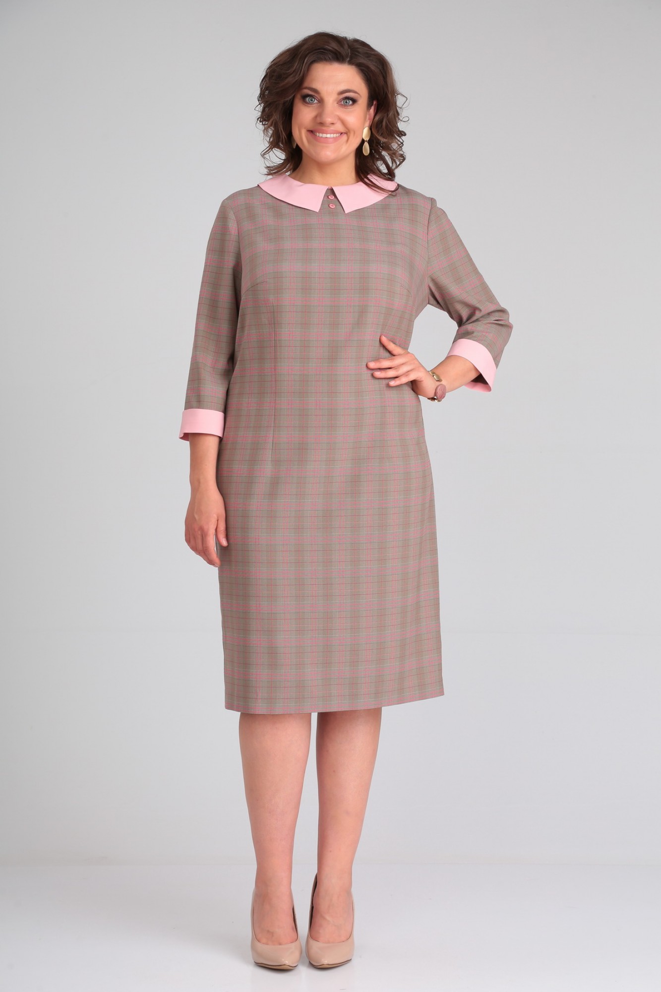 Платье Мублиз плюс 076 розово-коричневый, клетка с ID товара 389914