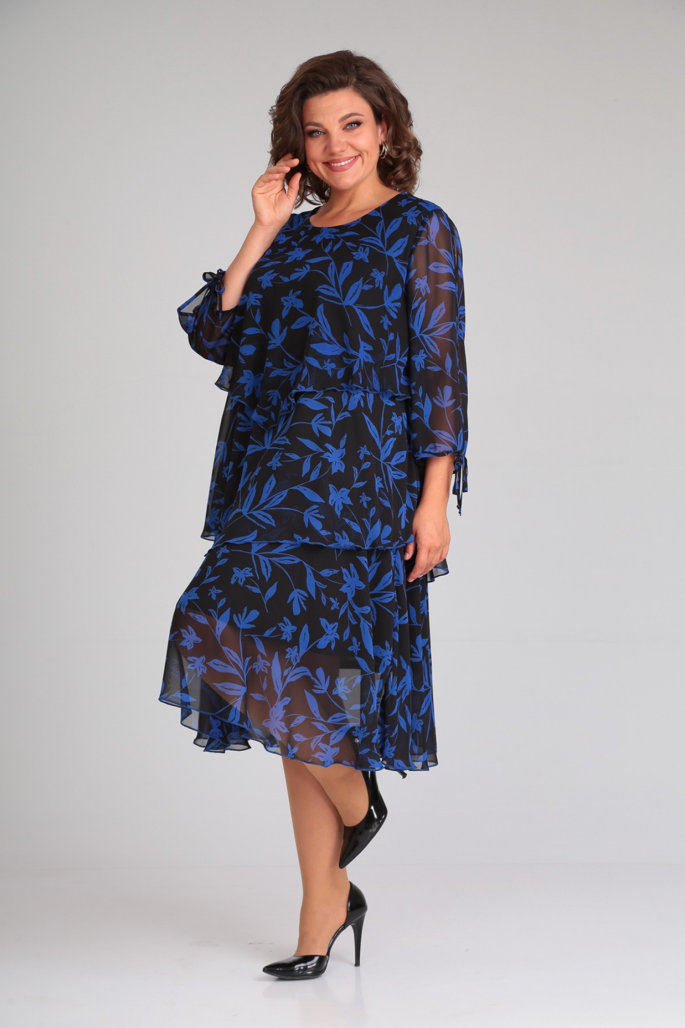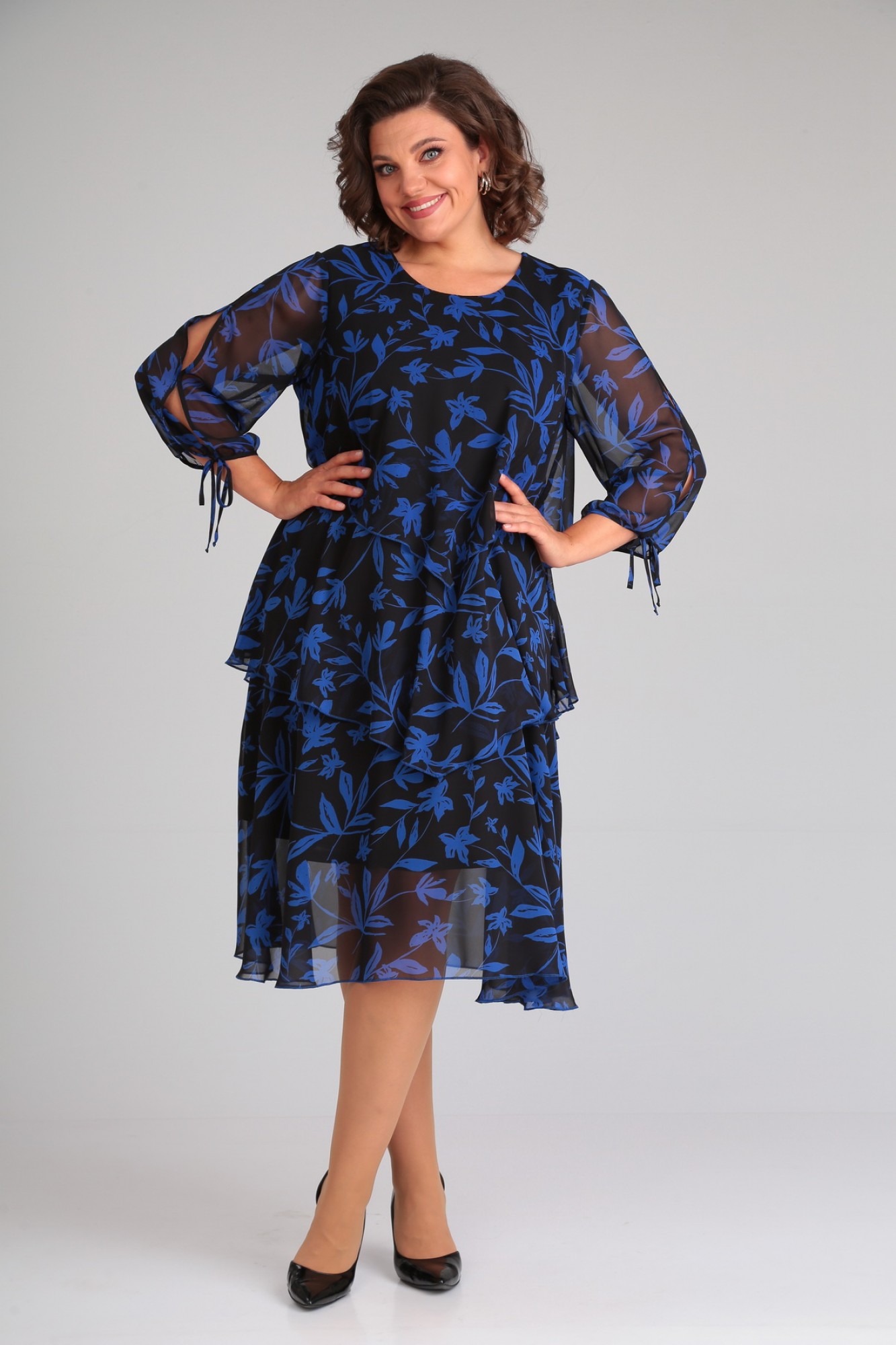 Платье Мублиз плюс 105 синий,цветок с ID товара 389730