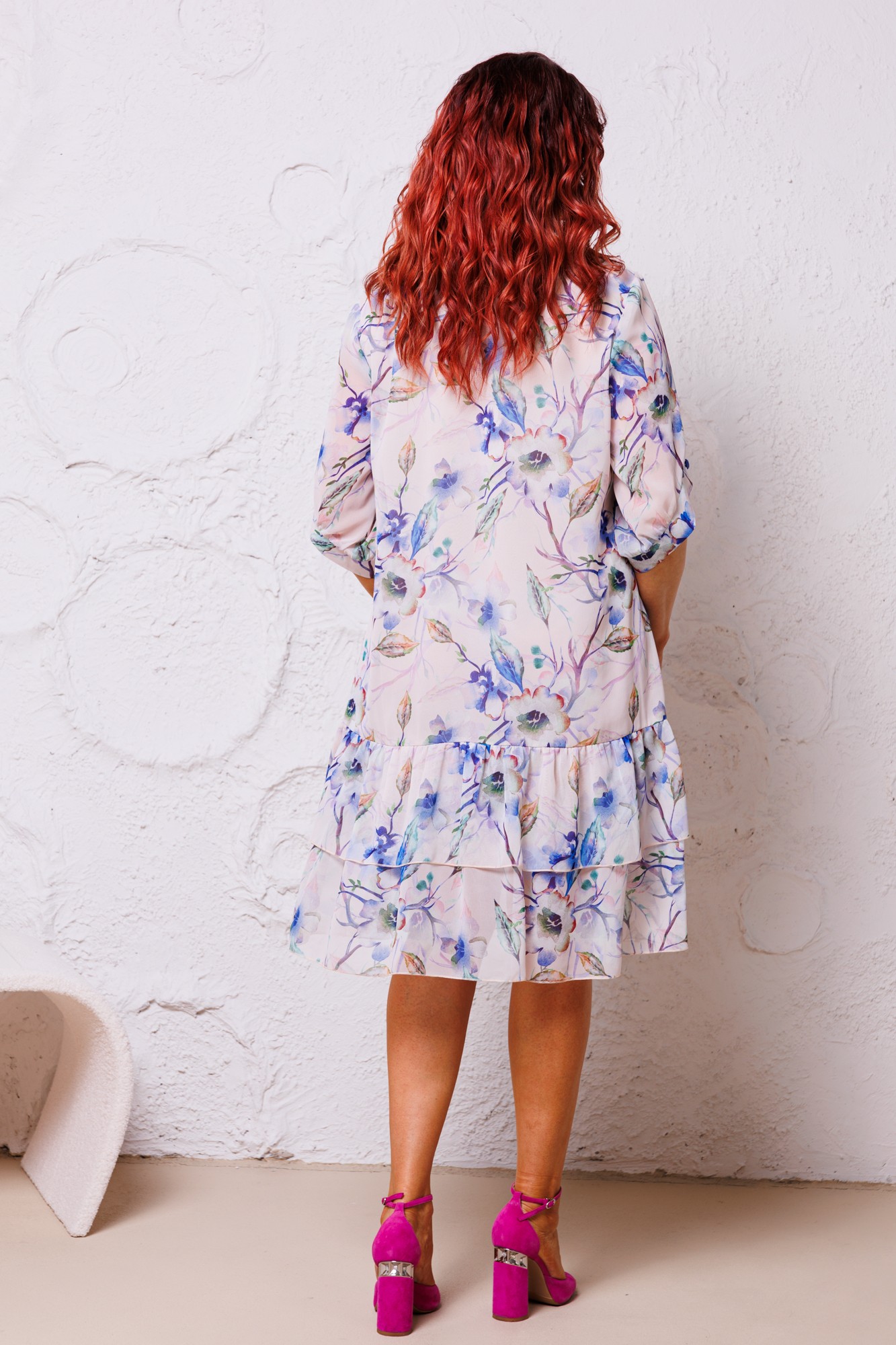 Платье Мублиз плюс 114 белый, принт цветы