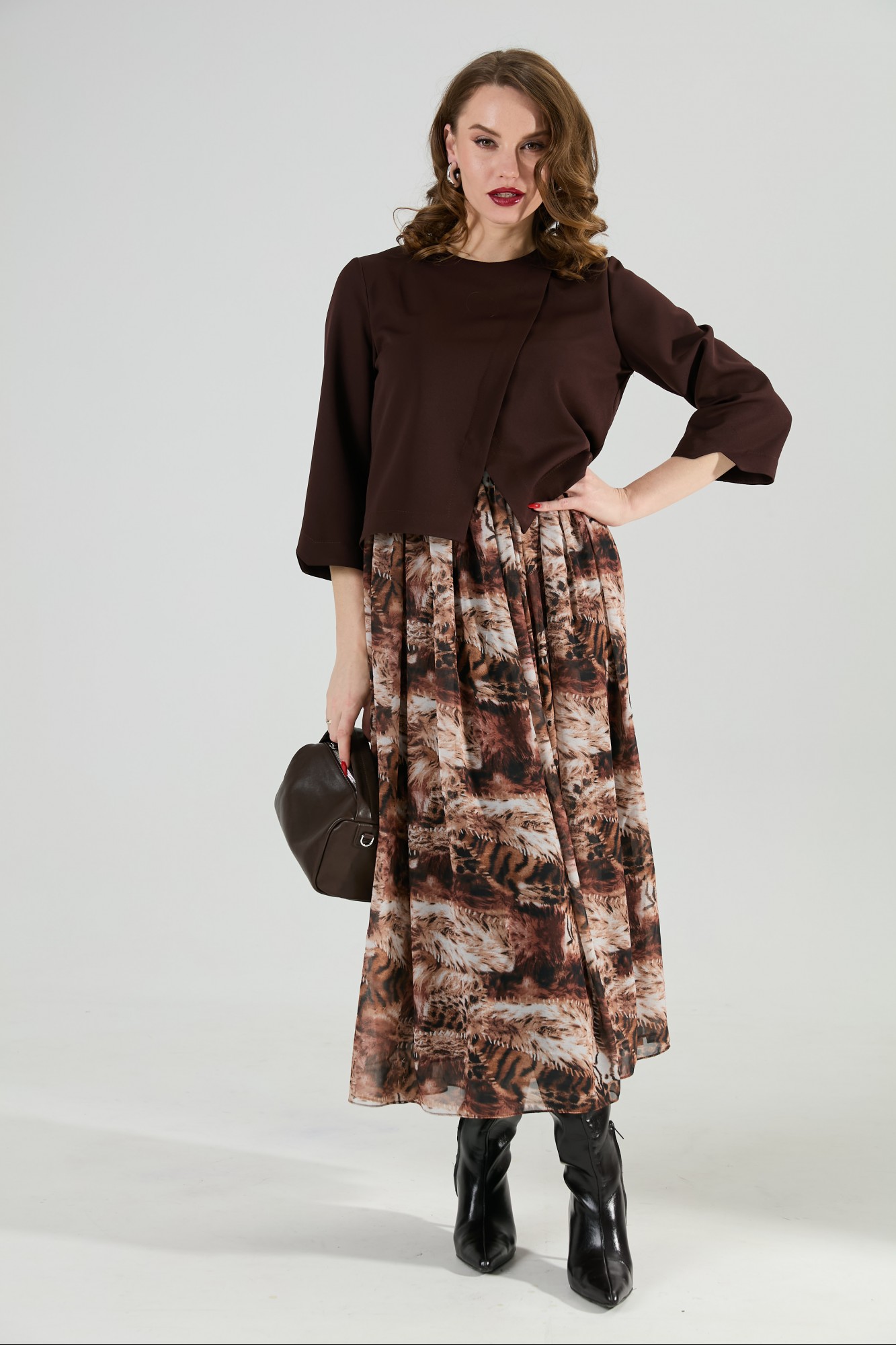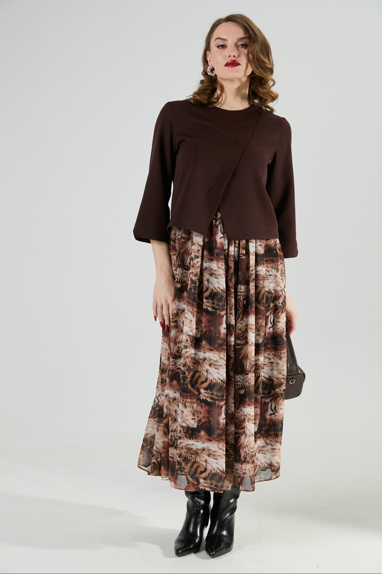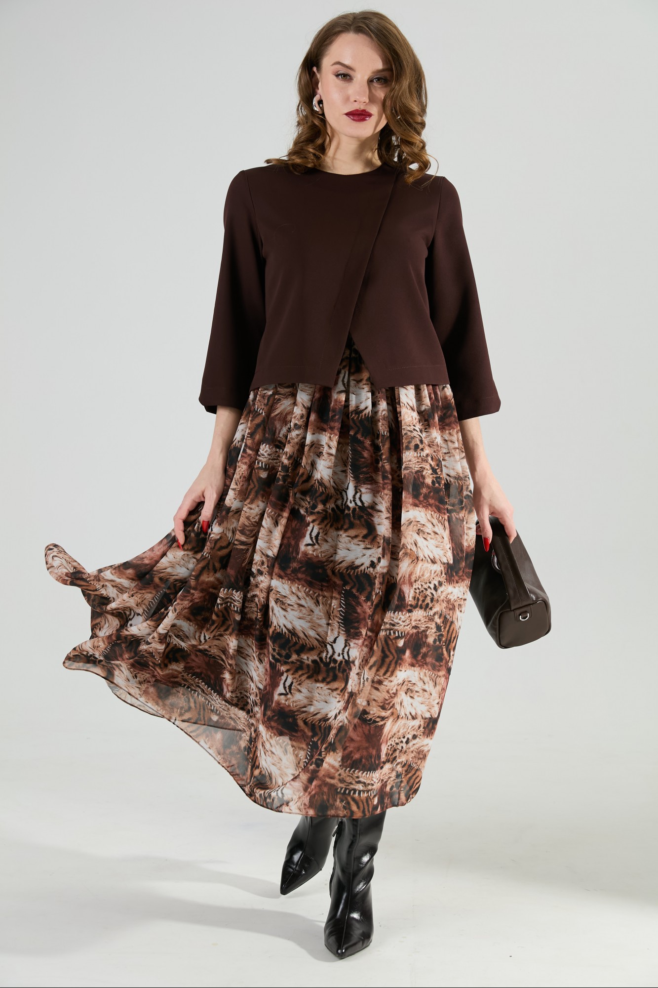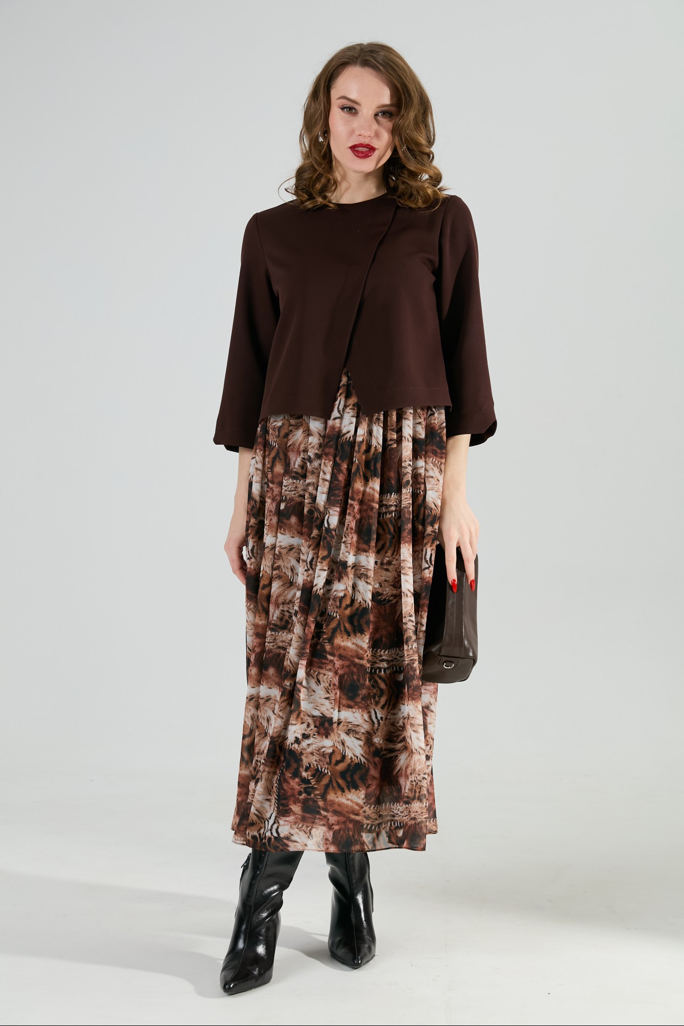 Платье NikVa н1007 -1 шоколад и тигровая абстракция