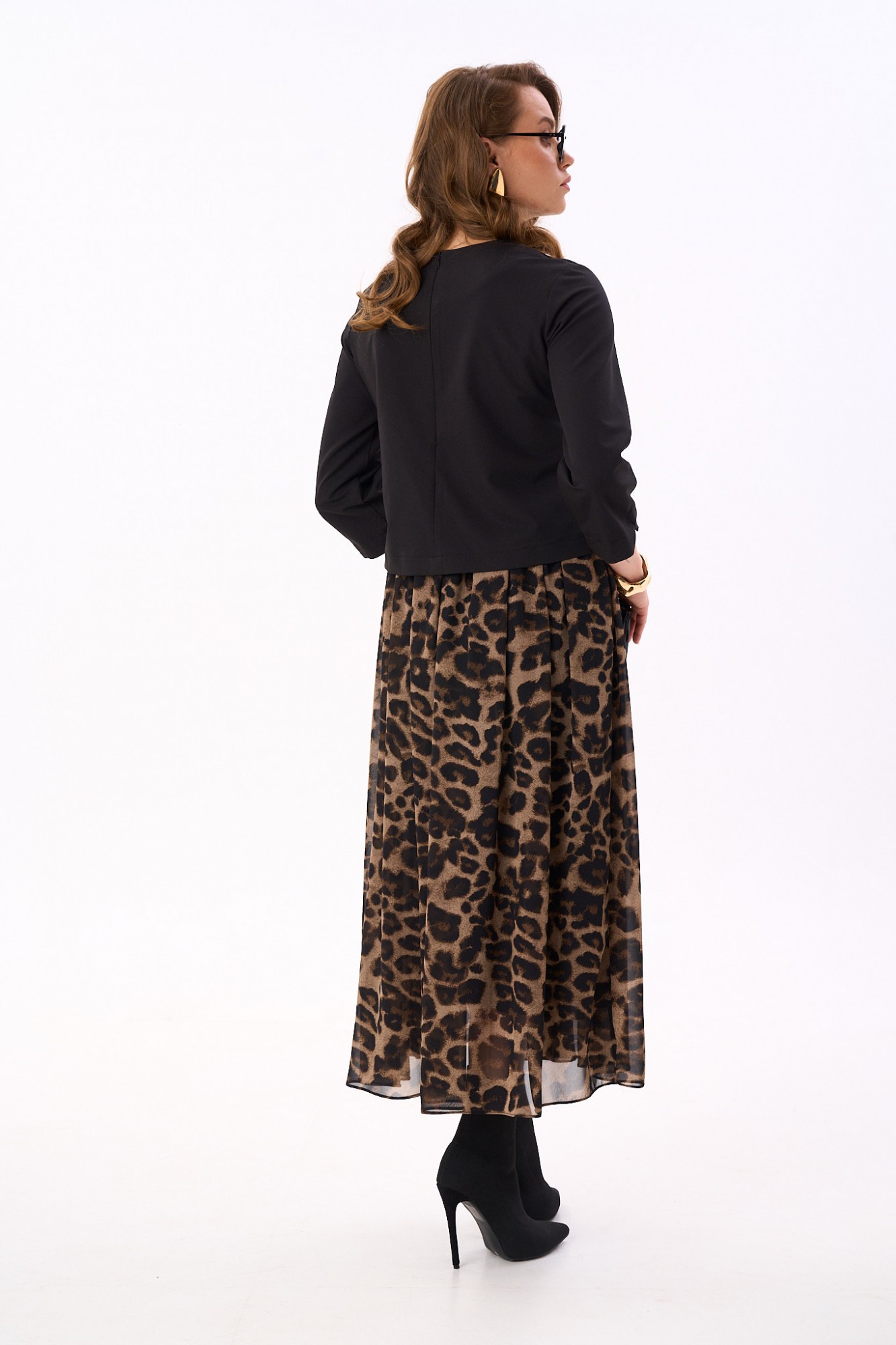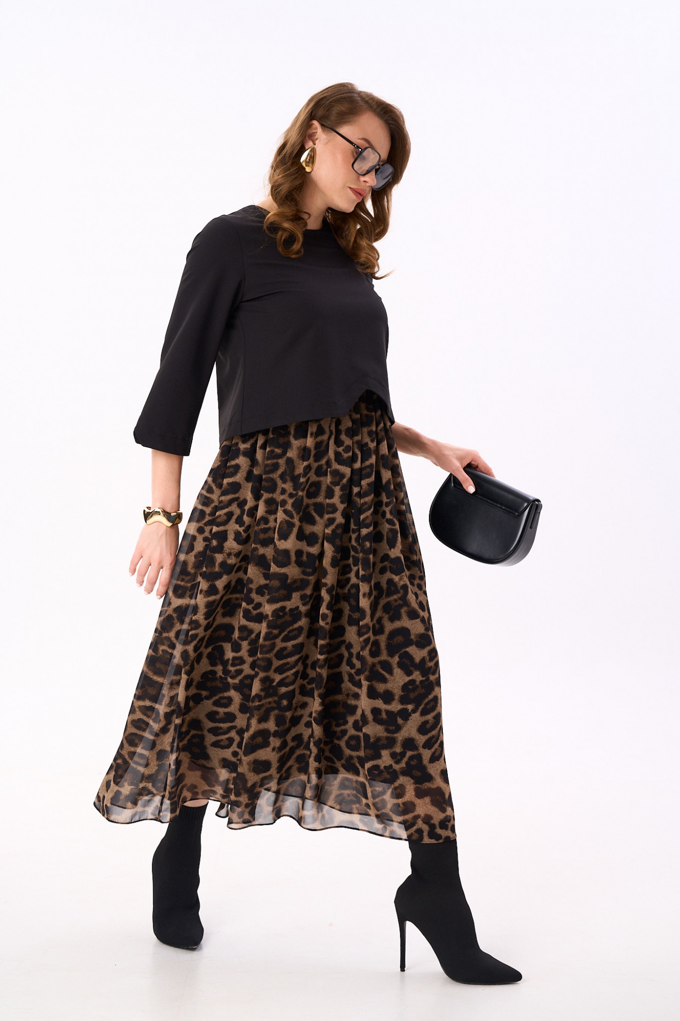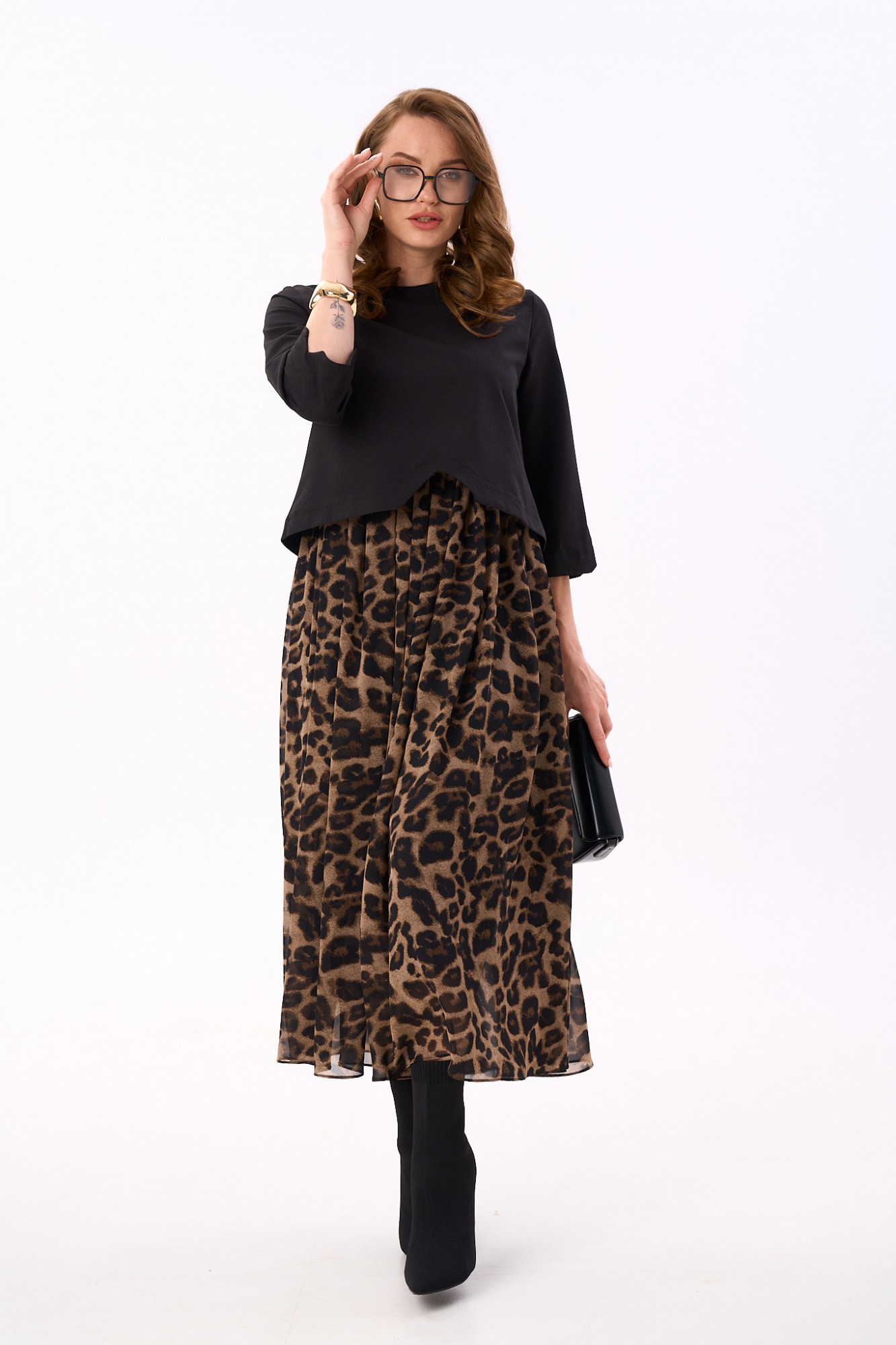 Платье NikVa н740 -16 чёрный и шоколадный леопард