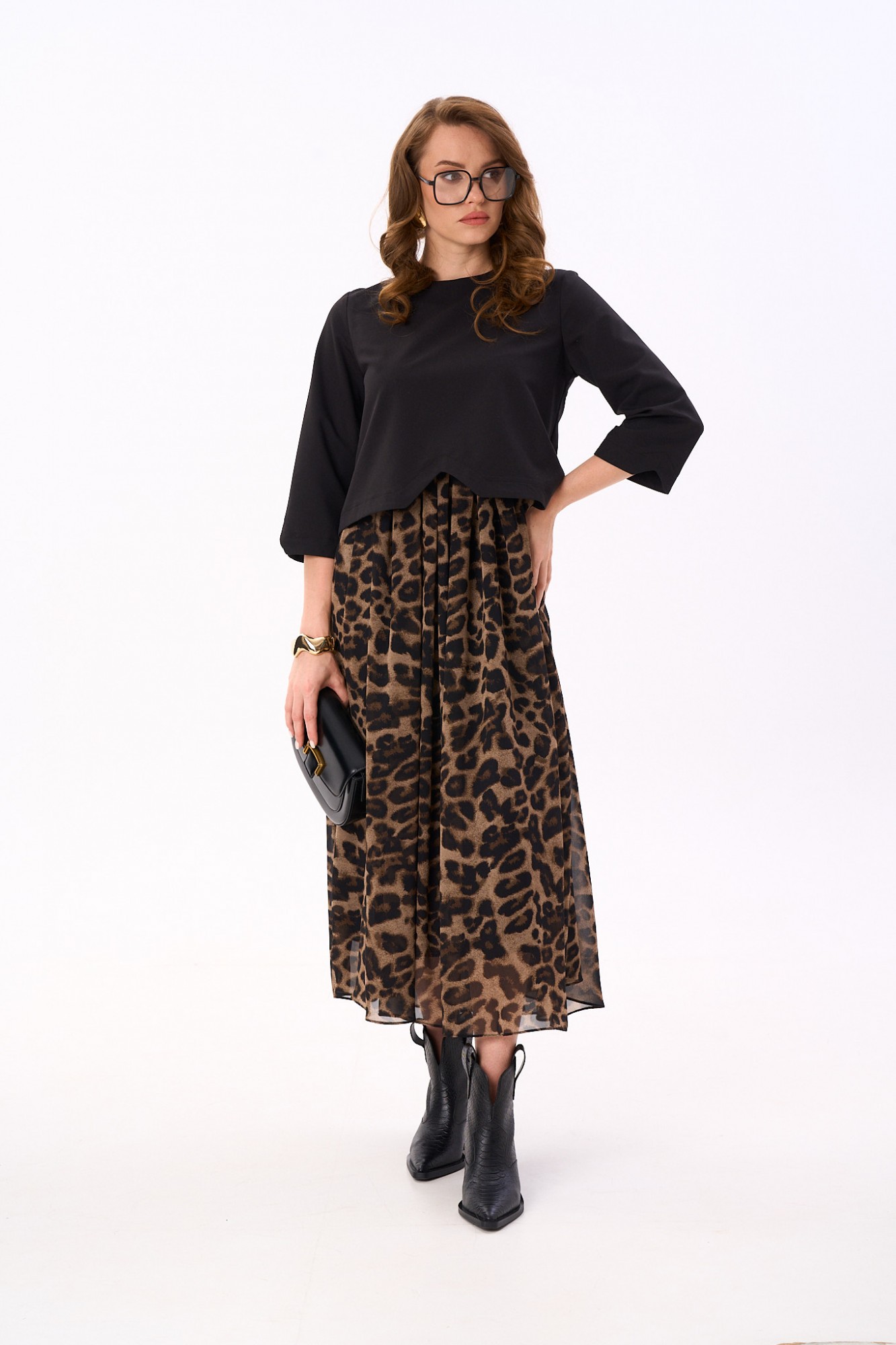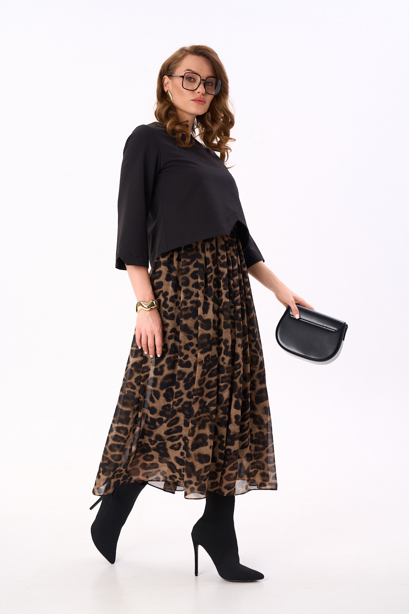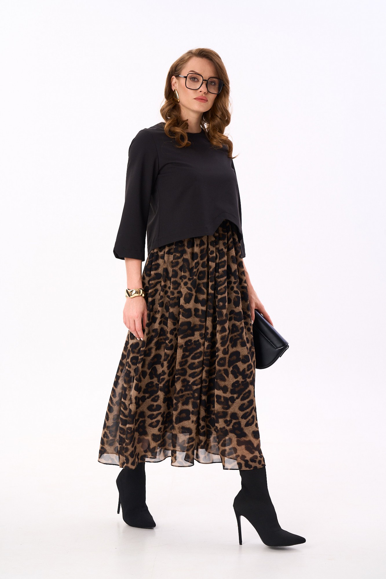 Платье NikVa н740 -16 чёрный и шоколадный леопард