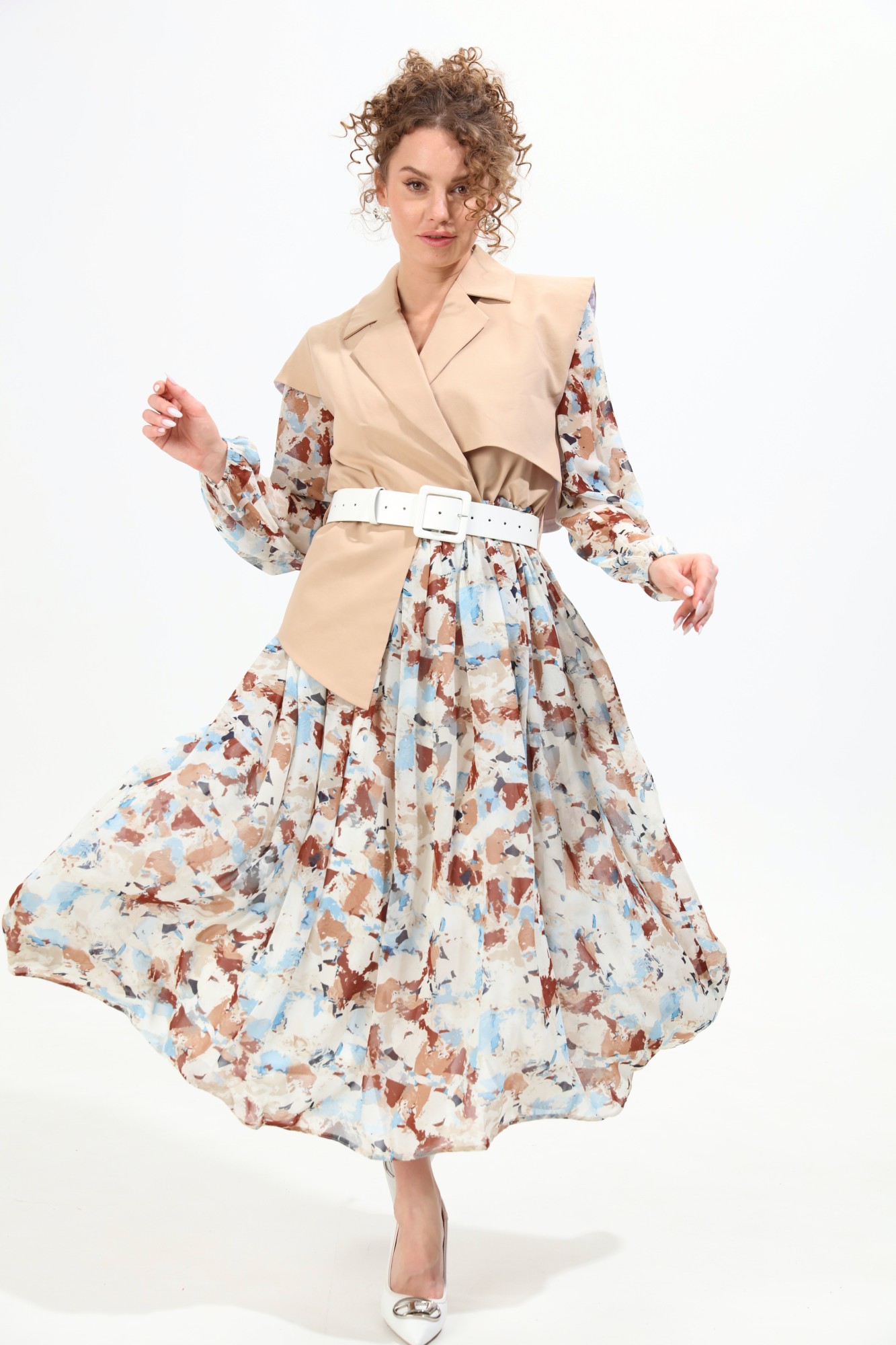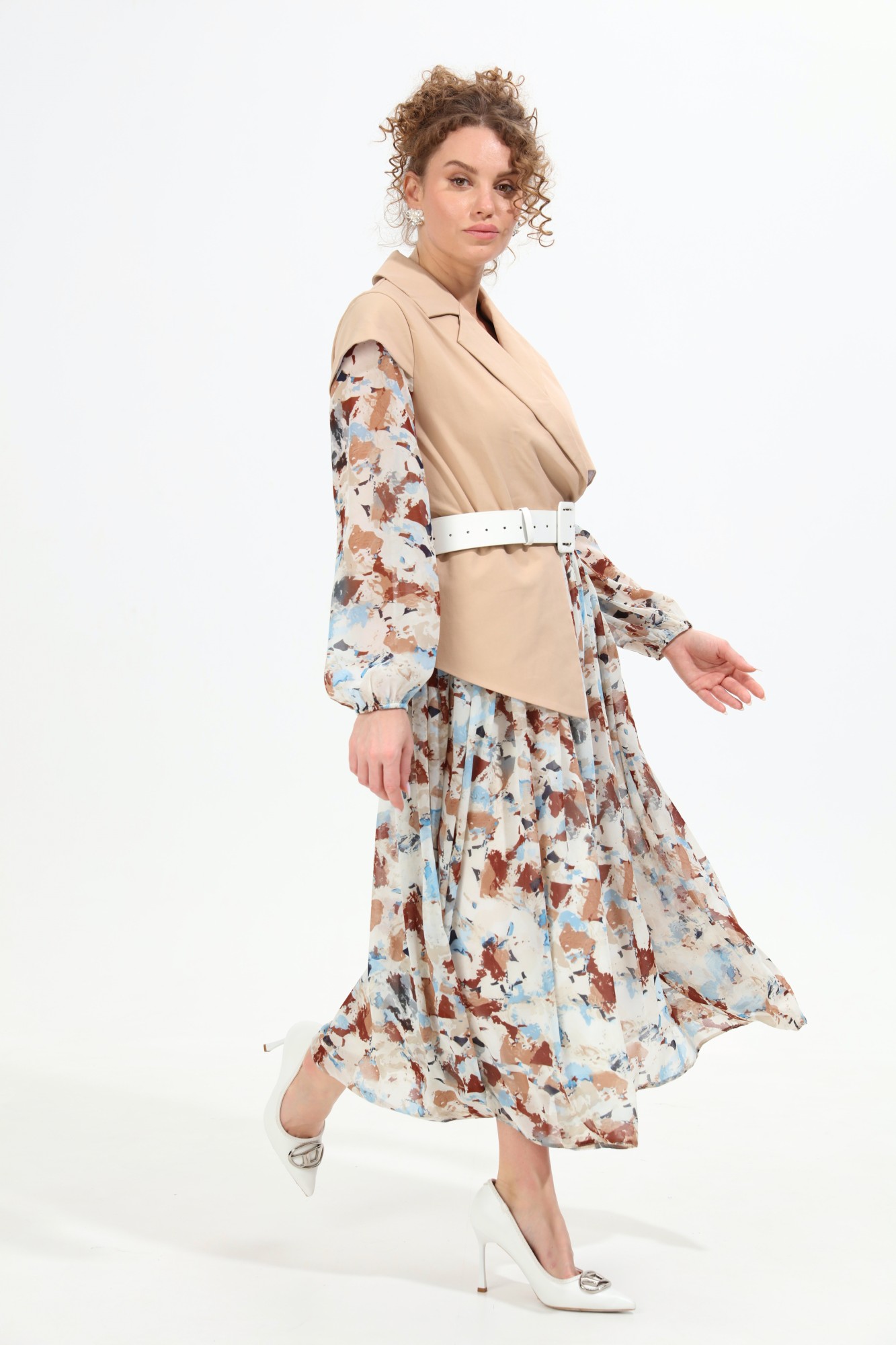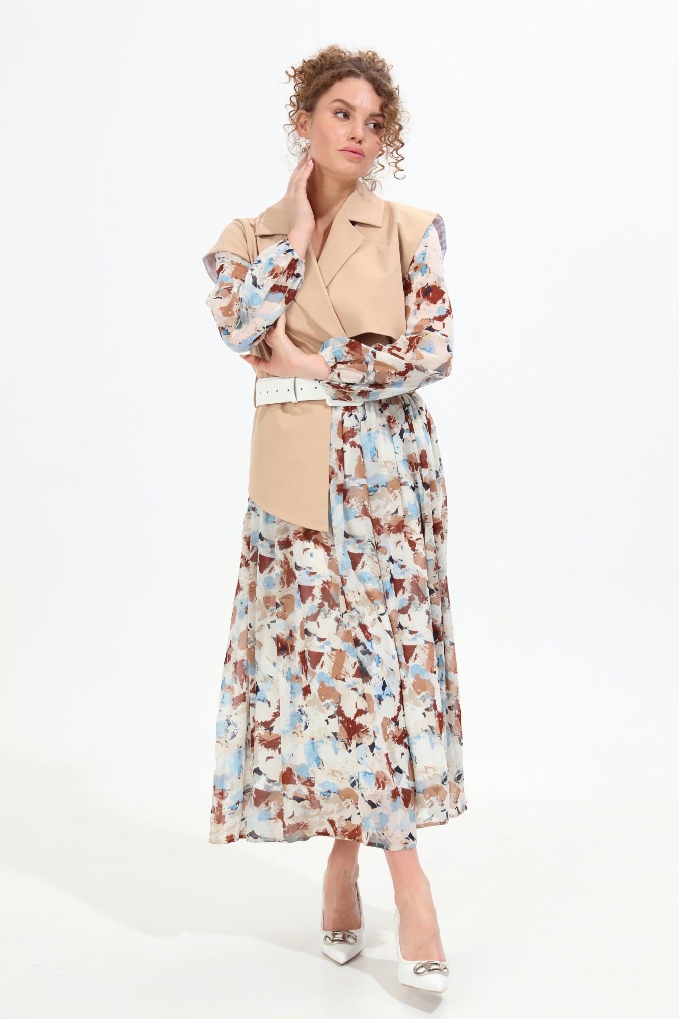 лиф - 95% хлопок, 5% эластан, деним, юбка и рукава - 100% пэ, шифон