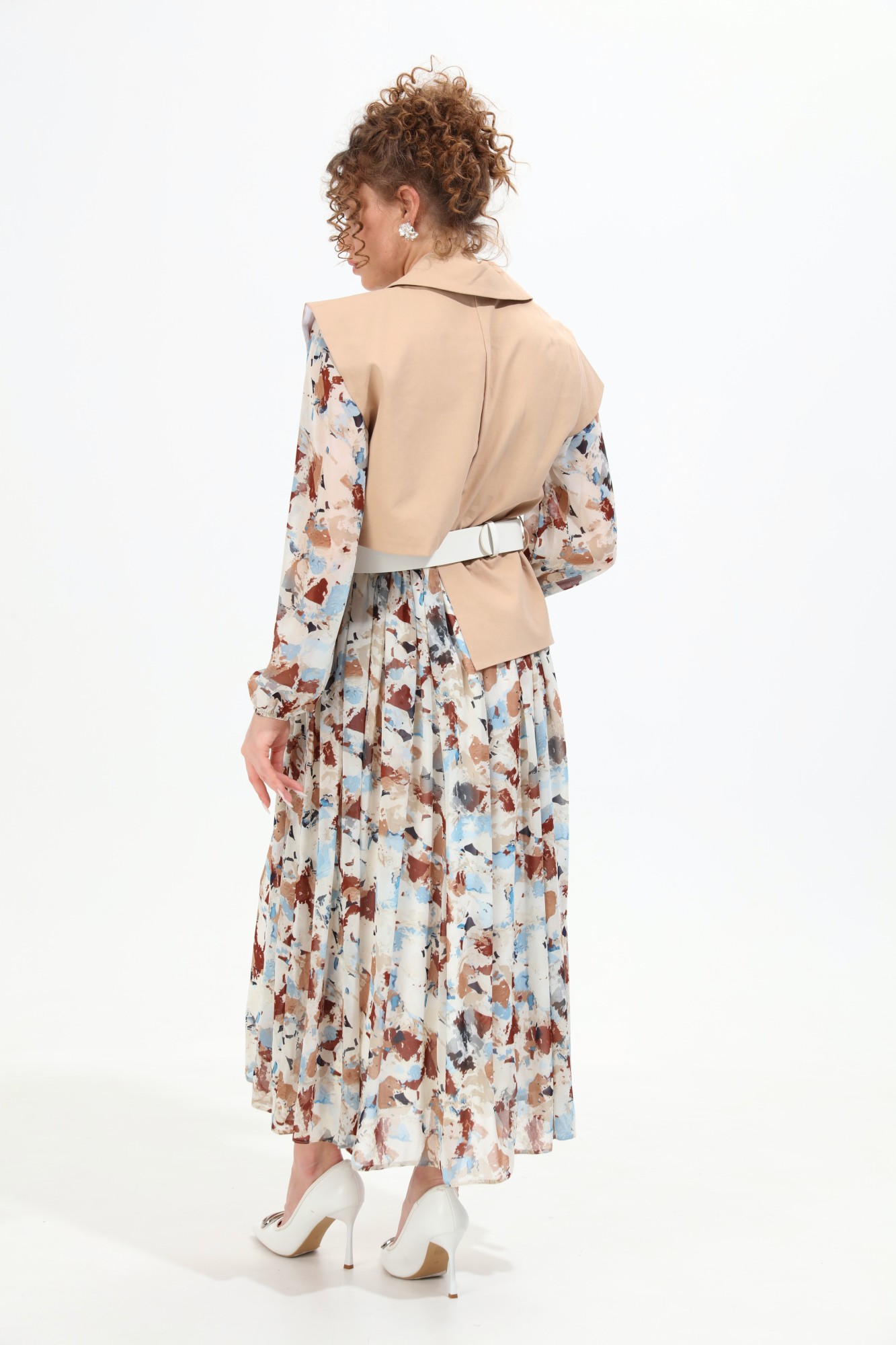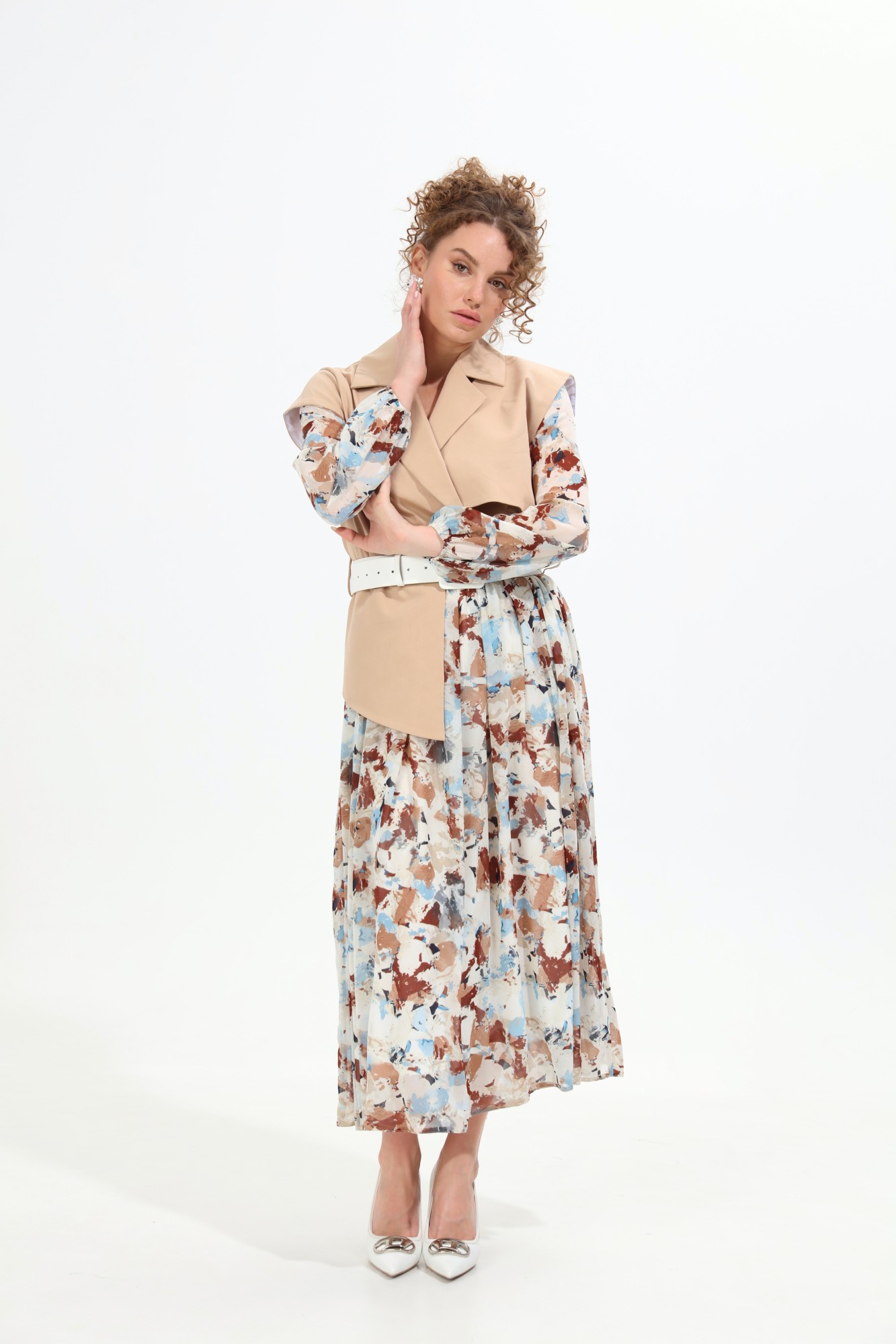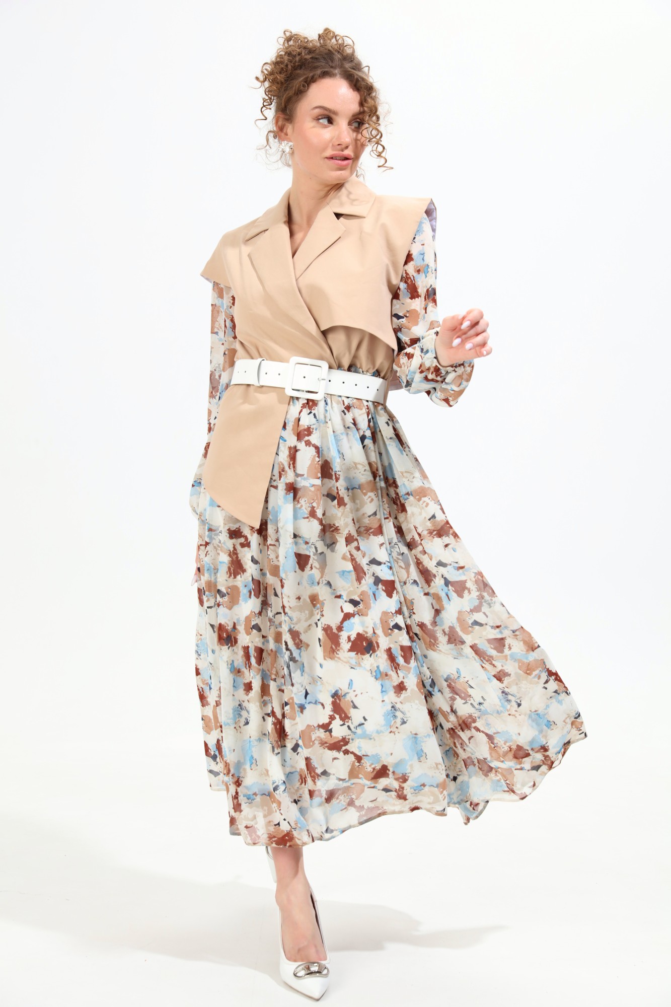 лиф - 95% хлопок, 5% эластан, деним, юбка и рукава - 100% пэ, шифон