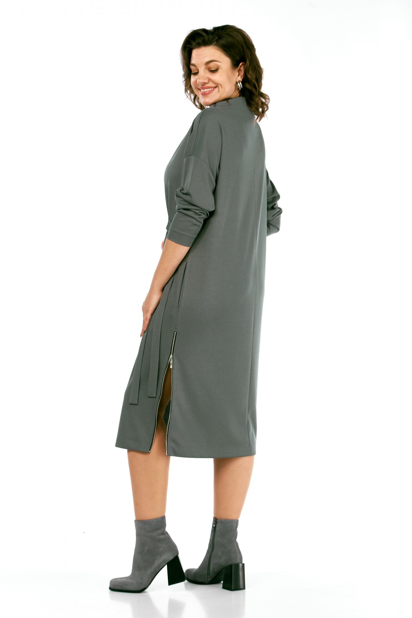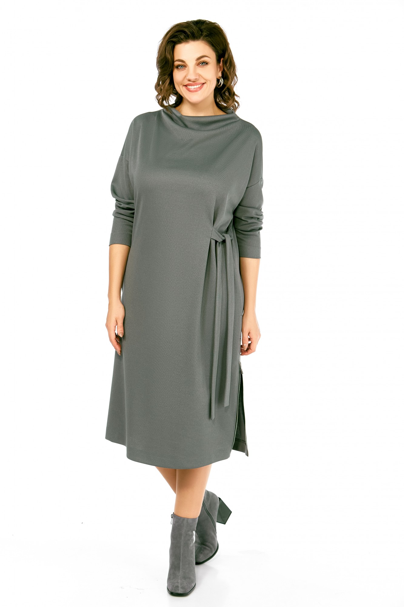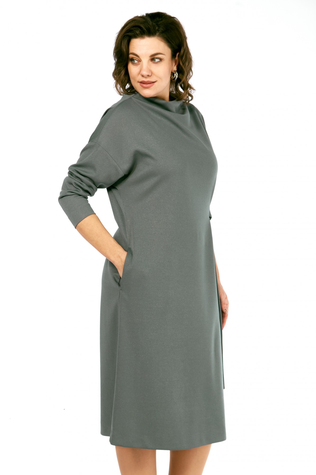 Платье Ольга Стиль С976 серо-зеленый