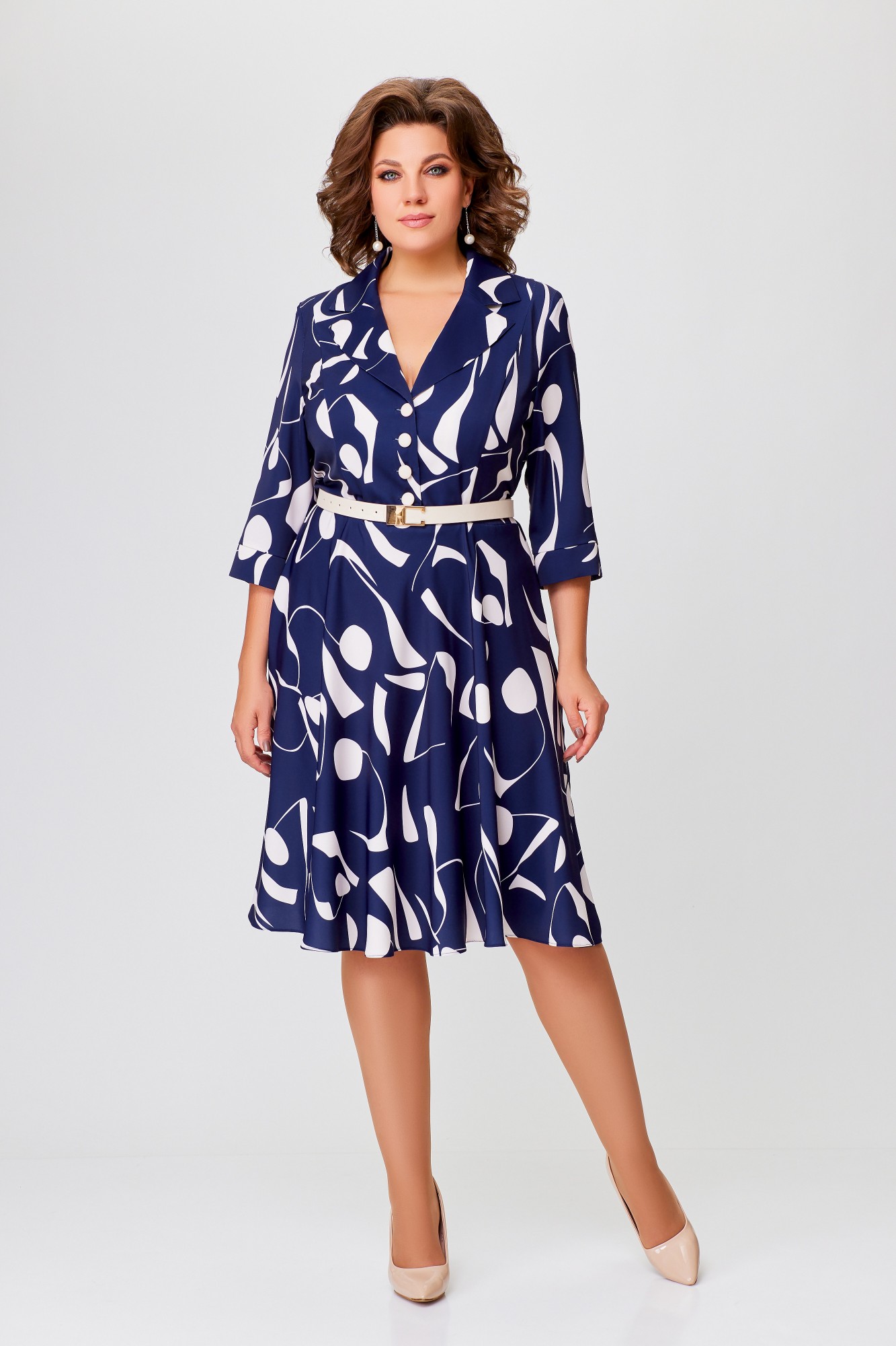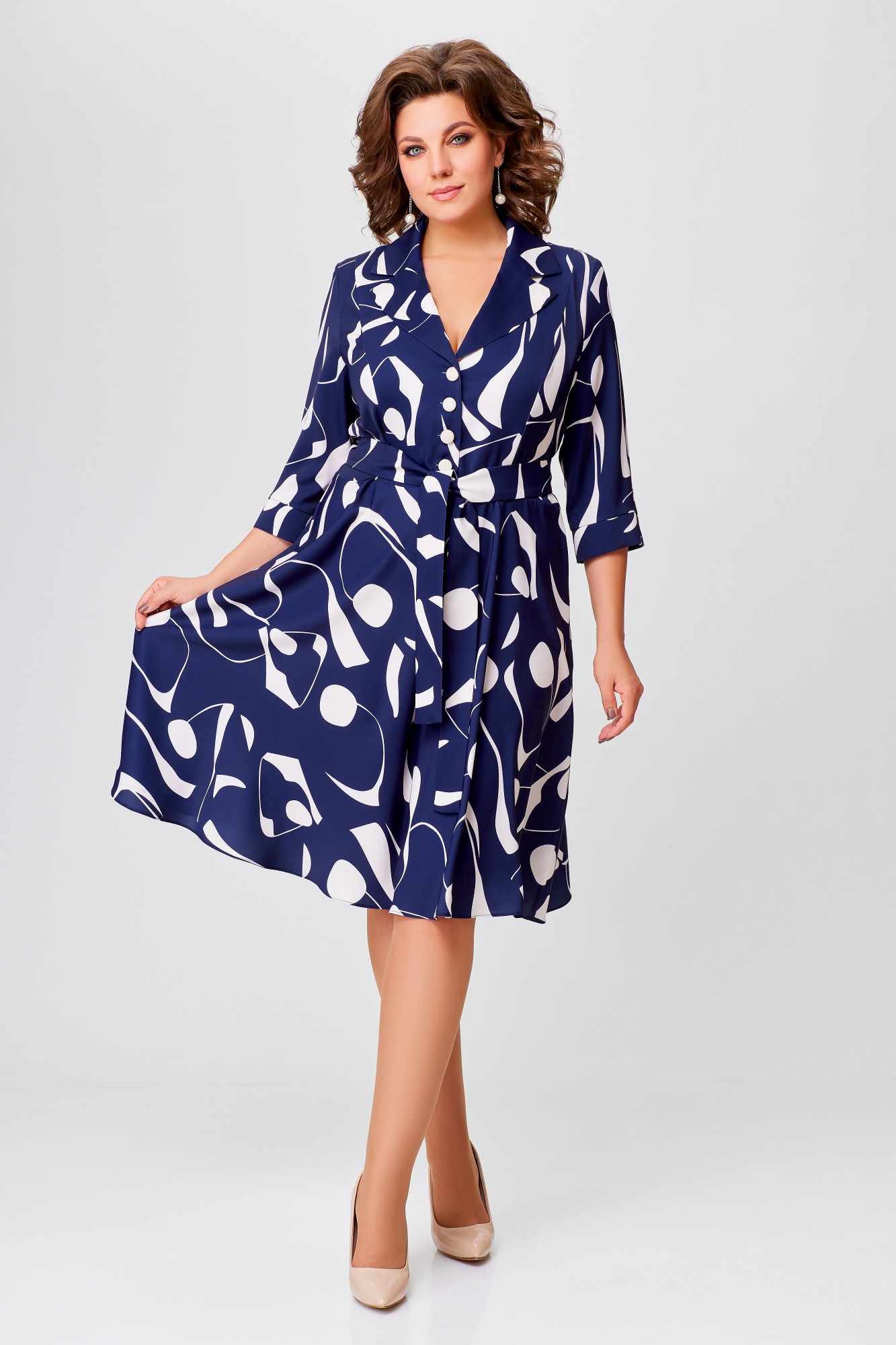 Платье Swallow 769 -1 Синий, молочный, принт