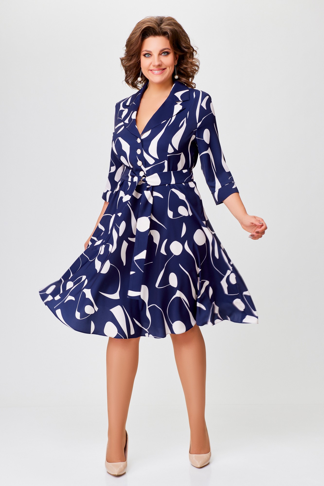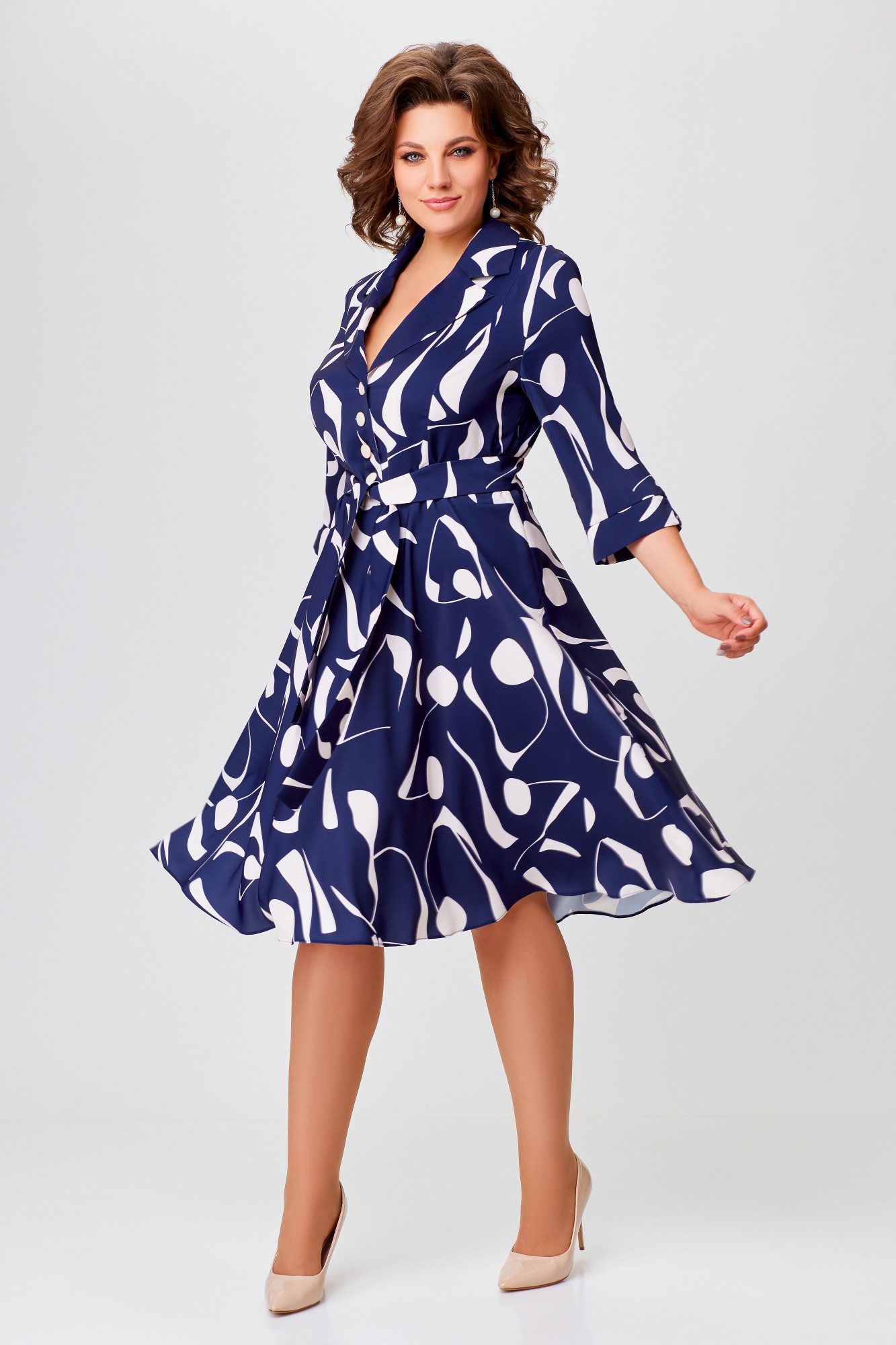 Платье Swallow 769 -1 Синий, молочный, принт