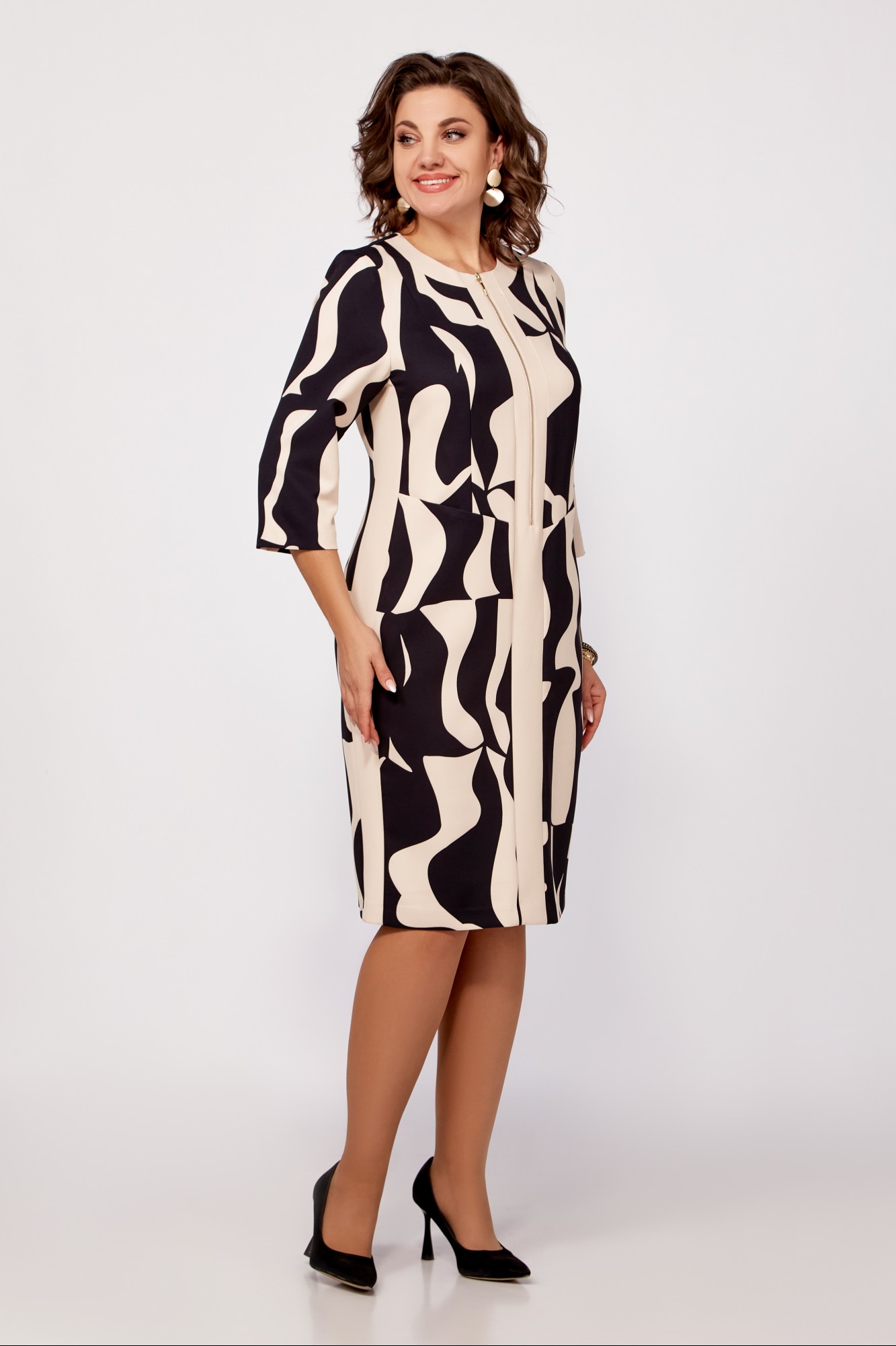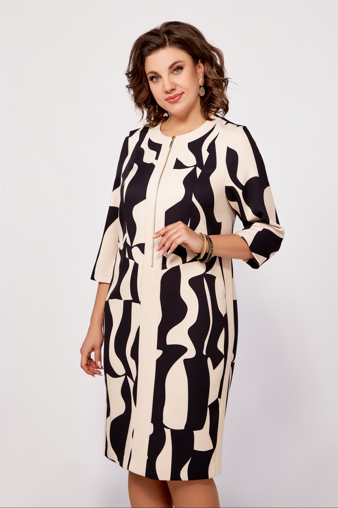 Платье Swallow 798 Бежево-чёрный принт с ID товара 444979