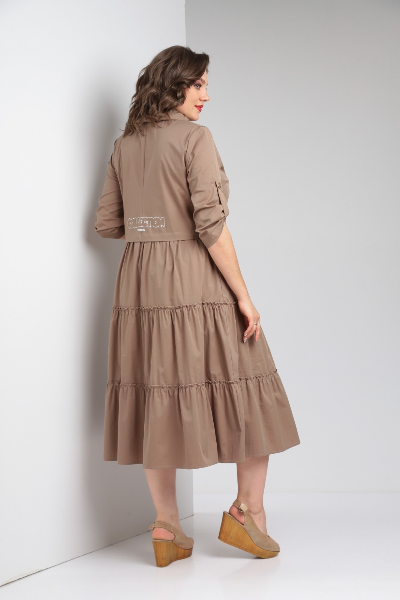 платья состоит из трех воланов их хлопковой ткани. Рукав одношовный втачной 3/4, застегивающийся на пату. Перед дополняет декоративный отлетной карман.