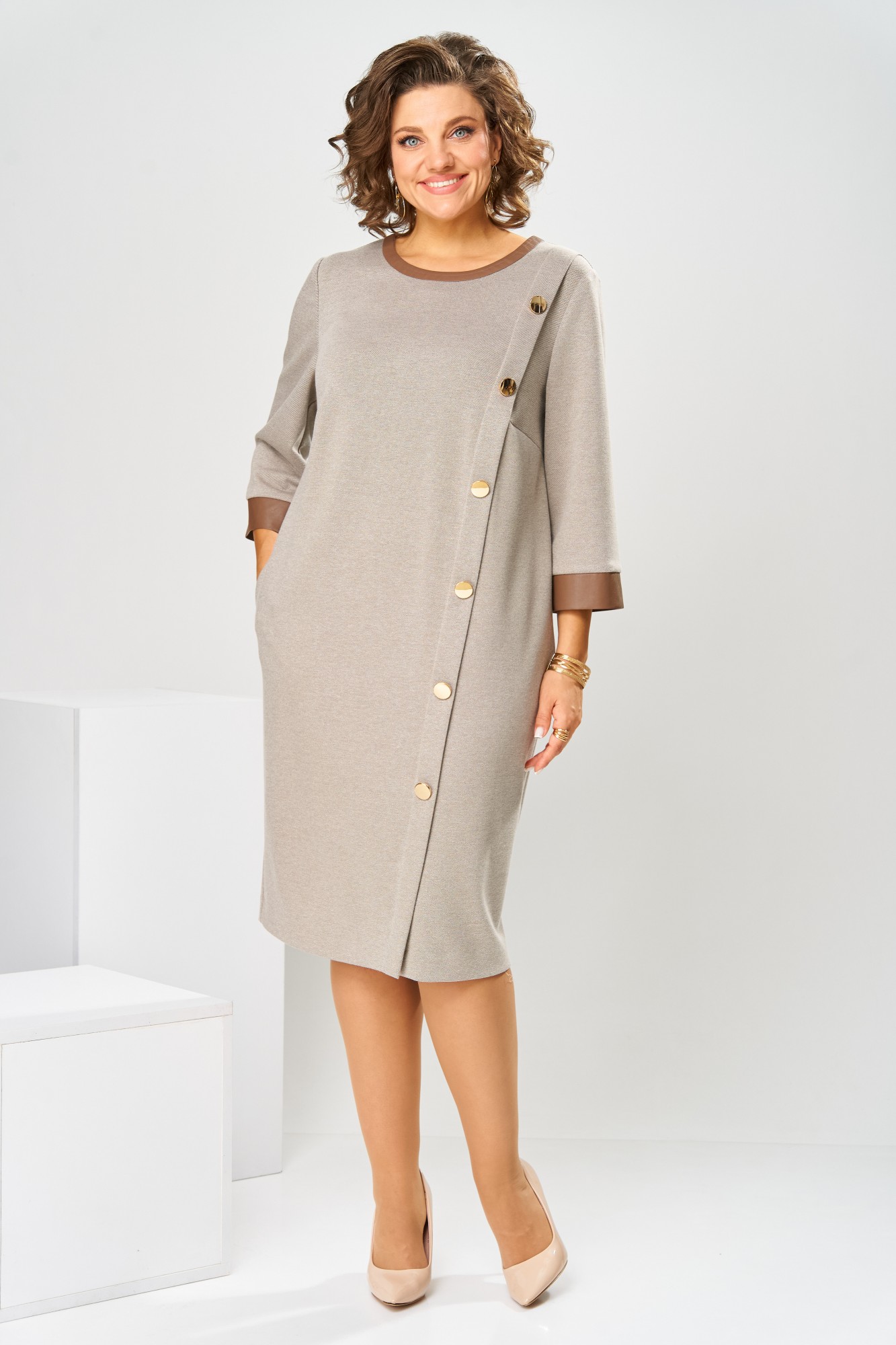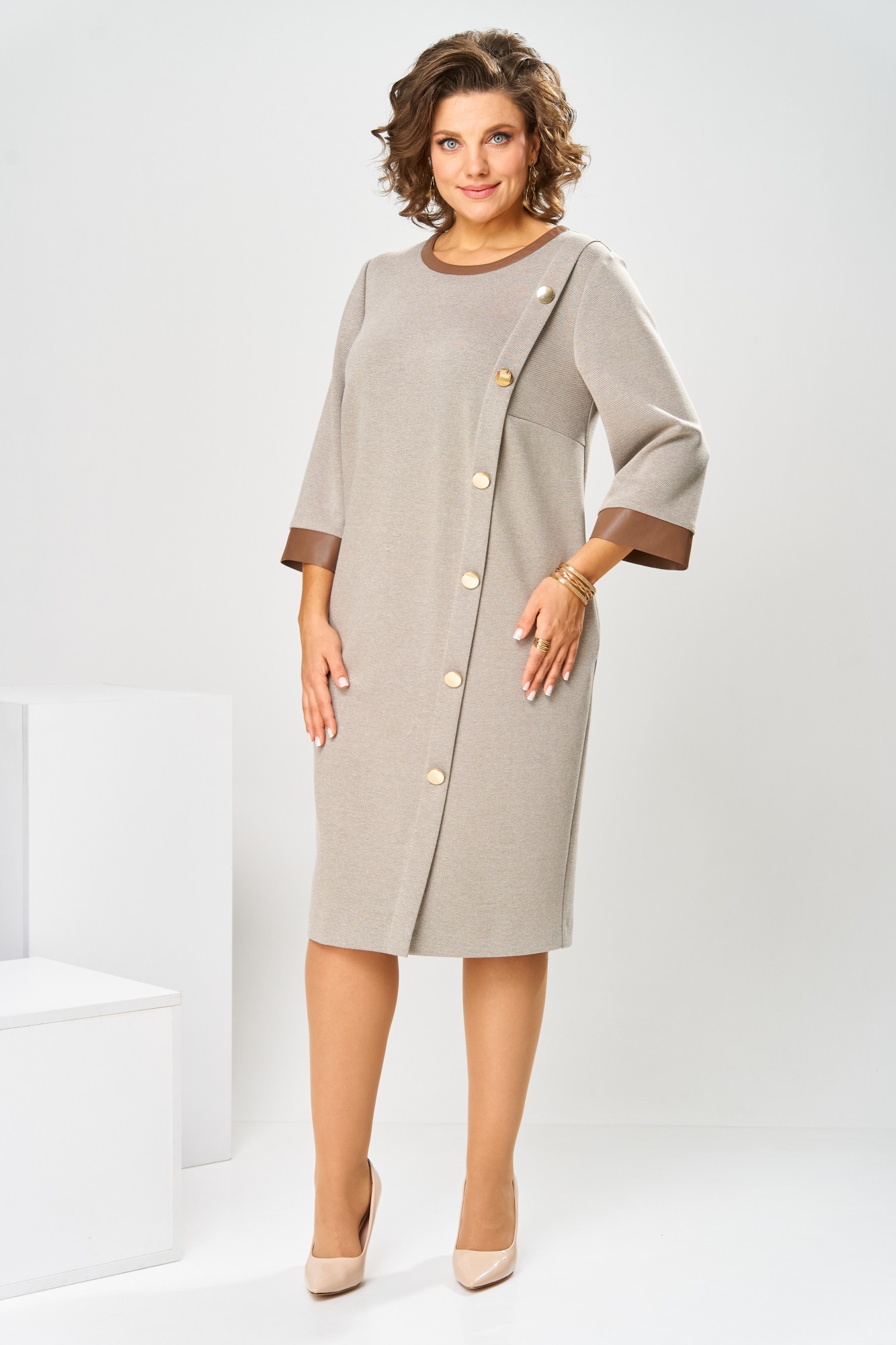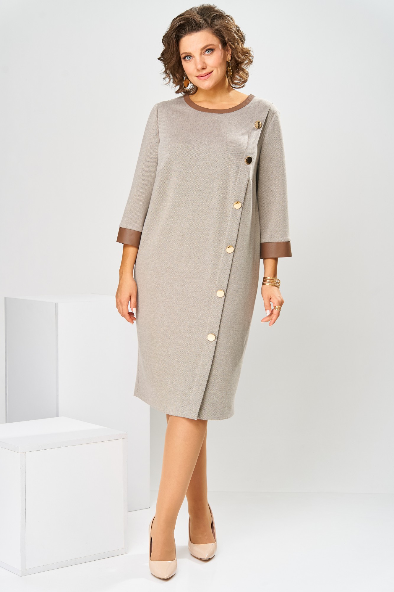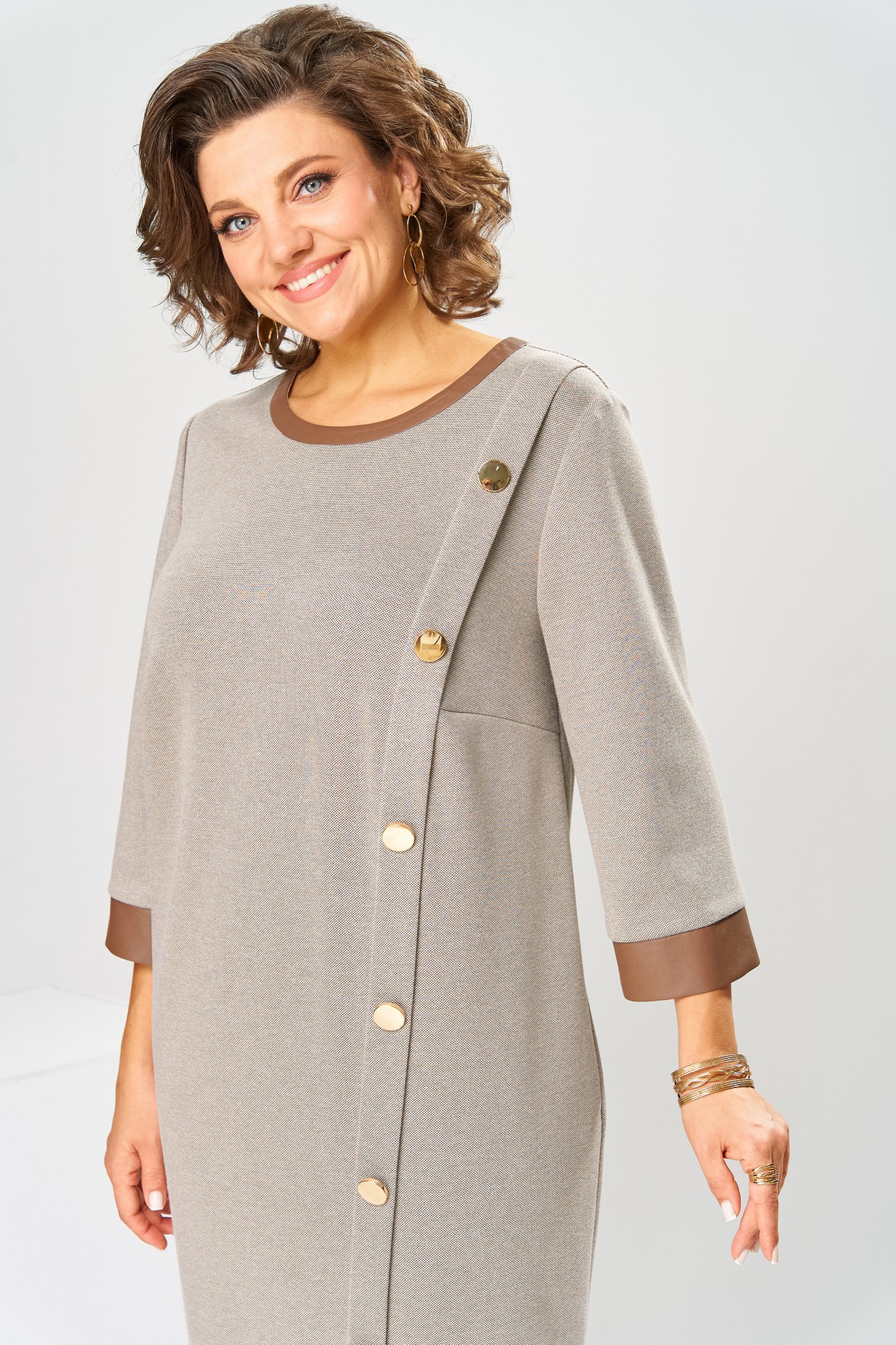 Платье предназначено для повседневной носки. Платье женское, полуприлегающего силуэта, длиной за колено. Перед с 2-мя нагрудными вытачками, с цельнокроеной вертикальной планкой шириной 3,5 см, закреплённой к переду 6-ю пришивными декоративными пуговицами; перед с втачной планкой из отделочной ткани. Спинка с 2-мя таллиевыми вытачками, с втачной металлической молнией, с втачной планкой из отделочной ткани по горловине. Платье с карманами в боковых швах. Рукав втачной, одношовный с притачной манжетой из отделочной ткани, рукав длиной 3/4. Платье с плечевыми накладками.