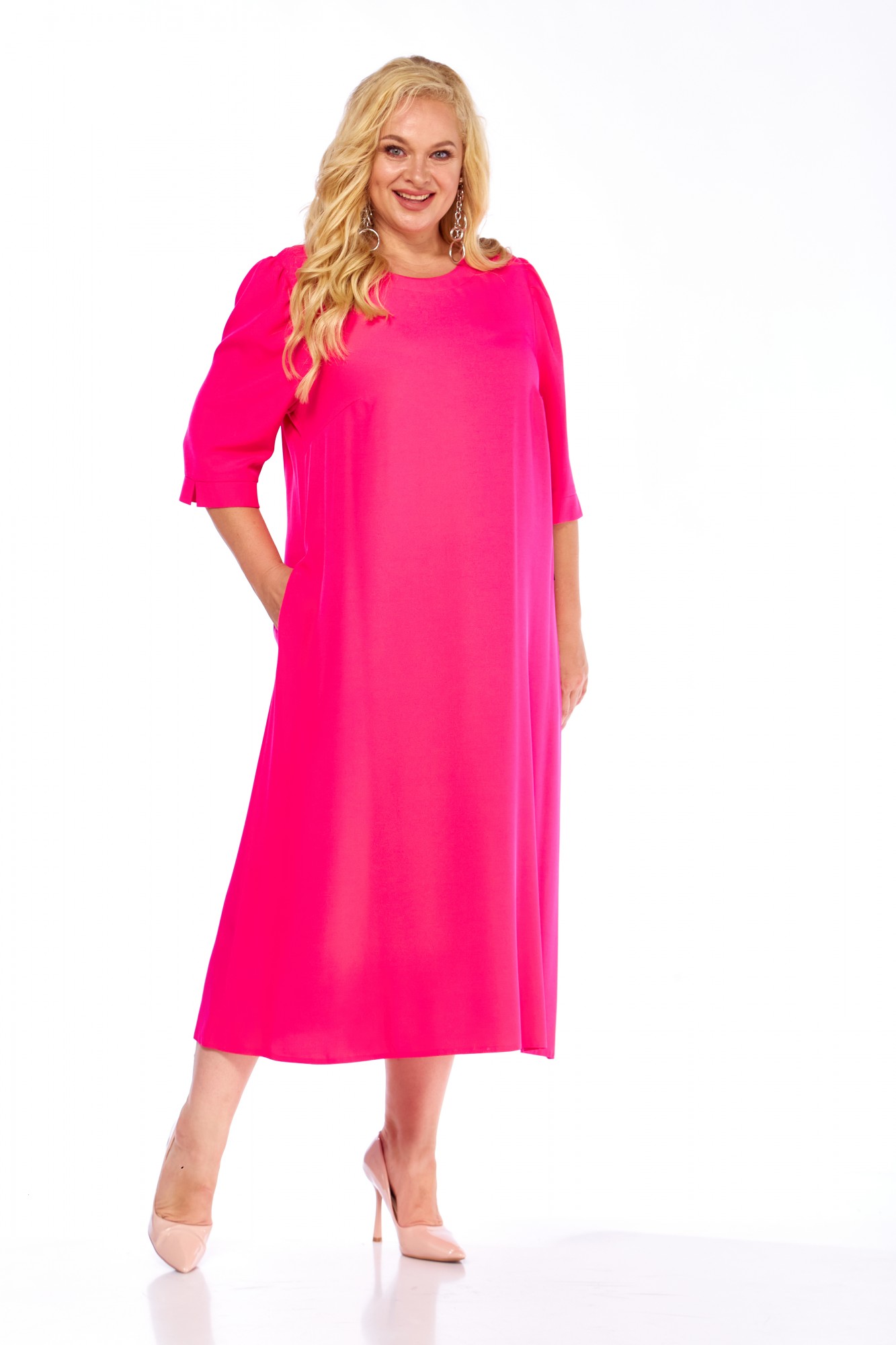 Силуэт полуприлегающий, расширенный к низу. Рукава втачные, одношовные, со сборкой по окату. Низ рукавов с манжетами. Горловина закруглённая, на обтачке, которая закреплена отделочной строчкой. Перед с нагрудными вытачками. Спинка со средним швом. В боковых швах платья на уровне линии бёдер выполнены потайные карманы.