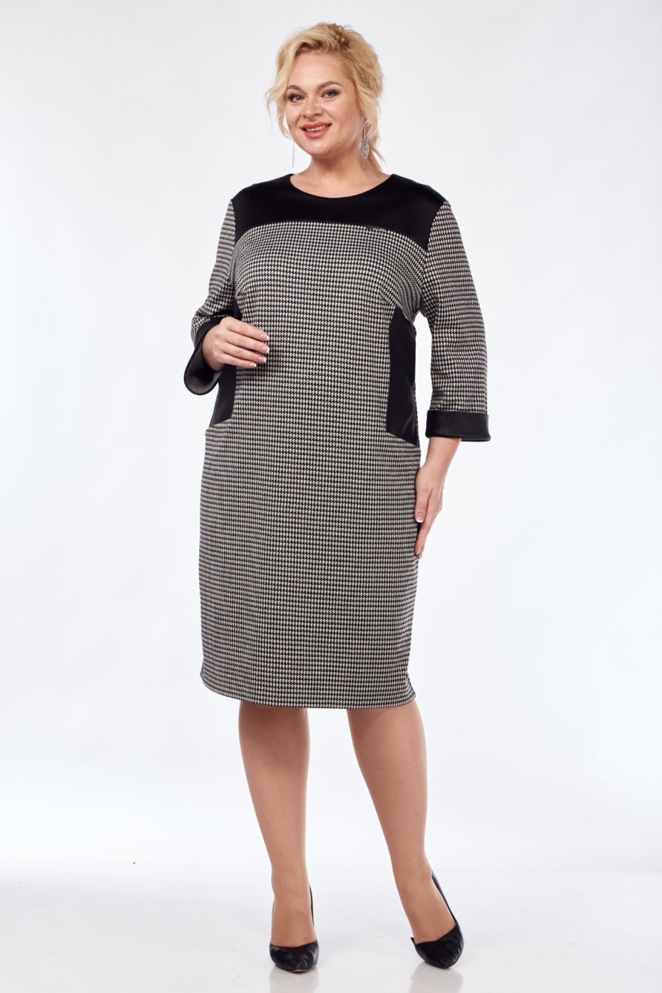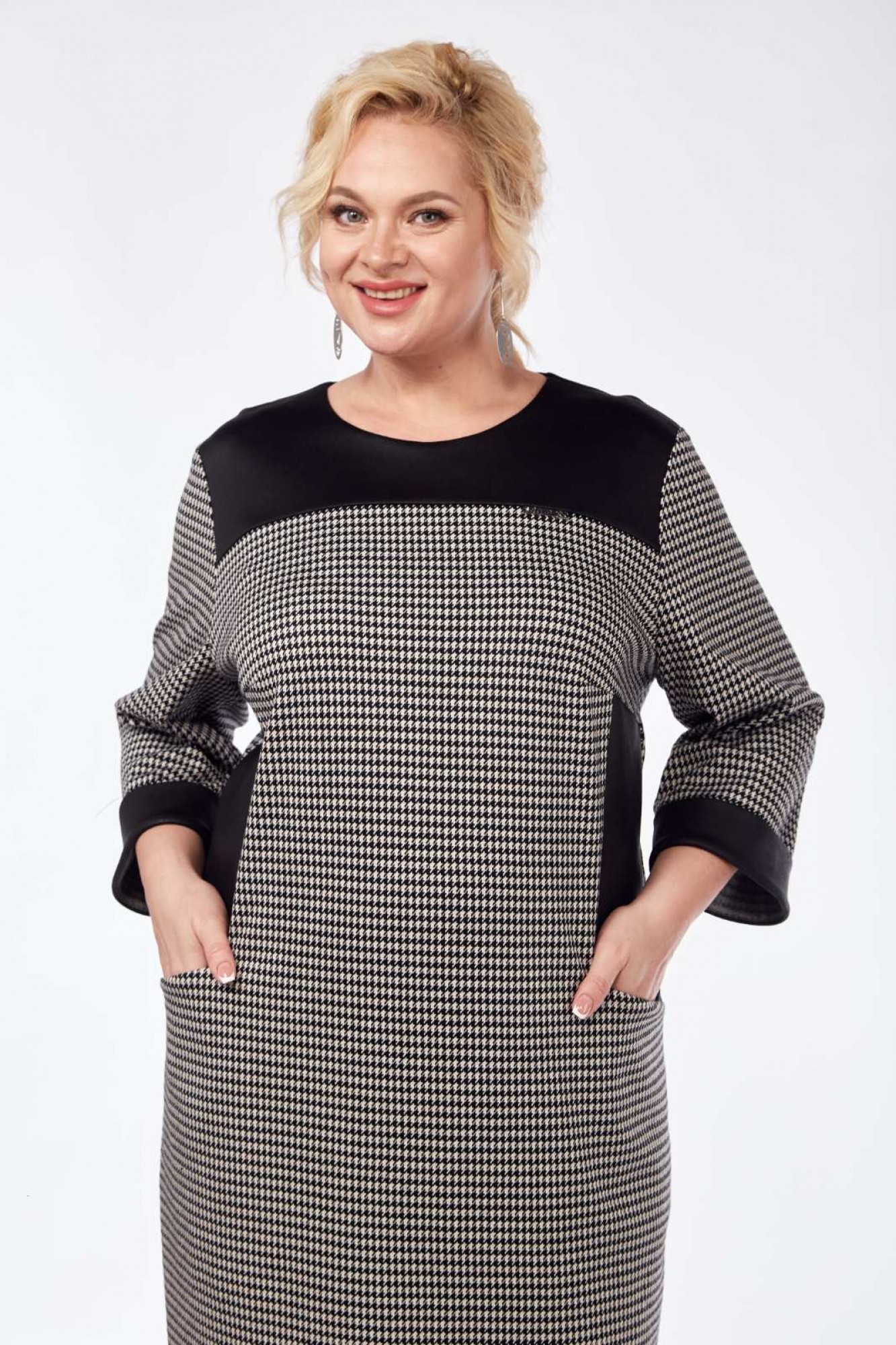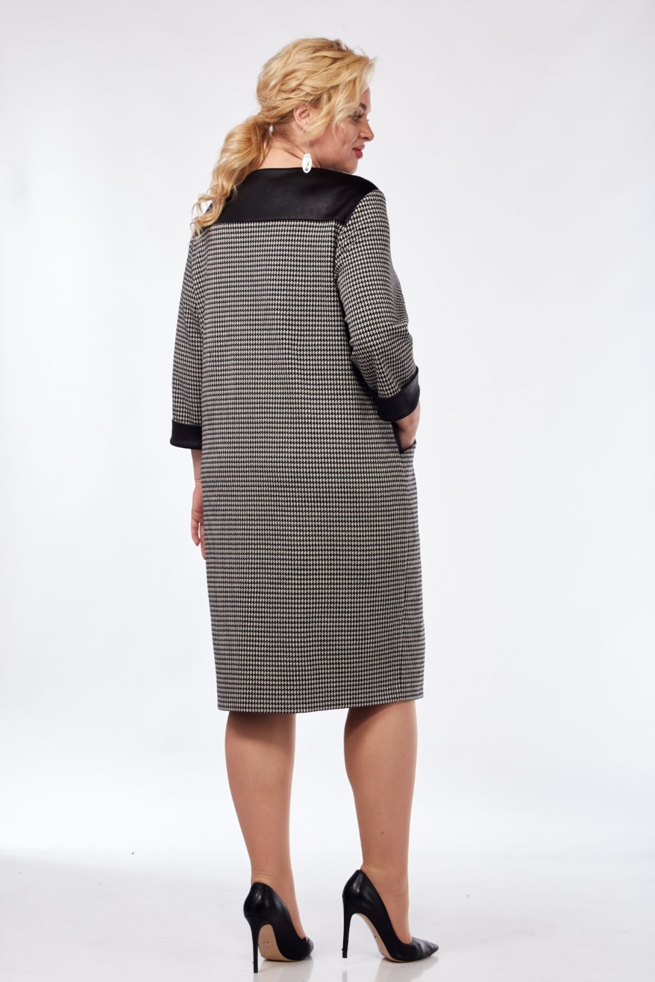 Силуэт полуприлегающий. Рукав втачной, одношовный, внизу с отворотами из отделочной ткани. Перед и спинка с отрезными кокетками из отделочной ткани. Перед с нагрудными вытачками и рельефами от вытачки до бокового шва. Внизу рельефа, на уровне бёдер выполнены потайные карманы со входом сверху.