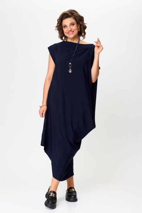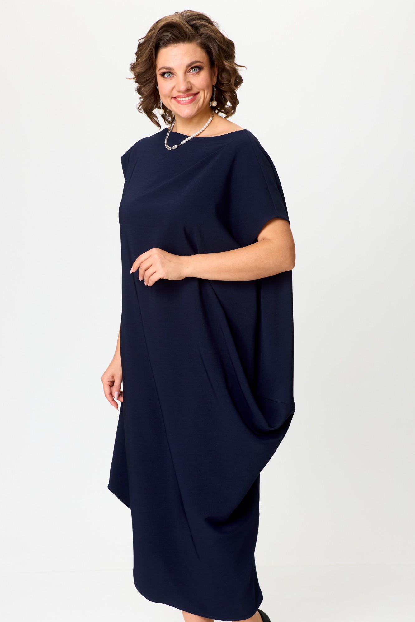 Стильное платье необычного кроя. Платье свободного кроя, рукав спущенный, по горловине складка-защип, вырез смещен на бок. По линии талии складка-защип. Платье очень стройнит, уменьшает визуально объём. Станет вашим любимым изделием как на праздник так и в обычной жизни.
