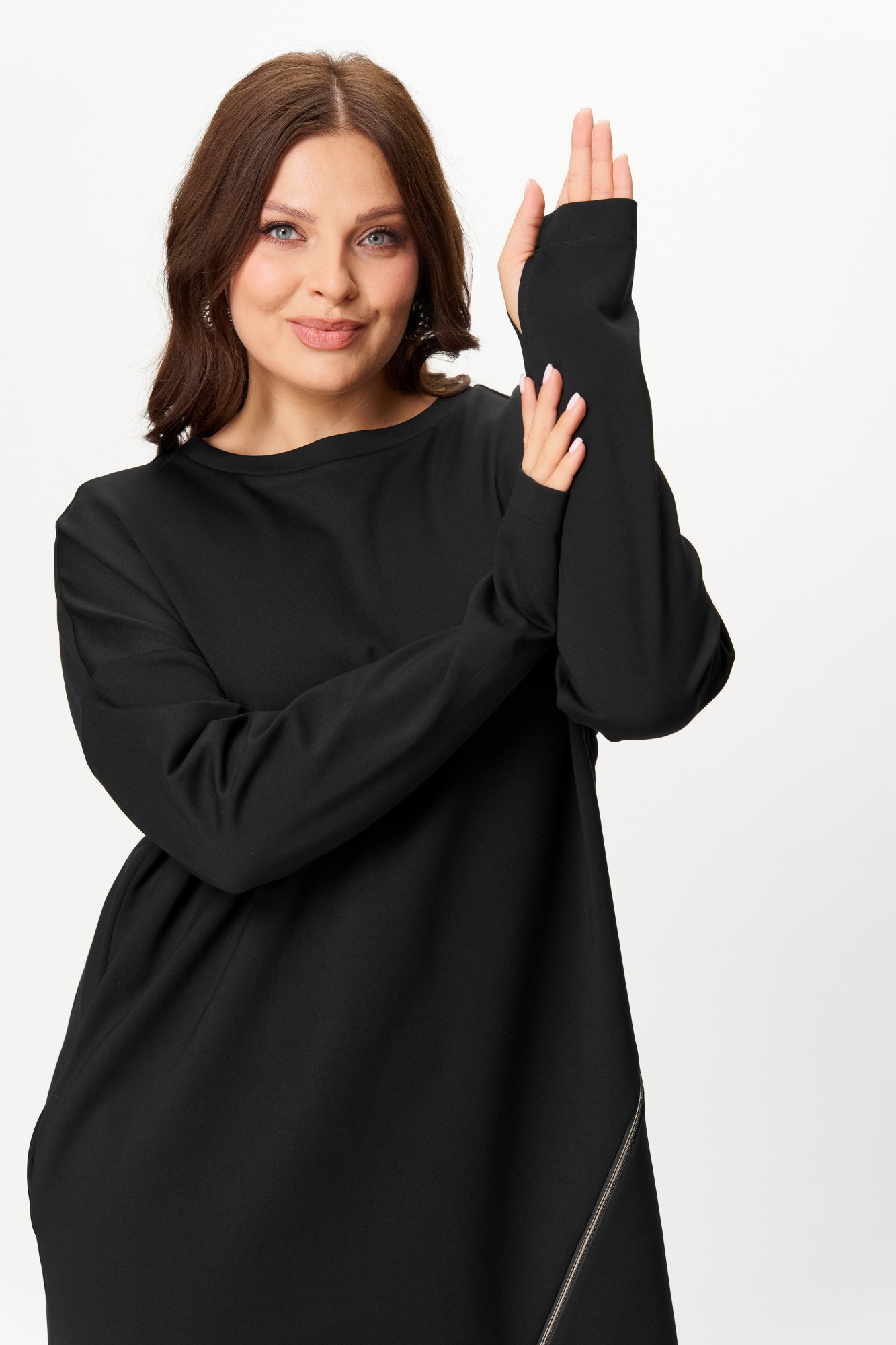 Платье из трикотажного полотна "Академик". Свободное и комфортное. По переду декоративно - функциональная молния. Удлиненный рукав с подрезом для пальчика.