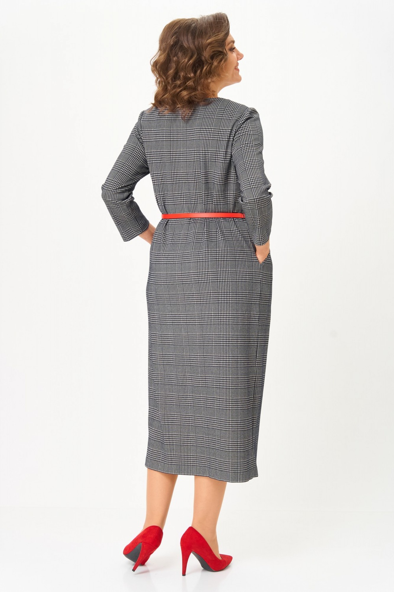 Платье женское полуприлегающего силуэта с втачным рукавом. Перед платья с горизонтальным эластичным швом по талии. Верхняя часть с вытачками по линии груди, нижняя часть со складками в области талии и карманами что обеспечивает прекрасную посадку и подчеркивает фигуру. Рукав длиной 7/8. Высокие разрезы по бокам и переду платья добавляют удобства. В комплекте съемный ремень. Фурнитура может меняться от наличия.