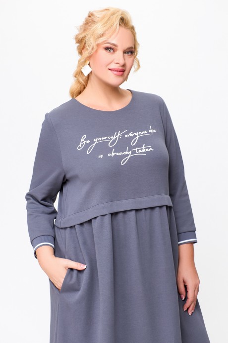 Платье женское полуприлегающего силуэта из голландского хлопкового трикотажного полотна. Платье отрезное по линии талии, с декоративным напуском на юбку платья.
