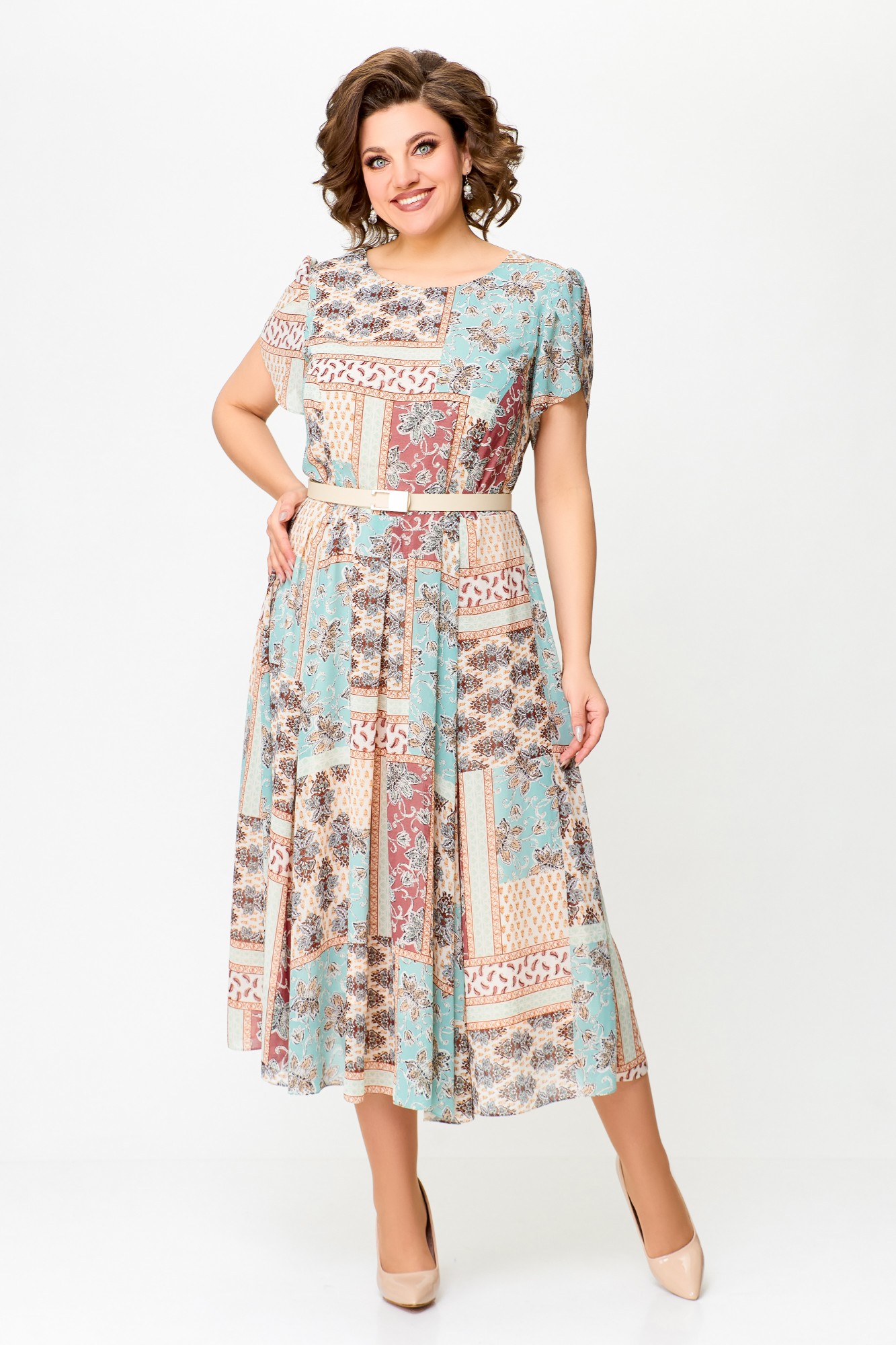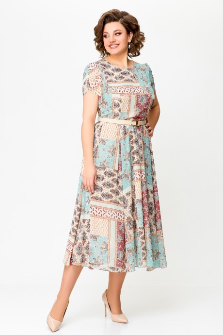 Платье Swallow 730 Мятно-бежевый, мультиколор