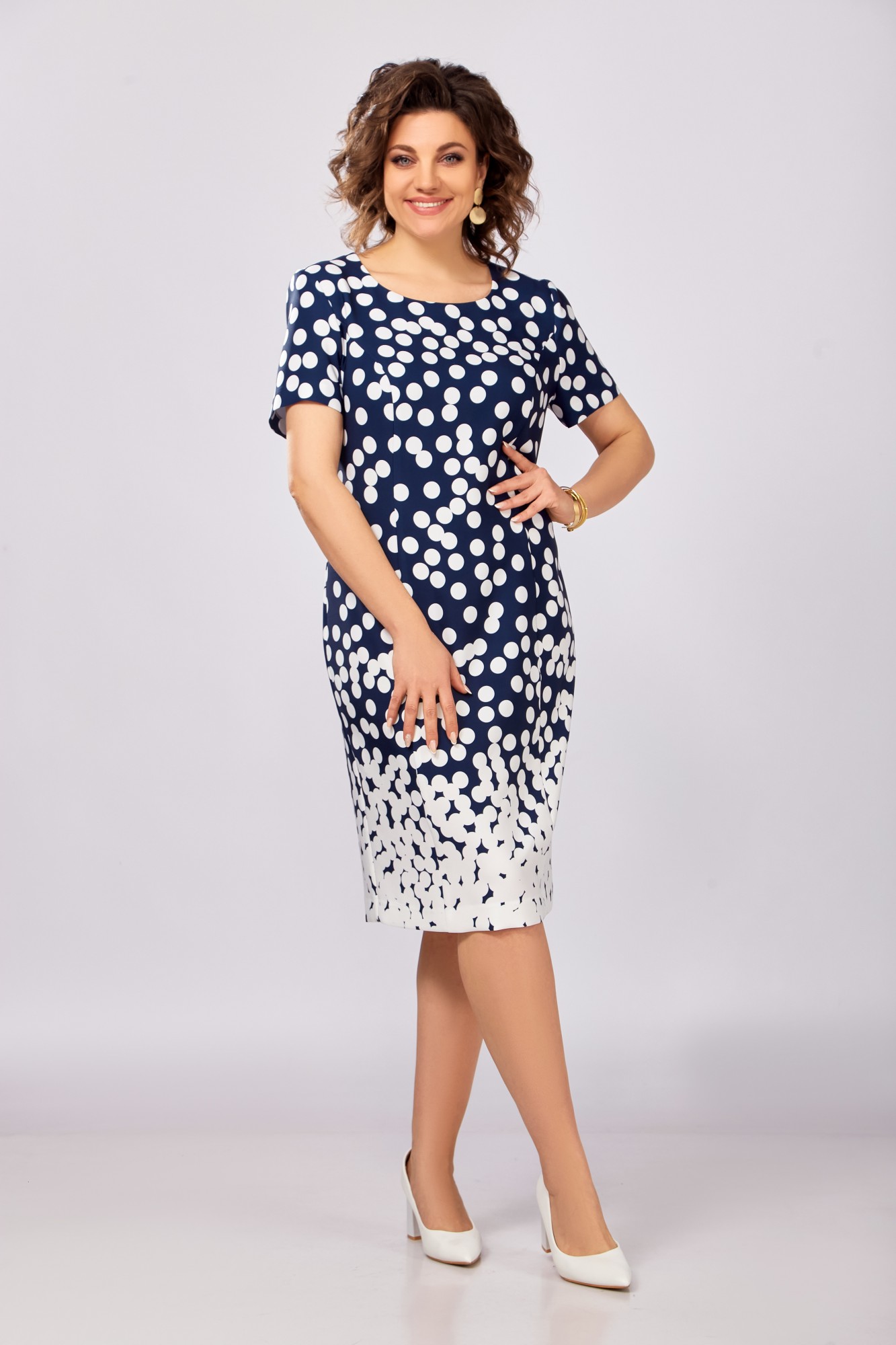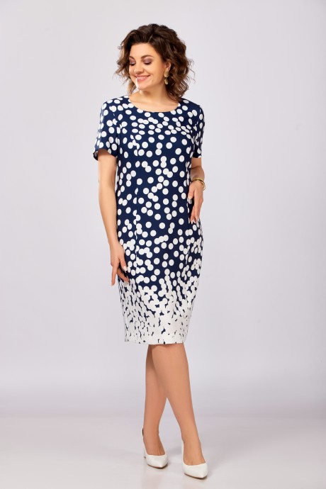 Платье Swallow 847 .2 Синий индиго, Принт белый горох