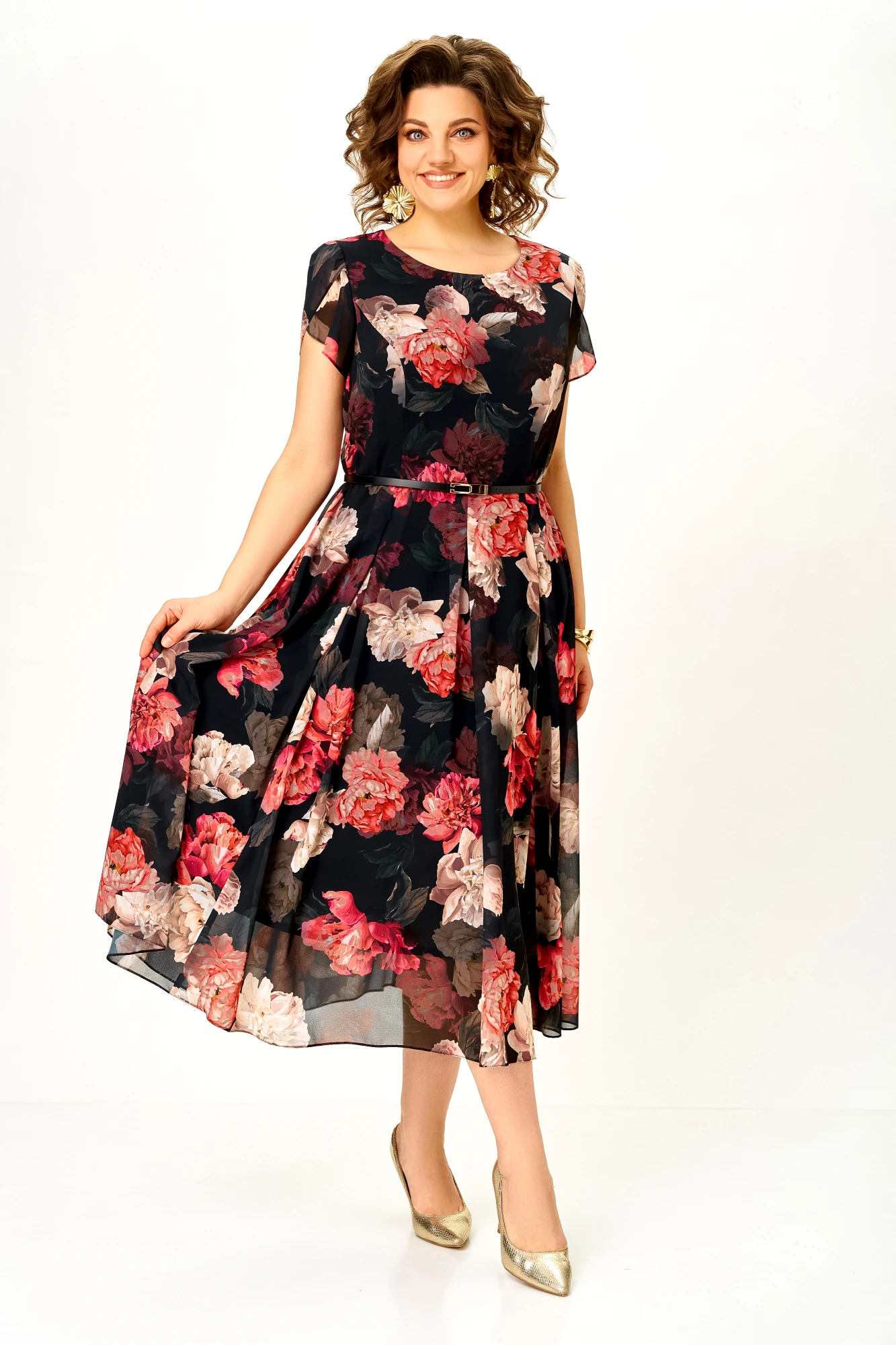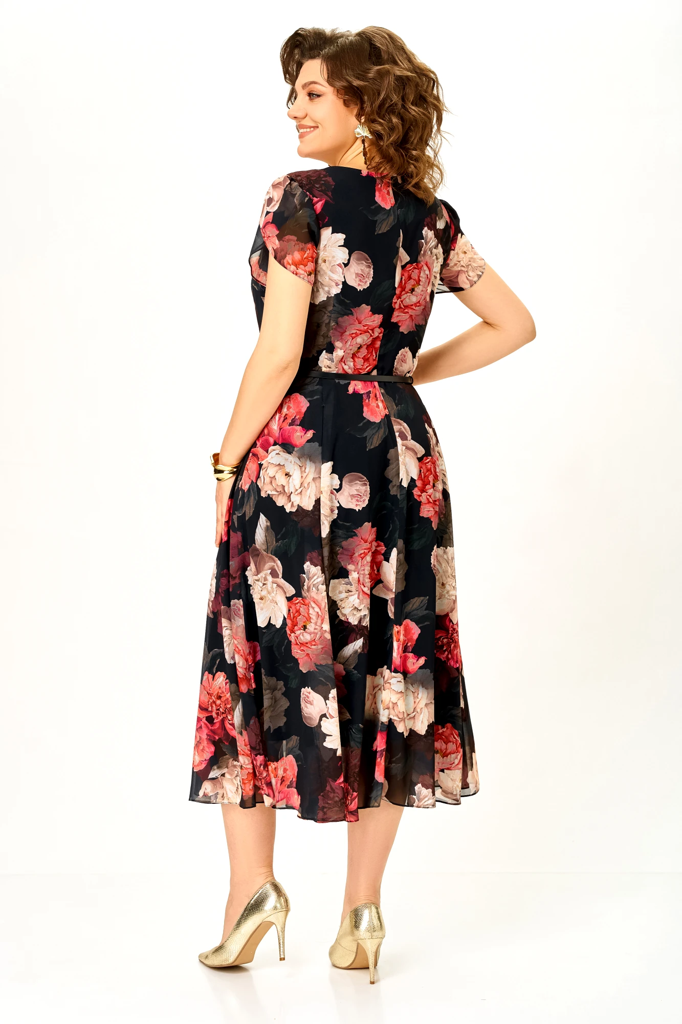 Платье Swallow 900 .5 черное, принт розы