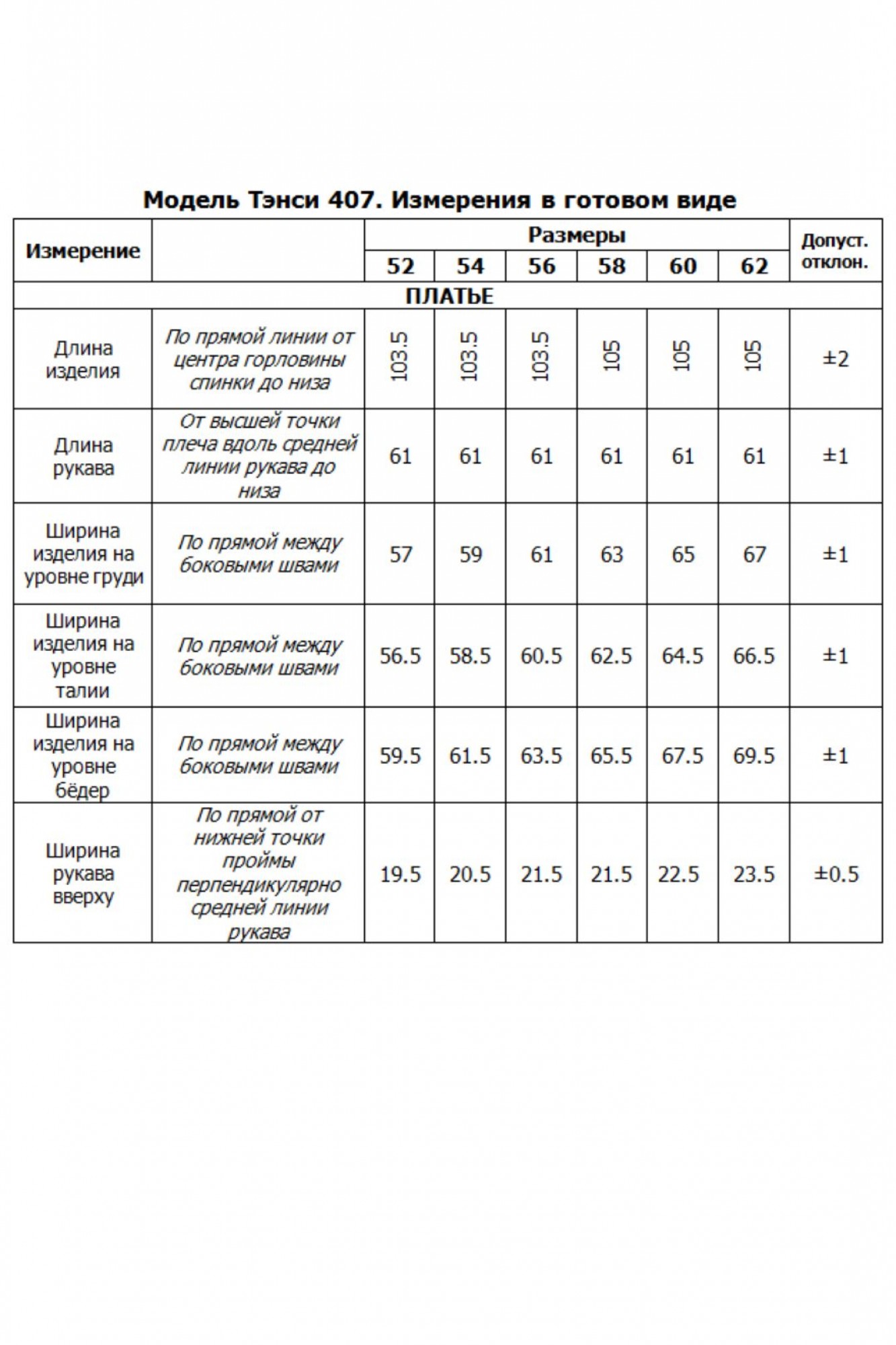 Длина от центра горловины спинки до низа для размеров 52-56 — 103,5 см, для размеров 58-62 — 105 см. Длина рукава — 61 см.