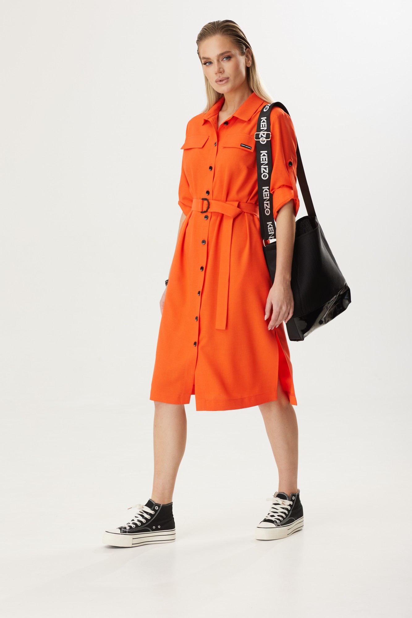Платье-рубашка дополнена поясом, который подчеркивает талию и добавляет дополнительный акцент. Это позволяет регулировать фасон по своему усмотрению и дополнять образ.