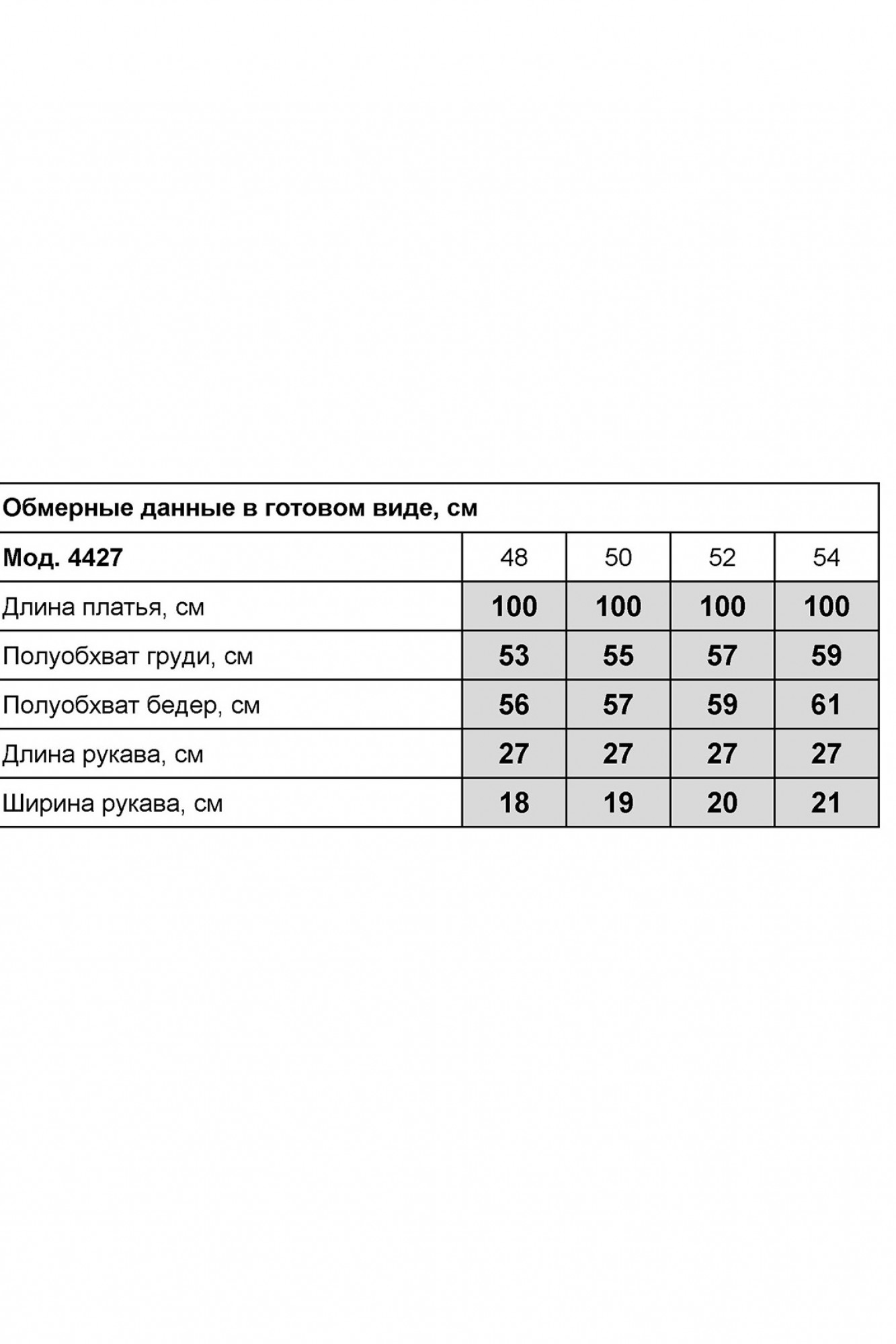 Таблица размеров
