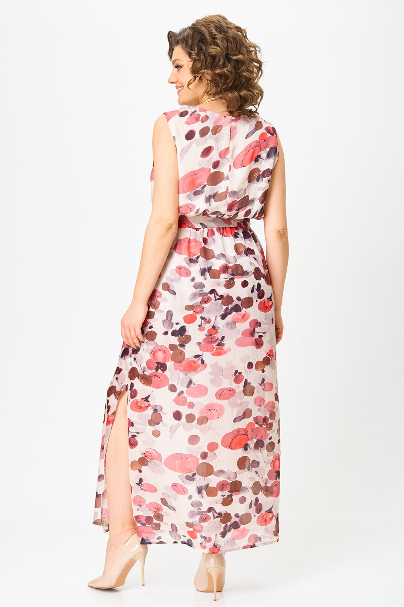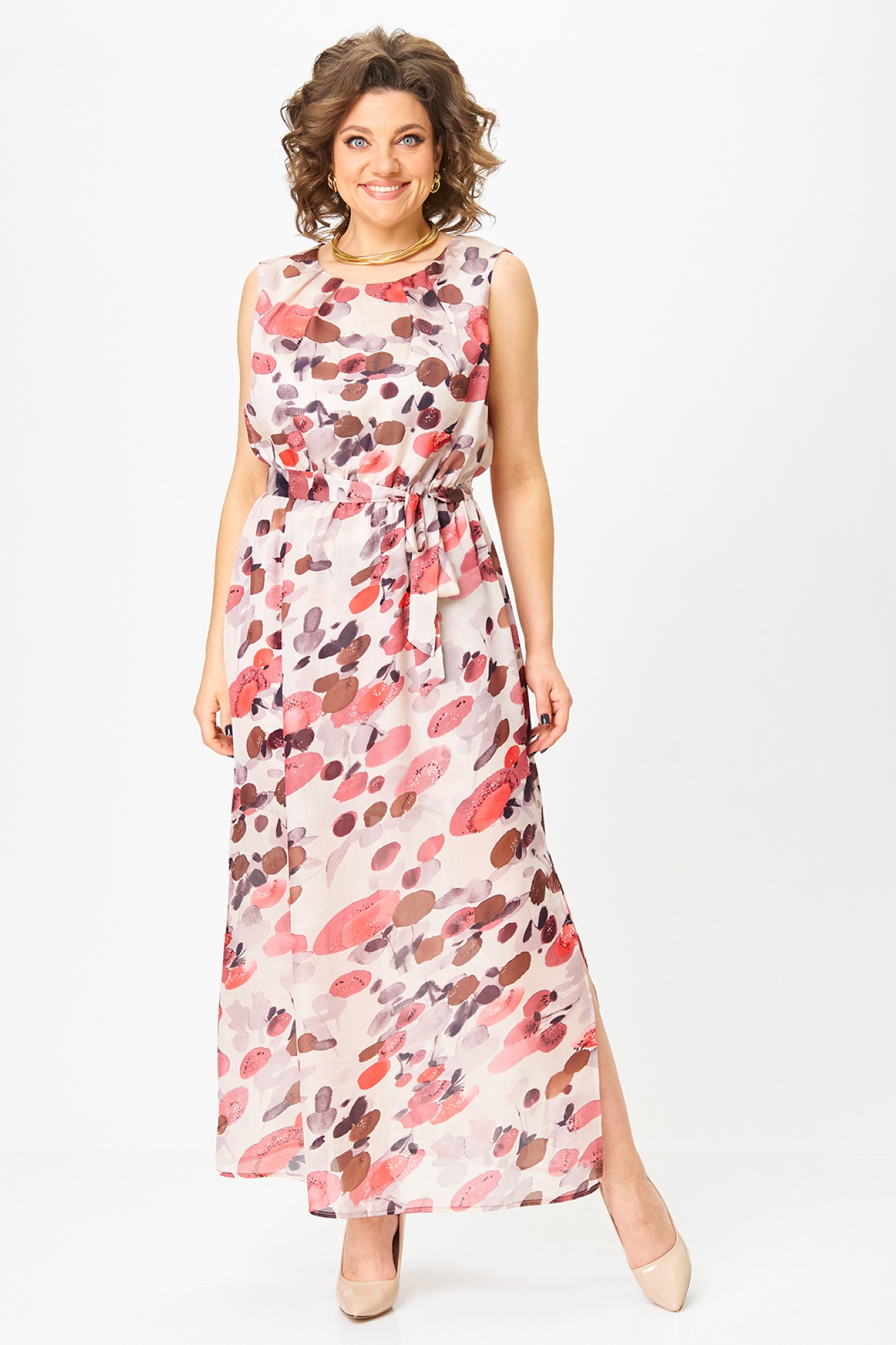 Летнее легкое платье макси с боковым разрезом выполнено из шифона. Вырез горловины спереди круглый. По спинке средний шов. Застежка на пуговичку. Платье отрезное по талии с резинкой для комфортной посадки. В комплект к платью идет пояс из основной ткани. Пожалуйста, внимательно изучите таблицу с размерами, для того, чтобы подобрать нужное платье и радоваться заказу!