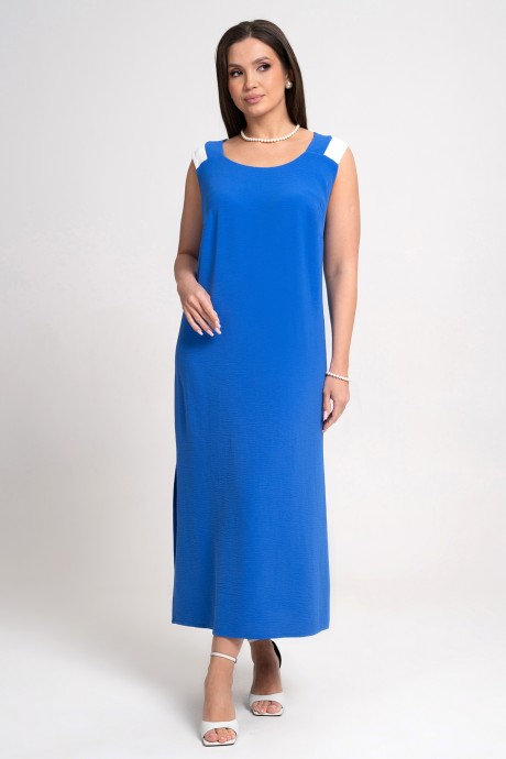 Сарафан женский А- образной силуэта, на двойных широких бретелях, с V – образным вырезом по горловине спинке и перекрещенными бретелями, по боковым швам разрезы, в дополнении с завязывающимся поясом.