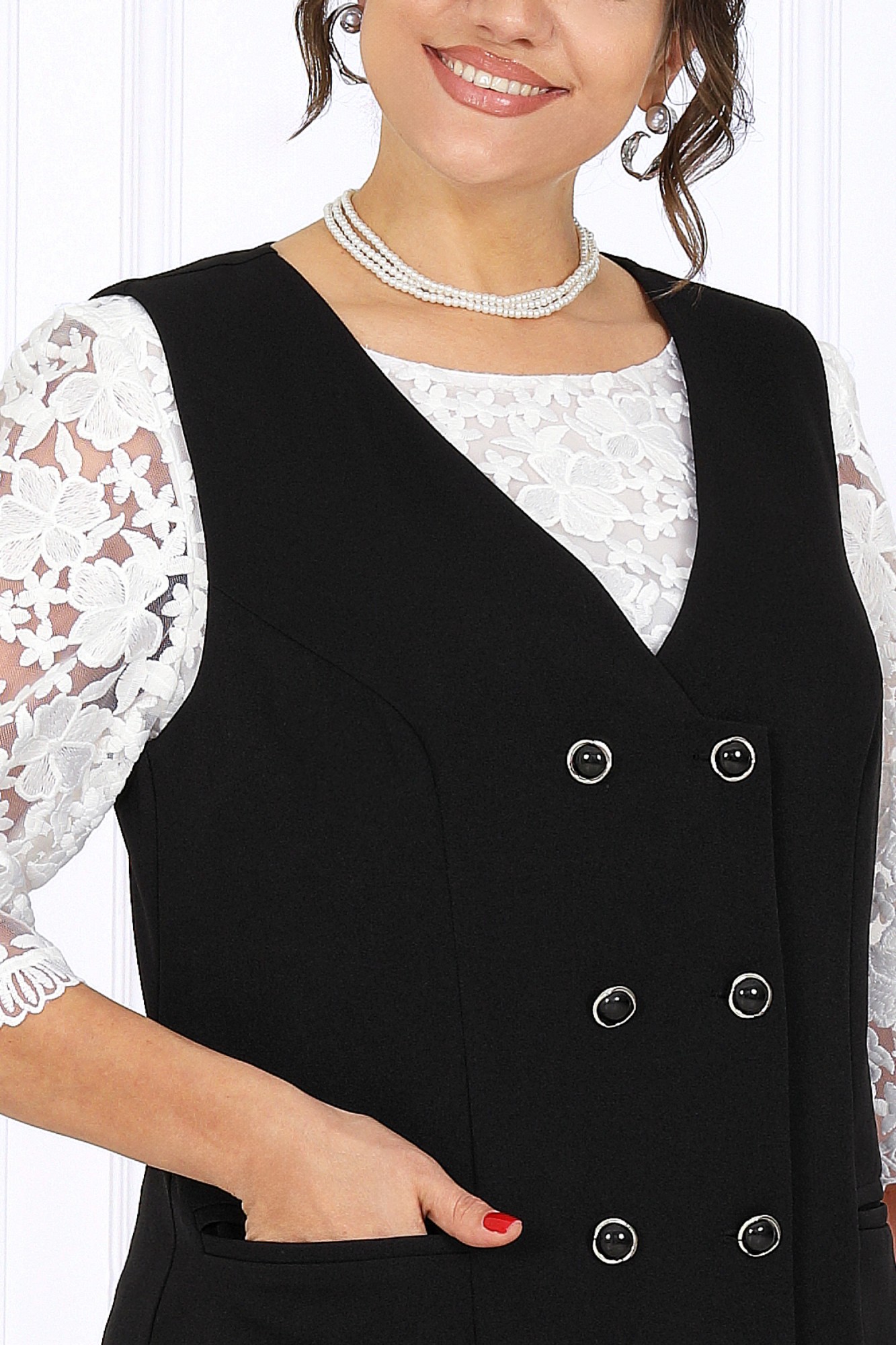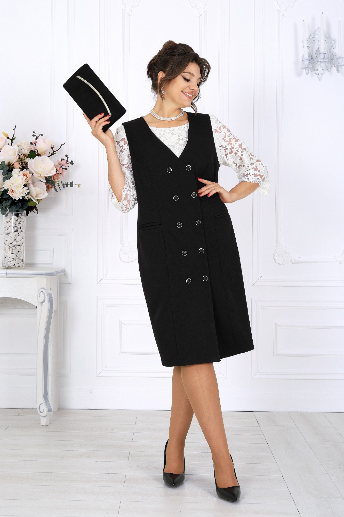 Этот сарафан, изготовленный из натуральной ткани, предлагает вам элегантность и комфорт в каждой детали. Его двубортный дизайн придает сарафану строгий и структурированный вид, что идеально подходит для офисного стиля. Однако, добавив праздничную блузку, вы трансформируете этот сарафан в стильное решение для торжественных событий. Сарафан полуприлегающего силуэта, выполнен из костюмной ткани, с двубортной застежкой на 9 петель, 10 декоративных и 4 потайных пуговиц, на трикотажной подкладке. Перед с рельефными швами, проходящими через центр груди, идущими от пройм до низа, с прорезными карманами в рамку от рельефных швов. Спинка с рельефными швами, идущими от пройм до низа, со средним швом. Проймы переда и спинки обтачные. Горловина переда V-образной формы, углубленная.