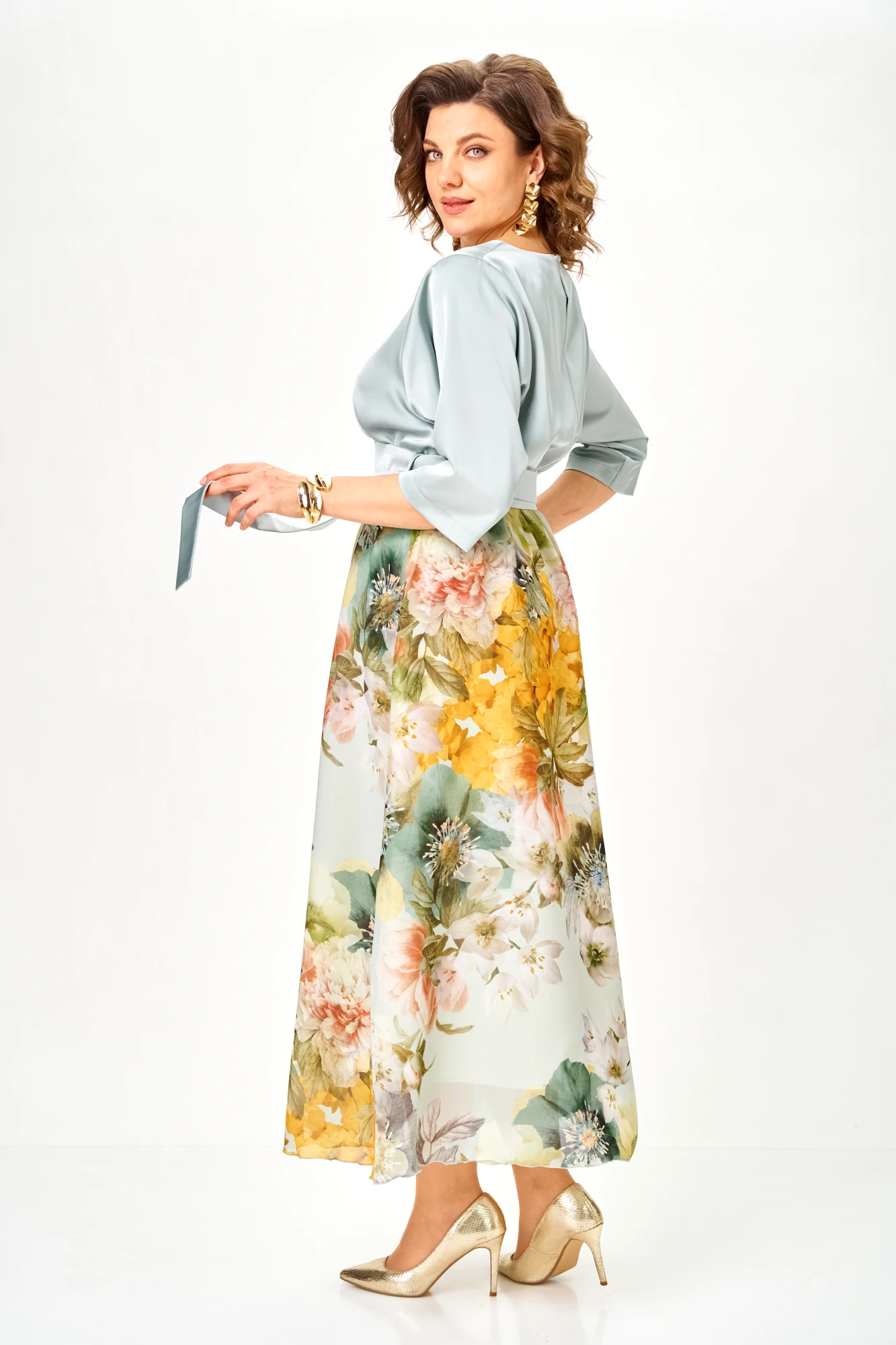 Вечернее платье Anastasia Mak 1229 -Ш голубое, цветы