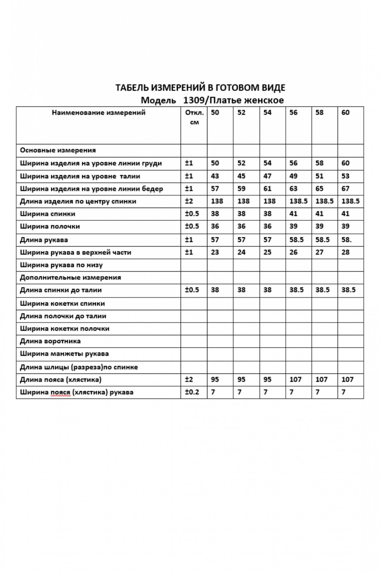 Таблица размеров