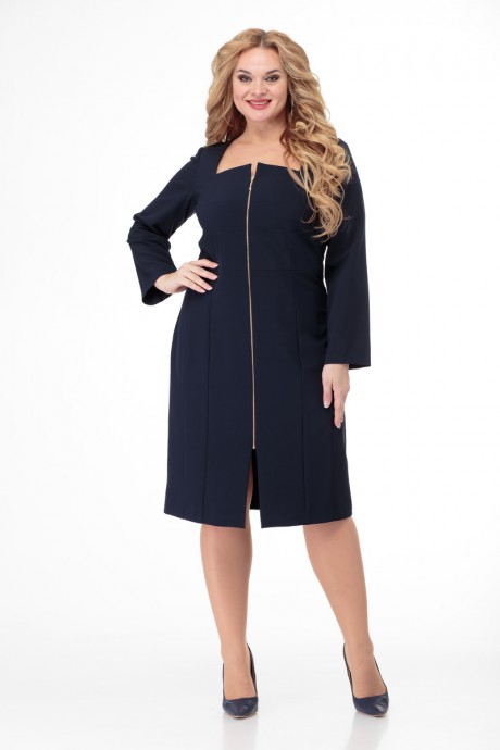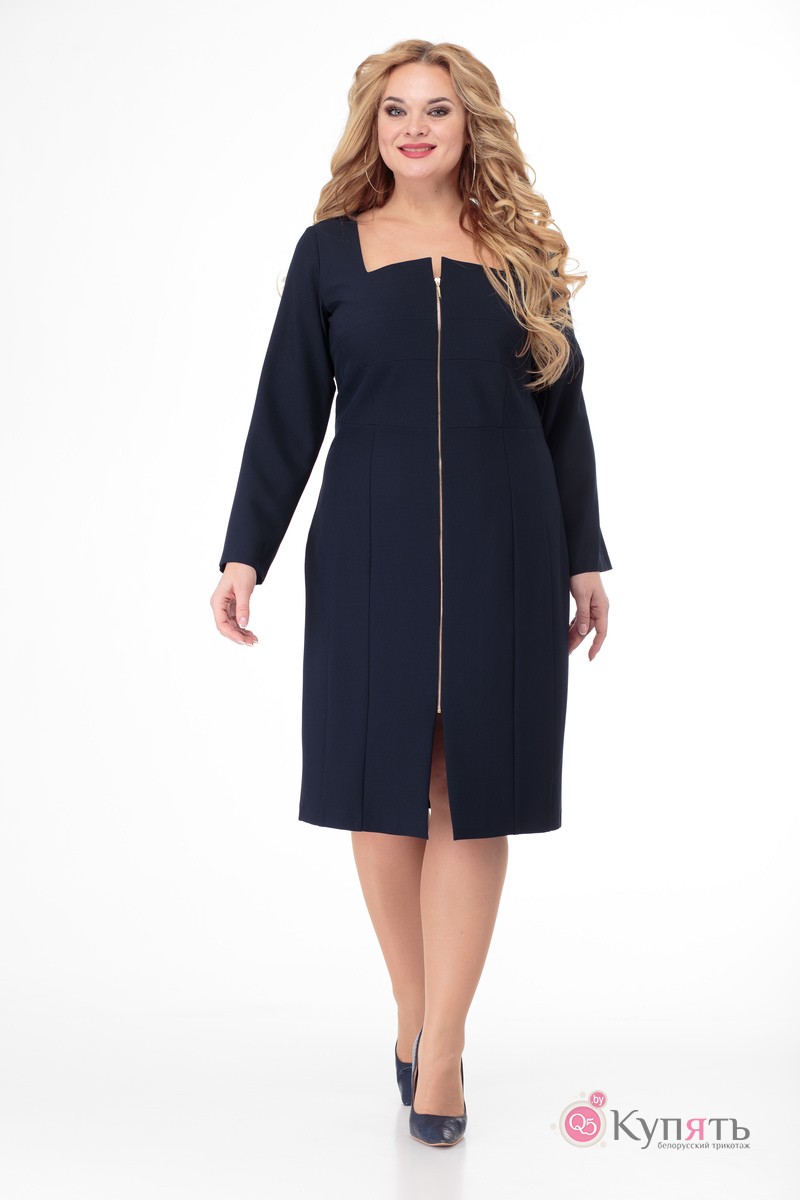 Платье полуприлегающего силуэта, длиной ниже колена, отрезное по линии талии.