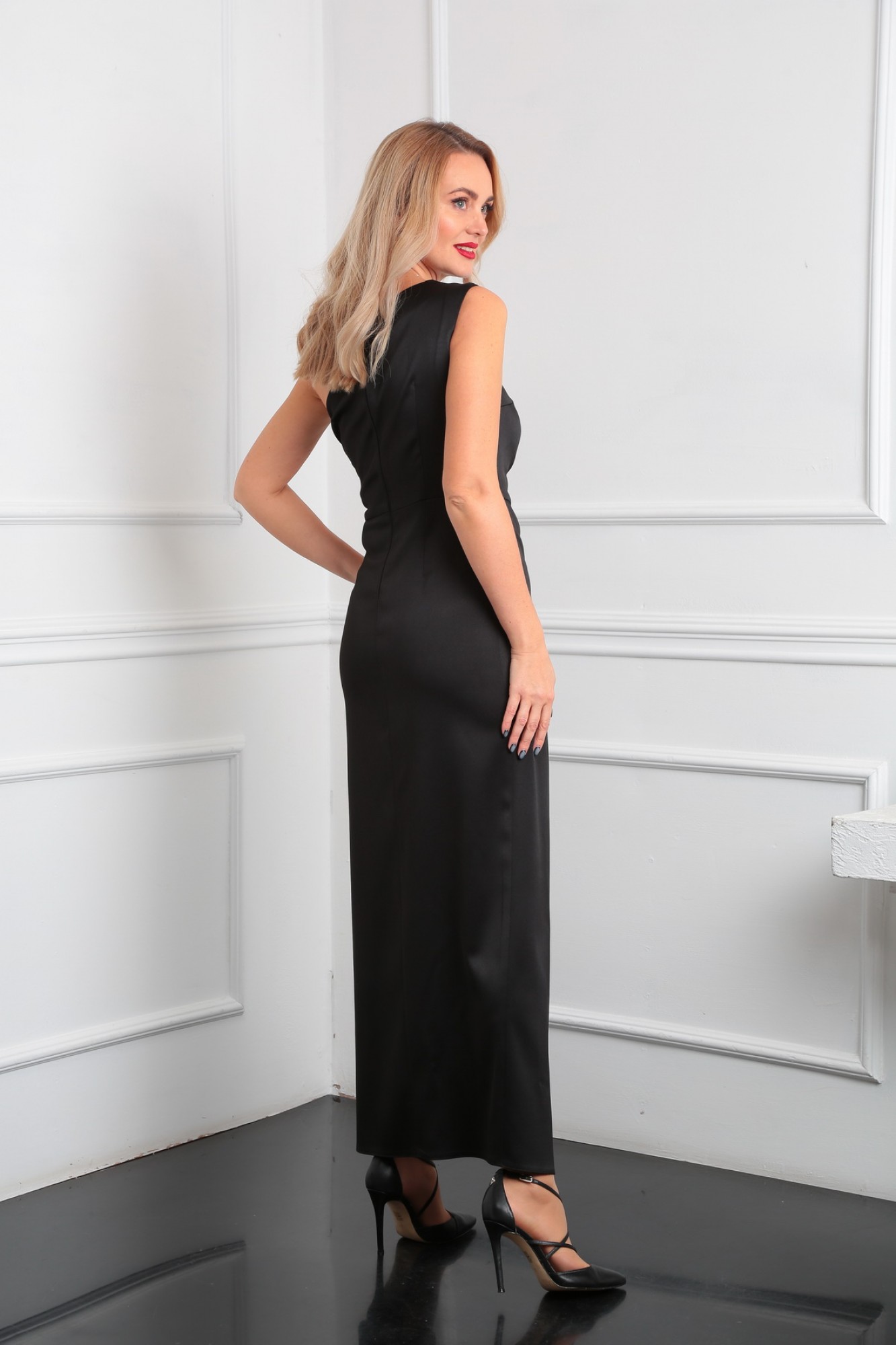 Гламурное и изысканное вечернее атласное платье в пол прилегающего силуэта с акцентными сборками в области груди, талии и бёдер, а также эффектным глубоким разрезом вдоль линии бедра- отличный коктейльный наряд на корпоратив, День Рождения, Новый Год и другие праздники. Оригинальный крой без рукавов выгодно подчеркивает изящные руки. Драпировка зрительно увеличивает грудь, подчеркивает талию, формирует пленительный силуэт "песочные часы". Это праздничное платье на одно плечо запомнят все.