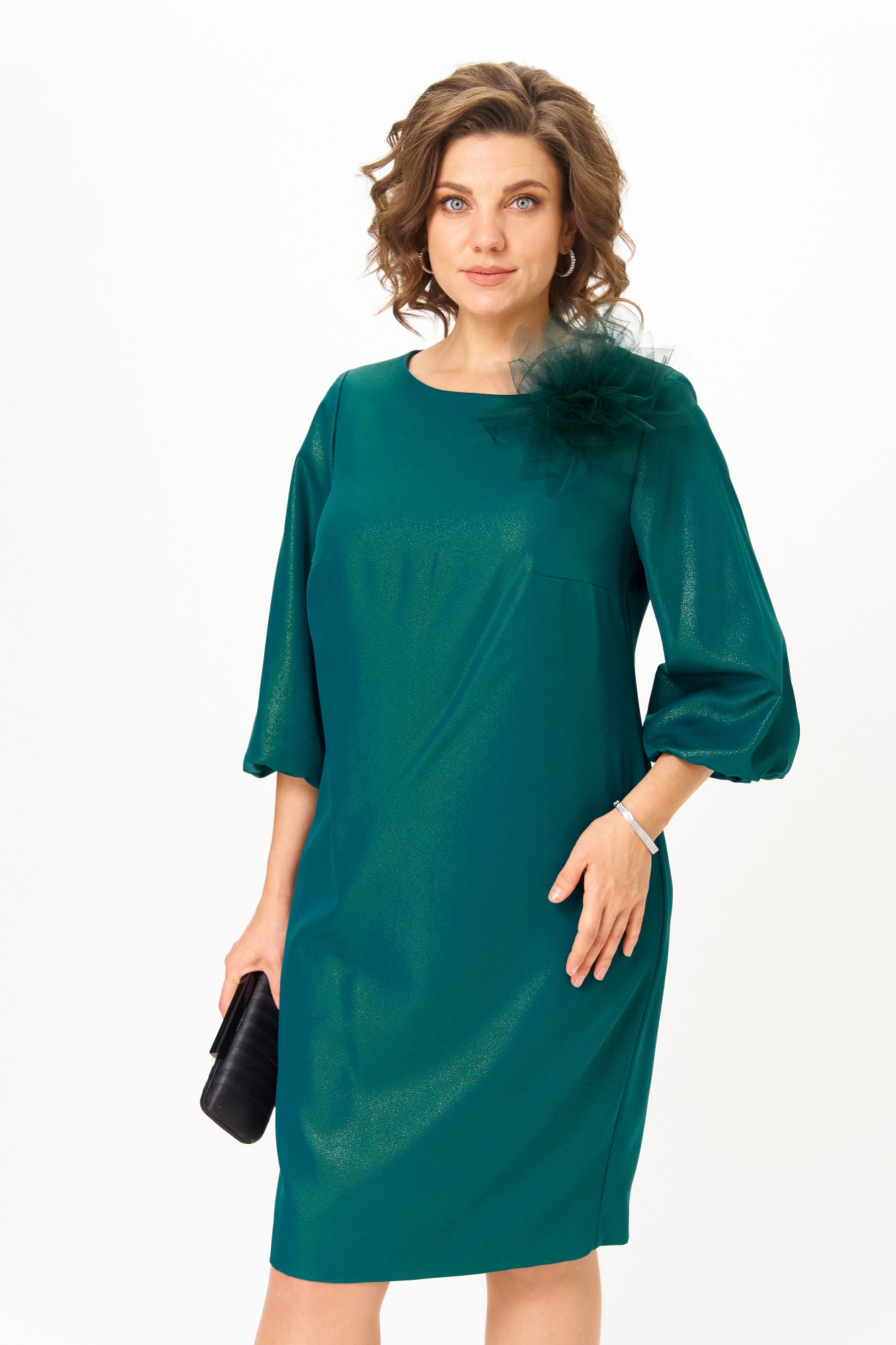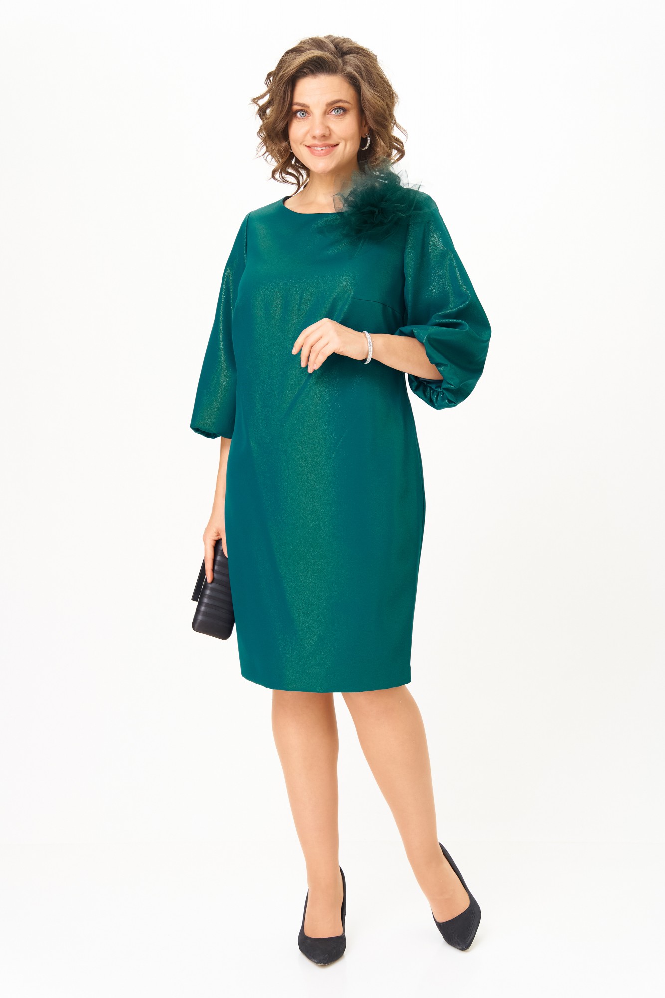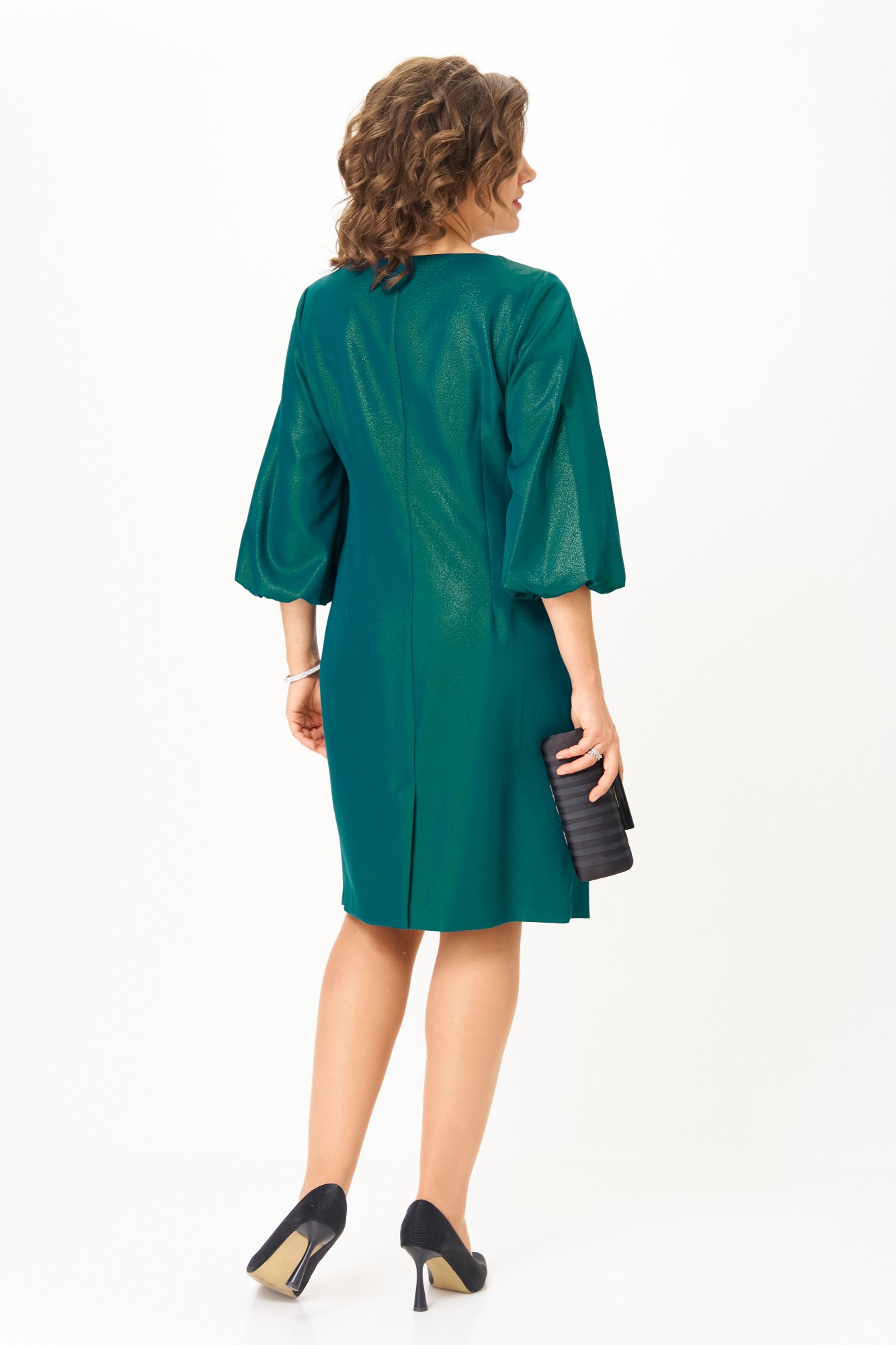 Нарядное платье выполнено из вискозной ткани с легким блеском. Платье имеет вырез лодочкой, который элегантно подчеркивает линию шеи. Объемные рукава добавляют романтичности и воздушности, создавая эффект легкой драпировки. Идеальный выбор для вечерних мероприятий и торжеств.