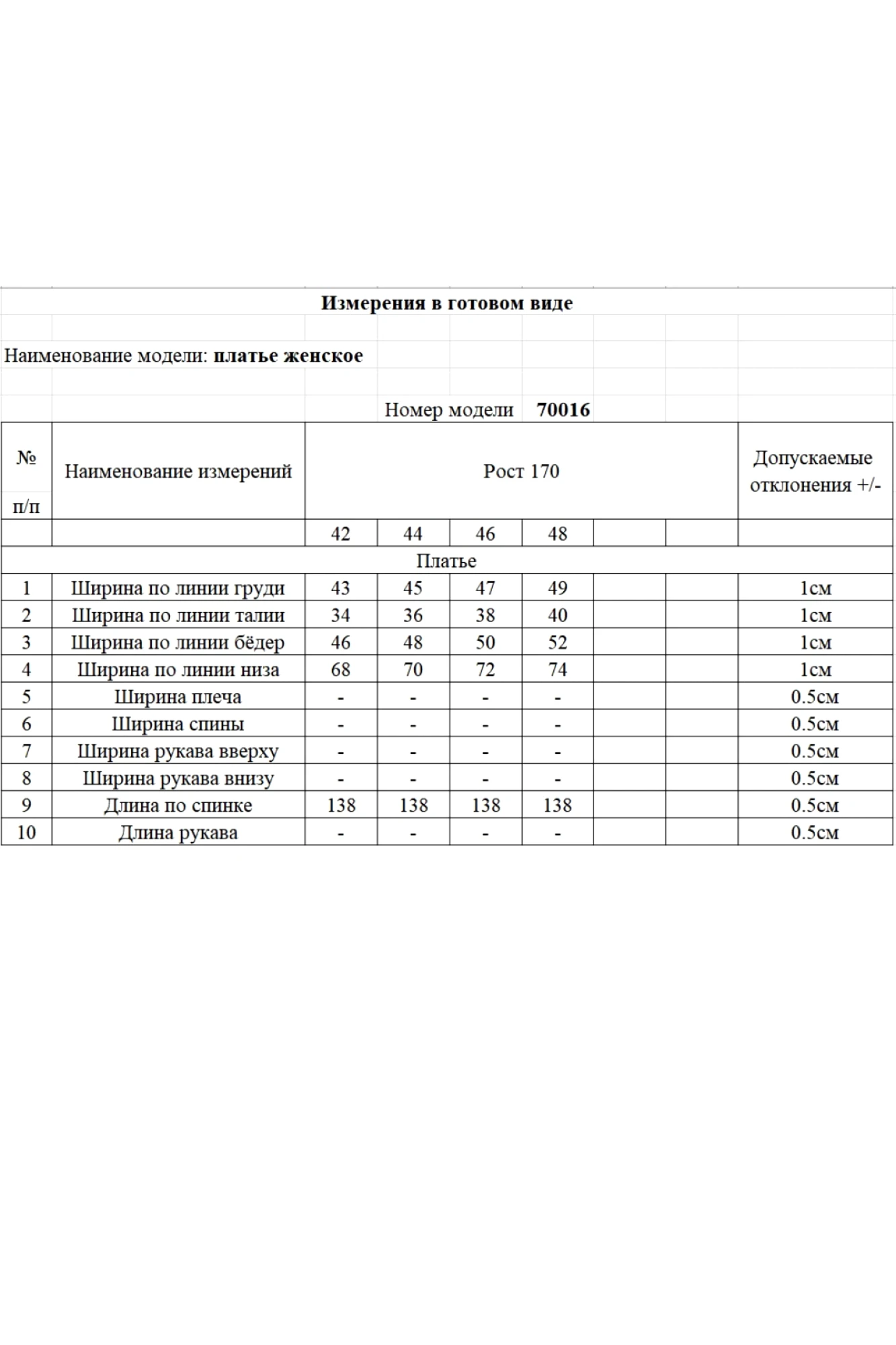 Таблица размеров