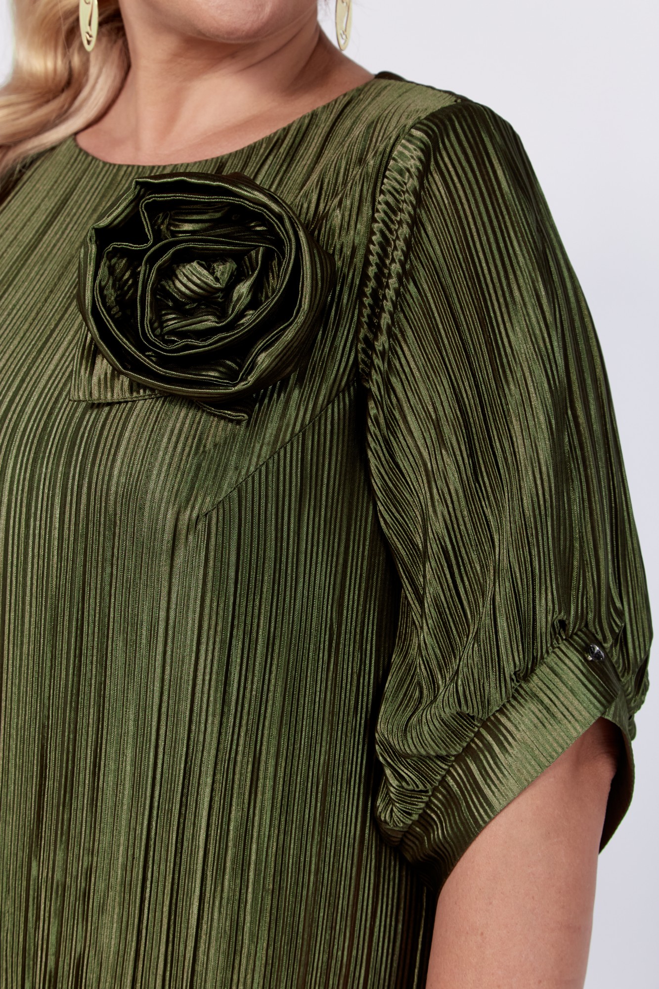 Каждая женщина хочет быть красиво одетой и выглядеть элегантно, ощущая при этом комфорт. Платье из ткани плиссе поможет Вам воплотить задуманное в реальность: оно легкое, удобное в носке, выполнено из мягкой, тонкой и шелковистой ткани, приятной к телу. Легкое винтажное платье с подкладом, обеспечивающим дополнительную защиту от просвечивания, будет уместно в любое время года за счет своей длины макси и свободных рукавов. По спинке, на горловине, обработана капелька на навесную петлю и пуговицу. Рукав втачной, длиной 3/4 с фигурным низом с односторонними складками, с притачной манжетой. Платье декорировано съемным цветком. А для тех, кто хочет подчеркнуть линию талии и сделать силуэт слегка облегающим – этого легко добиться, добавив пояс из своего гардероба. Однотонное платье сочетается с различными аксессуарами и обувью, позволяя Вам собрать множество новых уникальных вариантов носки.