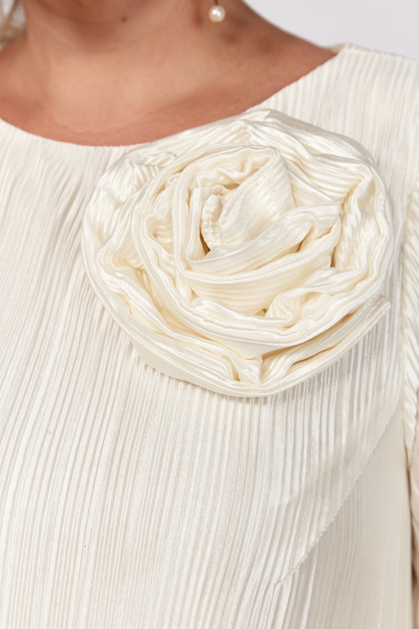 Каждая женщина хочет быть красиво одетой и выглядеть элегантно, ощущая при этом комфорт. Платье из ткани плиссе поможет Вам воплотить задуманное в реальность: оно легкое, удобное в носке, выполнено из мягкой, тонкой и шелковистой ткани, приятной к телу. Легкое винтажное платье с подкладом, обеспечивающим дополнительную защиту от просвечивания, будет уместно в любое время года за счет своей длины макси и свободных рукавов. По спинке, на горловине, обработана капелька на навесную петлю и пуговицу. Рукав втачной, длиной 3/4 с фигурным низом с односторонними складками, с притачной манжетой. Платье декорировано съемным цветком. А для тех, кто хочет подчеркнуть линию талии и сделать силуэт слегка облегающим – этого легко добиться, добавив пояс из своего гардероба. Однотонное платье сочетается с различными аксессуарами и обувью, позволяя Вам собрать множество новых уникальных вариантов носки.