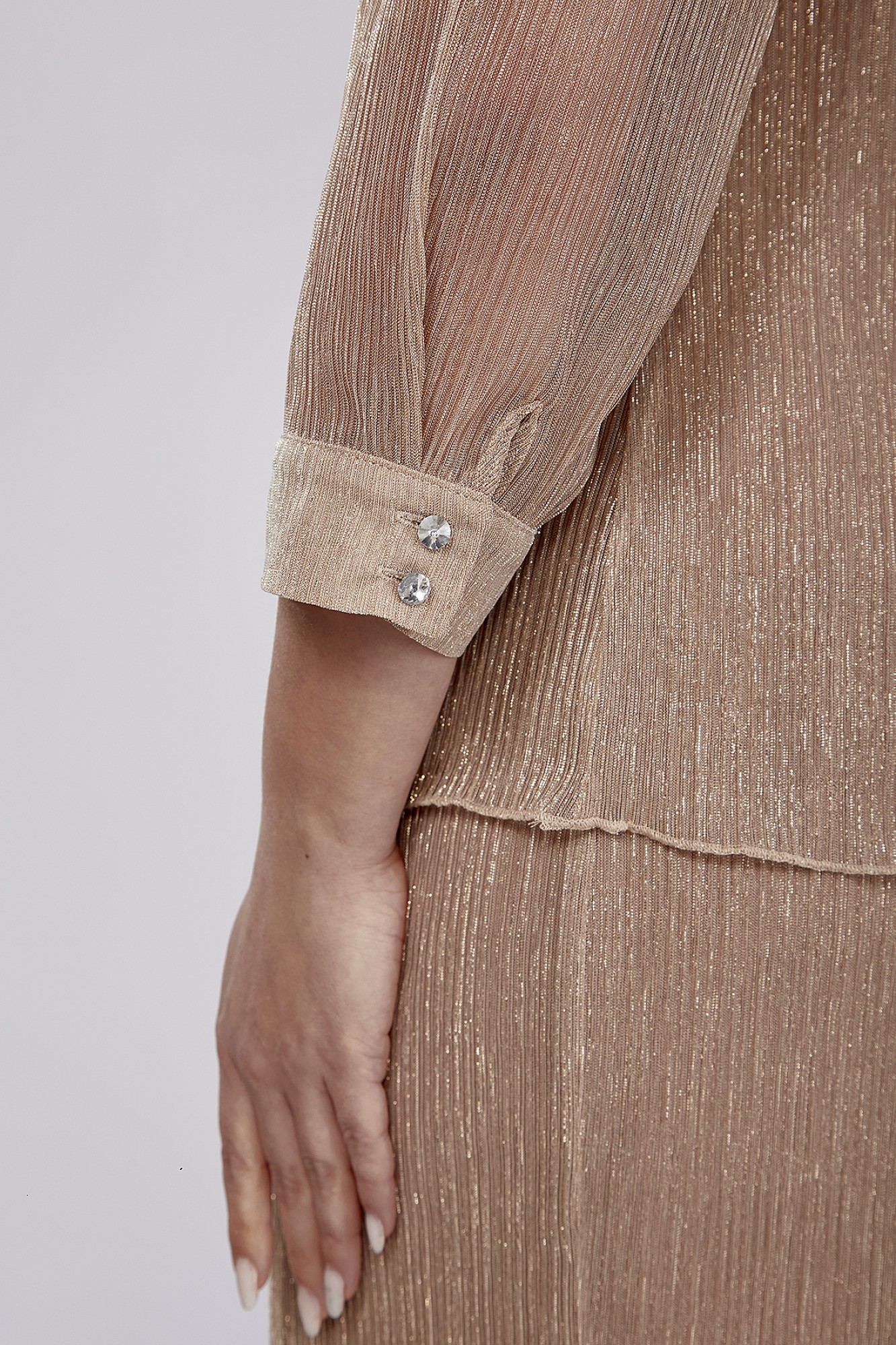 Элегантное плиссированное платье – стильный must-have для вашего праздничного гардероба! Полуприталенный силуэт и длина ниже колена делают это платье универсальным и практичным. Благодаря отлетным деталям переда и спинки, оно выглядит как изысканный костюм, сохраняя при этом легкость и комфорт. Мягкая плиссированная ткань и подкладка масло не сковывают движений, обеспечивая удобство в течение всего дня.