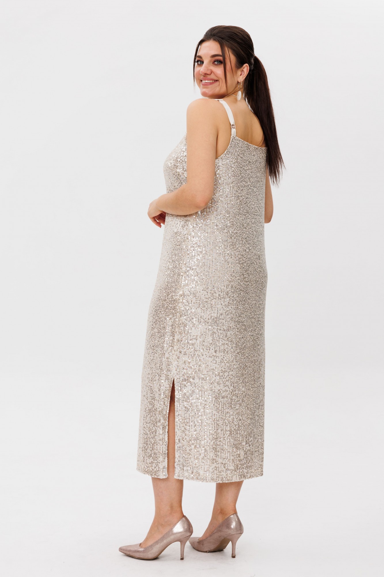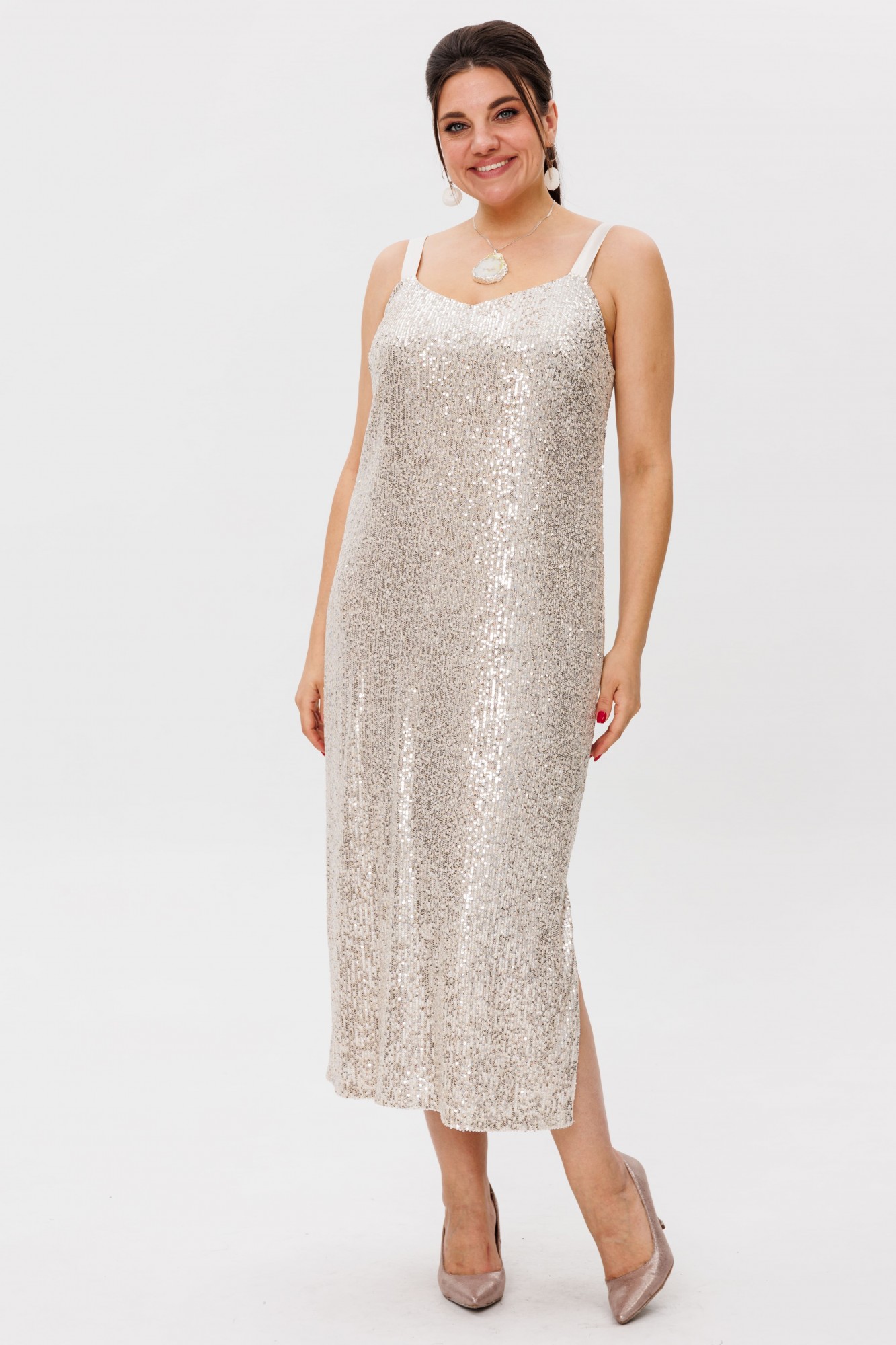 Шикарное платье-комбинация из сияющих пайеток от Анелли, которое создаёт магию! Изящный прямой крой обнимает фигуру, а соблазнительный разрез с левой стороны добавляет нотку дерзости. Регулируемые бретели из нежной органзы придают образу воздушность и элегантность, а мягкая подкладка гарантирует комфорт даже во время самых ярких вечеринок. Это платье — воплощение роскоши и стиля. Идеальный выбор для праздника, будь то корпоратив, выпускной, свадьба или день рождения. В нём вы превратитесь в настоящую звезду вечера, притягивая восхищённые взгляды. Комбинируйте с классическими жакетами или стильными рубашками, чтобы каждый раз создавать новый и эффектный образ. Настоящая находка для тех, кто хочет блистать и быть в центре внимания!