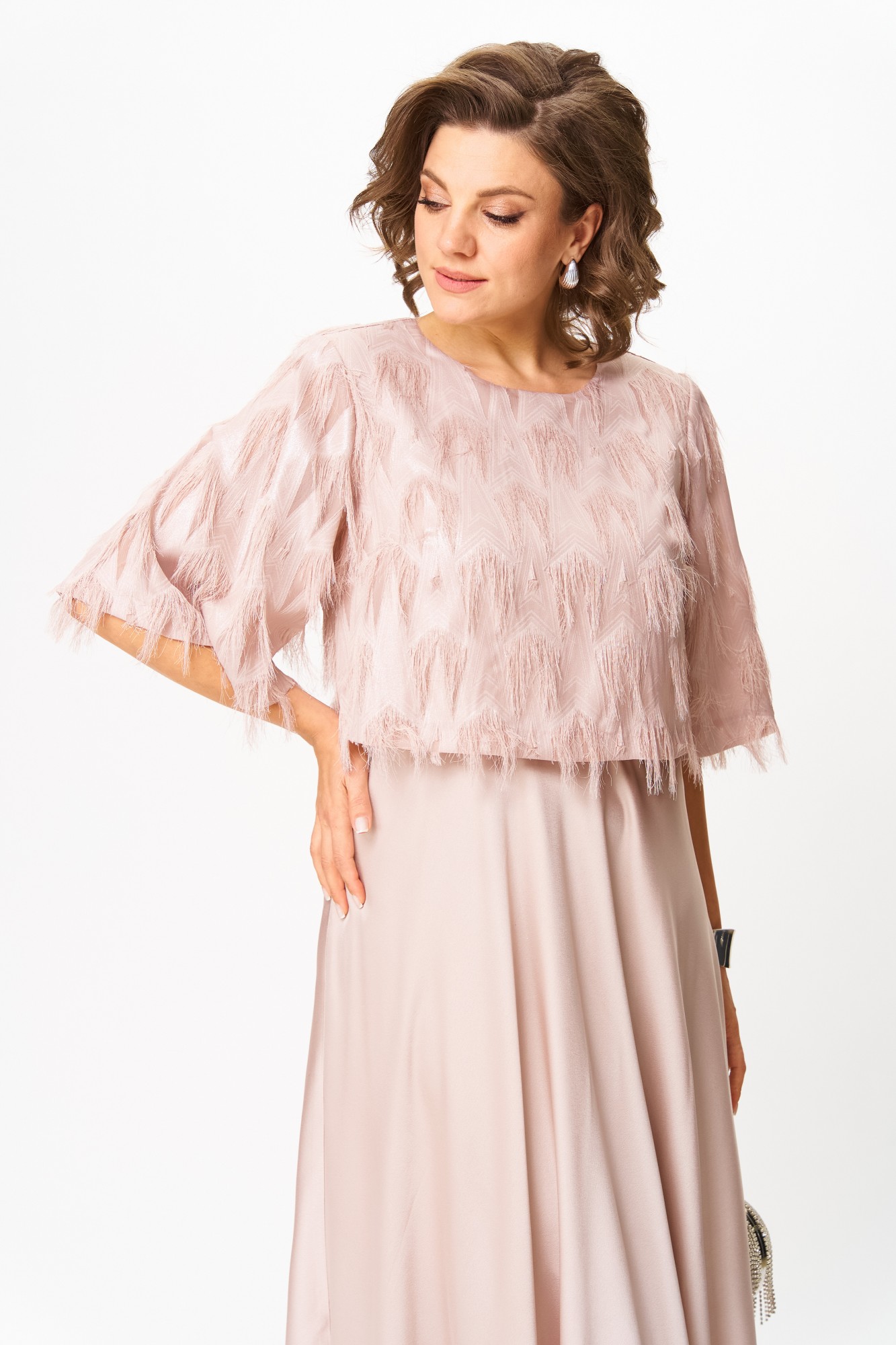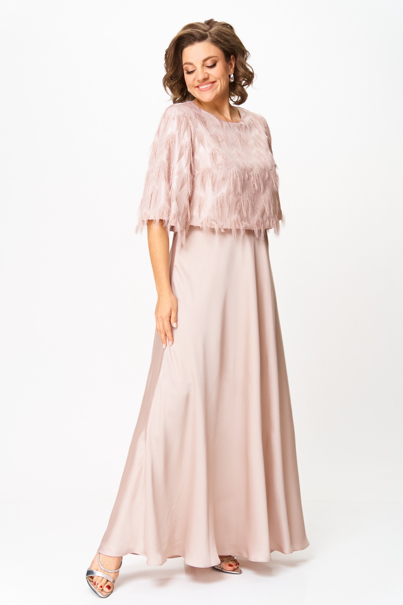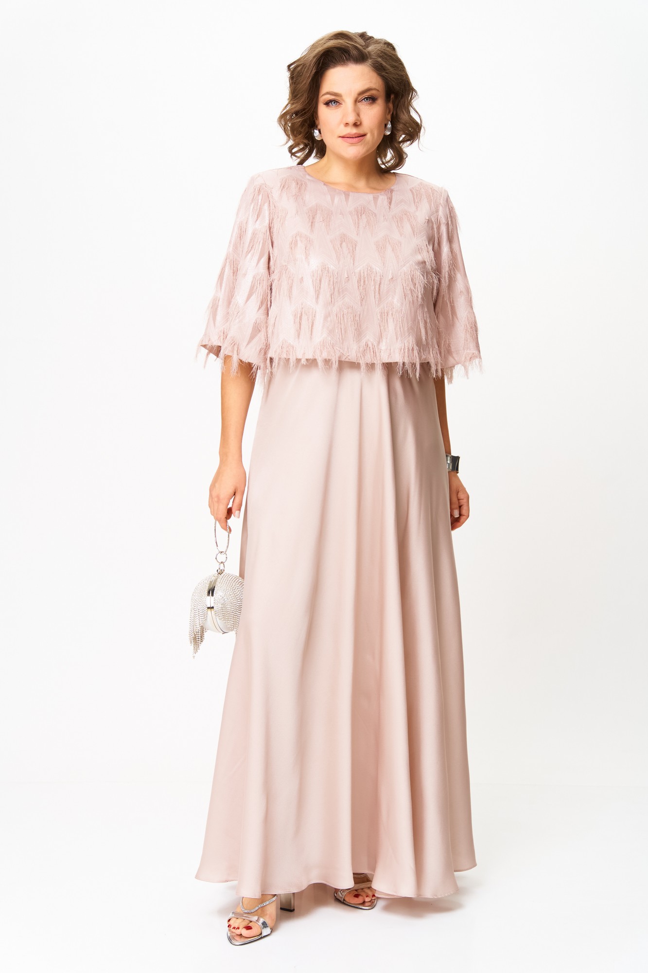 Платье в пол с воздушным верхом — настоящий хит, который вы полюбите с первого взгляда! 💖 Это изысканное платье создано для того, чтобы подчеркнуть вашу женственность и сиять на любом торжестве. Нежный оттенок придает образу особую утонченность, а двойной крой делает его по-настоящему уникальным: снизу расположена гладкая, струящаяся юбка в пол, а сверху — легкий укороченный слой с фактурным узором «реснички» и деликатным мерцанием. Такое сочетание создает эффект легкости и роскоши, словно платье предназначено для красной дорожки. Свободный верх мягко скрывает всё лишнее, а струящаяся юбка добавляет движениям грации и воздушности. В этом платье не нужно думать о том, как произвести впечатление — оно сделает это за вас. Идеальный выбор для выпускного, свадьбы, юбилея или любого особого события: в нем вы станете центром внимания, а комплименты не заставят себя ждать. Это не просто покупка — это инвестиция в уверенность и праздничное настроение. Созданное стать хитом сезона и вашим любимым нарядом, оно обязательно подчеркнет вашу индивидуальность и красоту.