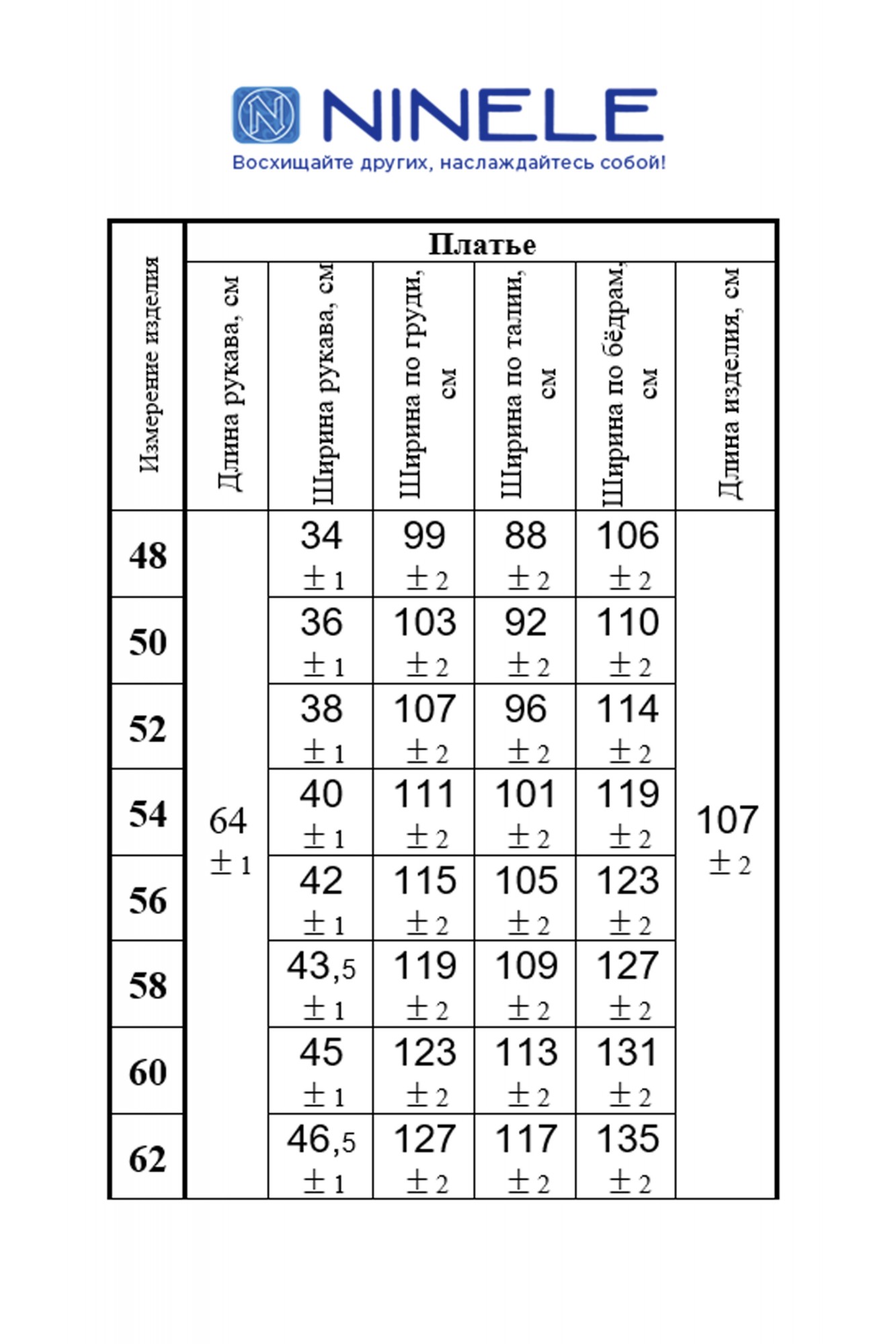 Ширина рукава по линии плеча платья / см.. 48р 34+/-1, 50р 36+/-1, 52р 38+/-1, 54р 40+/-1, 56р 42+/-1, 58р 43,5 +/-1, 60р 45+/-1, 62р 46,5 +/-1