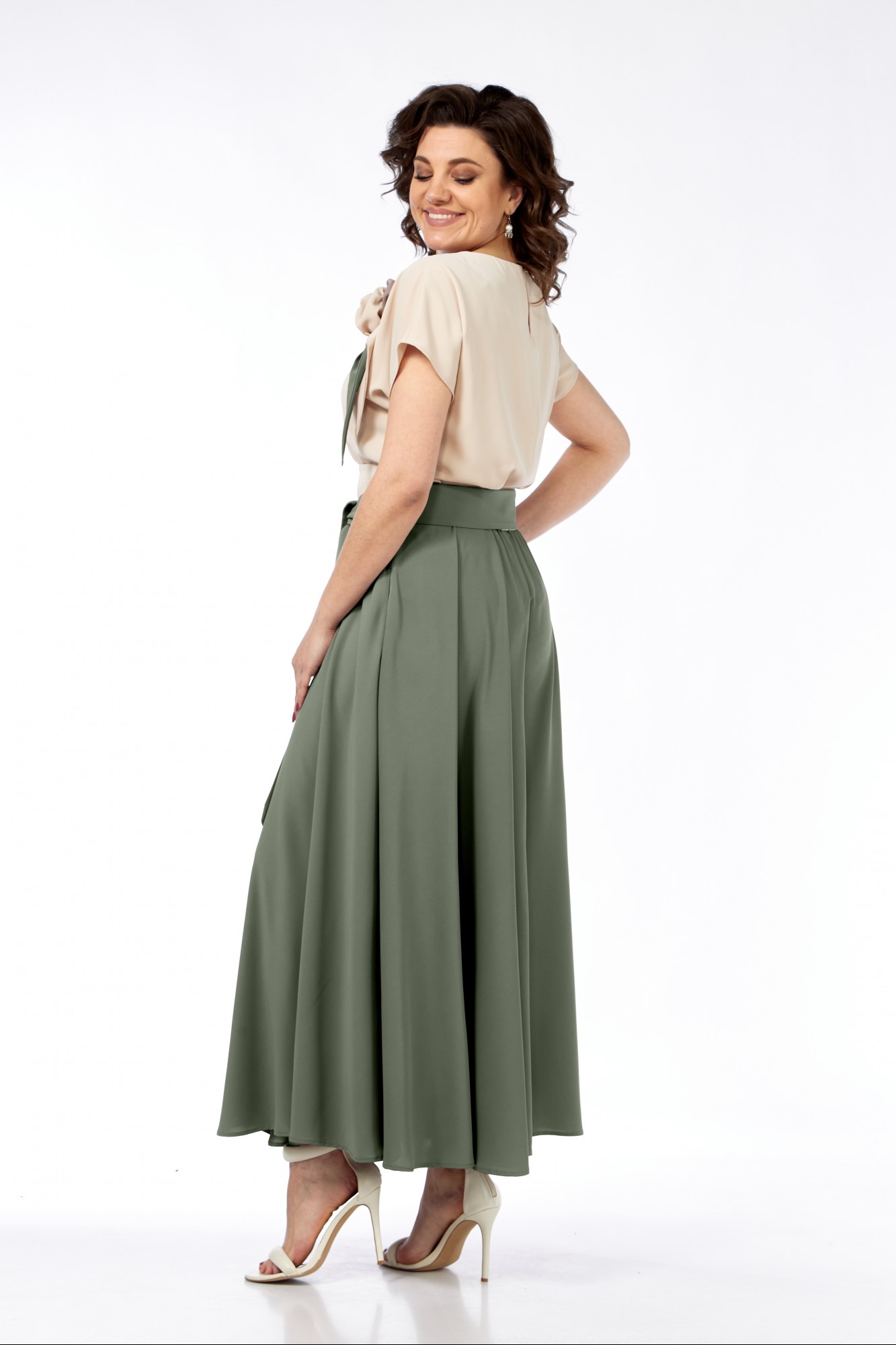 Вечернее платье Ольга Стиль С912 бежевый, зеленый с ID товара 428595