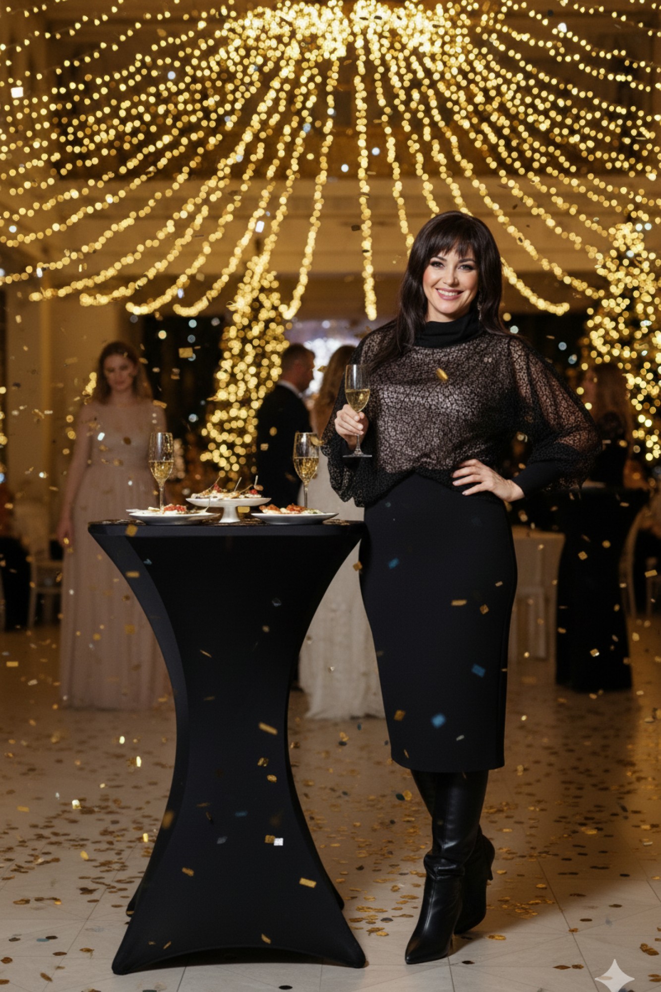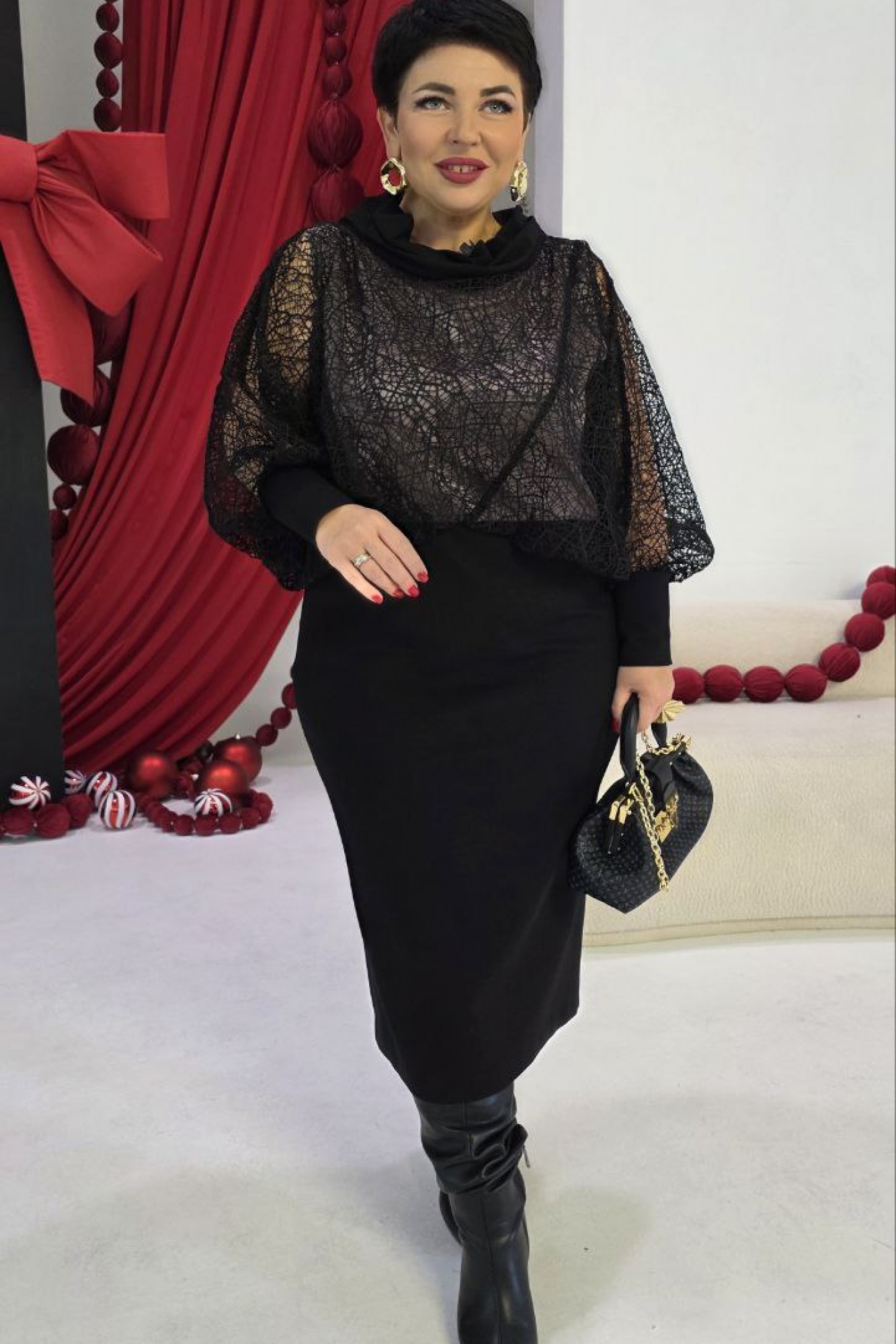 Платье-загадка. В нём ажурная невесомость чёрной сетки на лифе встречается с архитектурной чёткостью воротника-хомута, собранного в изящные защипы. А от него вниз устремляется матовый поток юбки-карандаш, строгий, безупречный и невероятно соблазнительный в своей простоте. Это платье создано для тех, кто знает силу намёка. Глубокий чёрный цвет здесь не просто окрас, а целая история. Высокий воротник-хомут, пронизанный лучами защипов, обнимает шею, как роскошный ошейник, придавая образу отстранённое благородство и лёгкий флёр декаданса. И в противовес воздушному лифу — юбка-карандаш. Сшитая из плотного, послушного трикотажа, она властно лепит форму, подчёркивая линию бёдер и строгость силуэта. Это диалог нежности и строгости, соблазна и сдержанности. Платье полуприлегающего силуэта, отрезное выше уровня талии. Лиф в платье из сетки, с диагональным рельефом по переду. Рукав в платье цельнокроеный со сборкой на высокий манжет. Для удобного прилегания к руке в манжете застёжка на потайную тесьму молнию. Горловина округлой формы с притачным воротником по форме хомут. Лиф в платье с напуском на юбку платья.