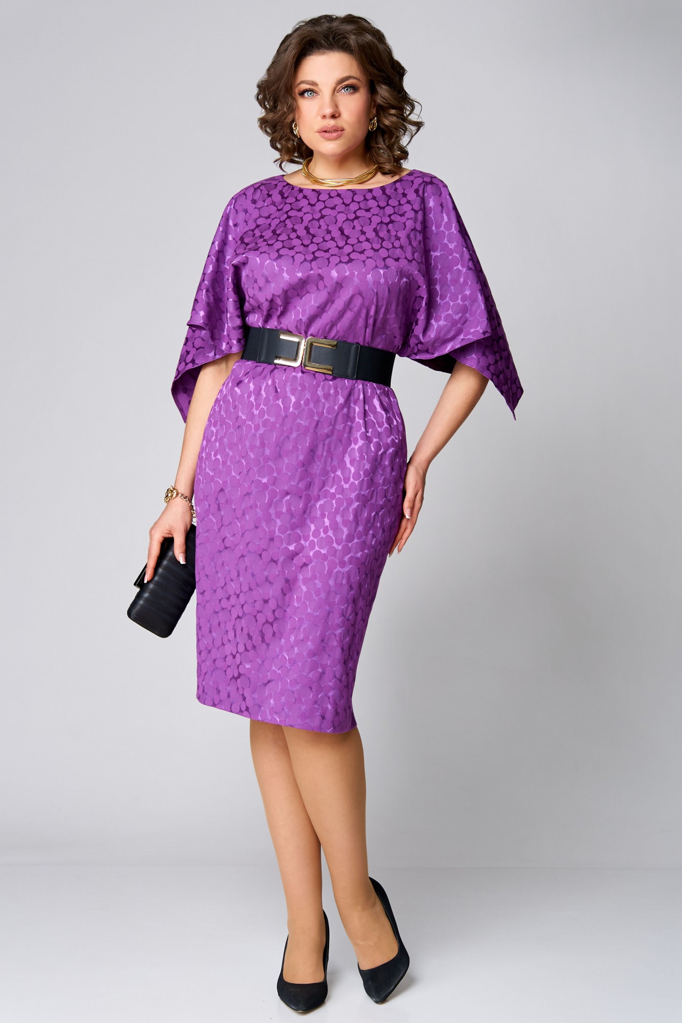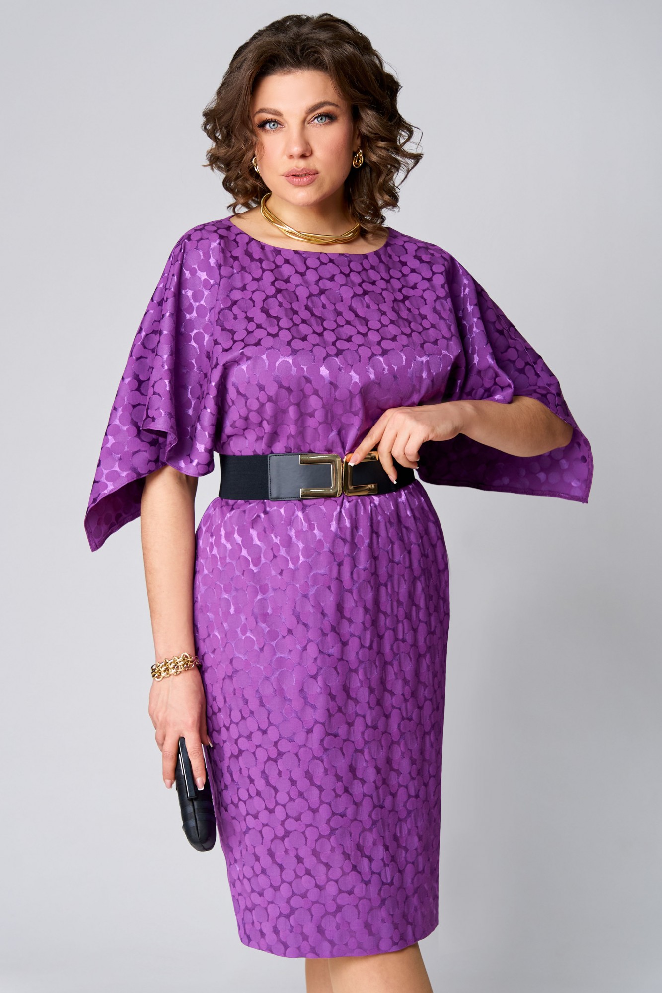 Платье Х-образного силуэта из хлопкового полотна с мерцающим принтом «конфетти». Округлый вырез горловины, обработан обтачкой. Рукав цельнокроеный «летучая мышь». Спинка со средним швом и разрезом по низу, застежка на потайную тесьму-молнию. Имеется съемный пояс.