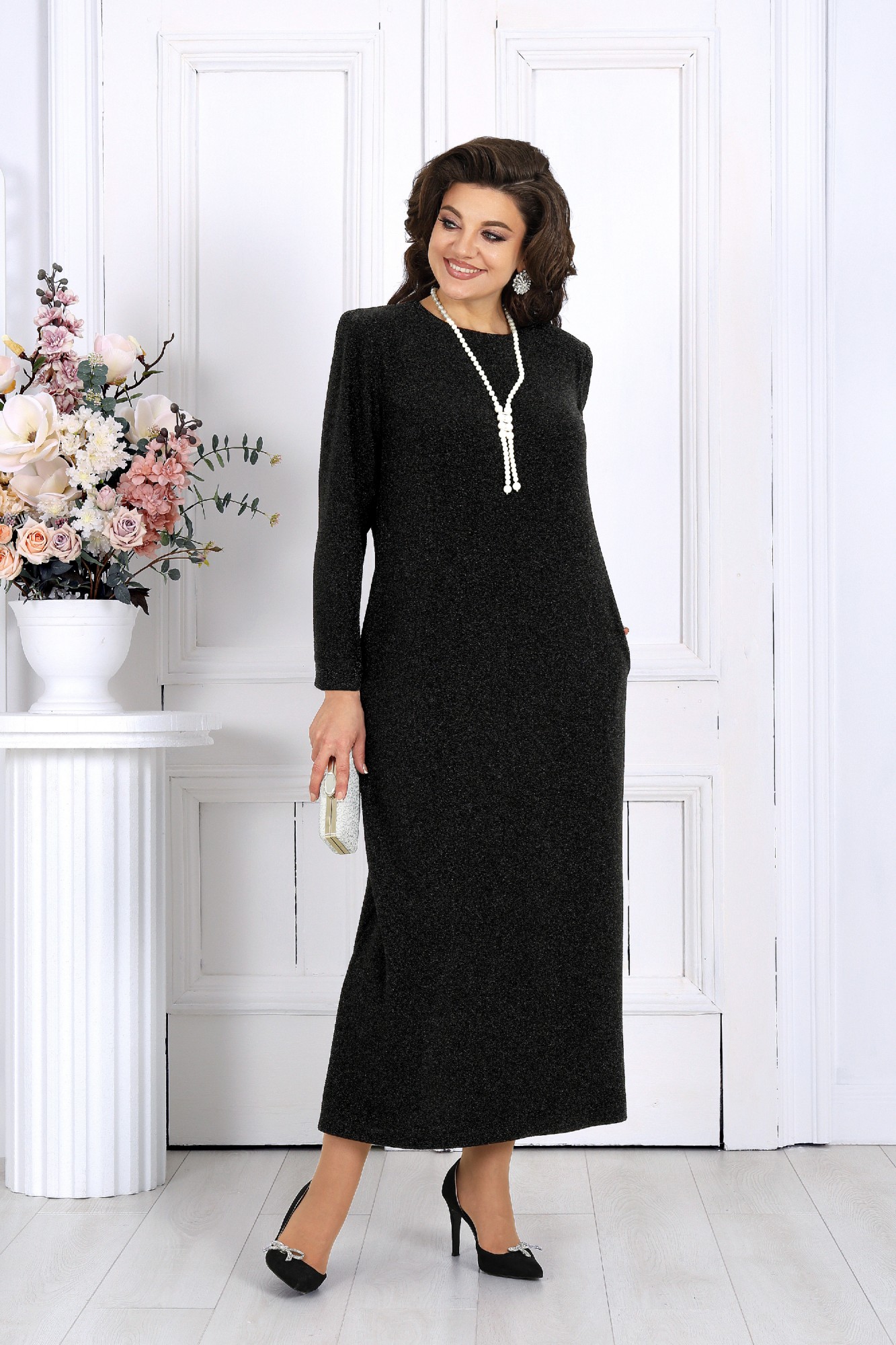 Это платье станет прекрасным выбором для вечерних мероприятий, деловых встреч или особых случаев, когда хочется быть уверенной в себе и выглядеть восхитительно. Выполненное из трикотажного полотна с изысканной фактурой и блеском люрекса, оно привлекает взгляд и подчеркивает вашу индивидуальность. Воротник и манжеты легко снимаются, превращая платье из нарядного вечернего в более повседневный вариант. Платье женское полуприлегающего силуэта, выполнено из трикотажного полотна с фактурной лицевой стороной «люрекс». Модель с карманами в боковых швах, на трикотажной подкладке, с плечевыми накладками. Перед с нагрудными вытачками, направленными от пройм. В верхней части среднего шва спинки расположена застежка на тесьму-«молнию» (50 см), в нижней - разрез. Круглая горловина оформлена съемным воротником, декорированным спереди пришивными камнями. Рукав длинный, втачной, низ оформлен съемной манжетой с разрезом. Воротник и манжеты выполнены из сатина и пристегиваются к изделию при помощи прорезных петель и пуговиц.