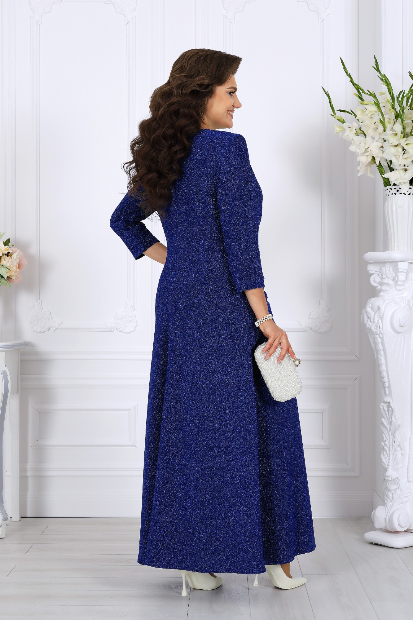 Элегантное вечернее платье из люрекса — создано для особенных событий. Изысканное длинное платье, которое подчеркивает женственность и утонченность. Выполнено из благородного трикотажного полотна с мерцающим люрексом — ткань мягко драпируется, не сковывает движения и эффектно играет при каждом шаге. Асимметричный перед с запахом и деликатными драпировками визуально стройнит и формирует правильный силуэт для женщин с формами. Глубокий разрез добавляет образу легкой смелости, оставаясь элегантным и уместным на торжественных мероприятиях. Платье женское, расширенное к низу, выполнено из трикотажного полотна с фактурной лицевой стороной «люрекс». Модель на трикотажной подкладке, с плечевыми накладками. Перед платья асимметричный, состоит из двух деталей, скрепленных на запах. На левой детали переда обработан рельефный шов с разрезом по низу. Правая деталь переда задрапирована сборкой и входит в рельеф на участке между двумя горизонтальными подрезами боковой части переда. На спинке обработаны таллиевые вытачки и средний шов с застежкой на потайную тесьму-«молнию» (50 см). Рукав трехчетвертной.