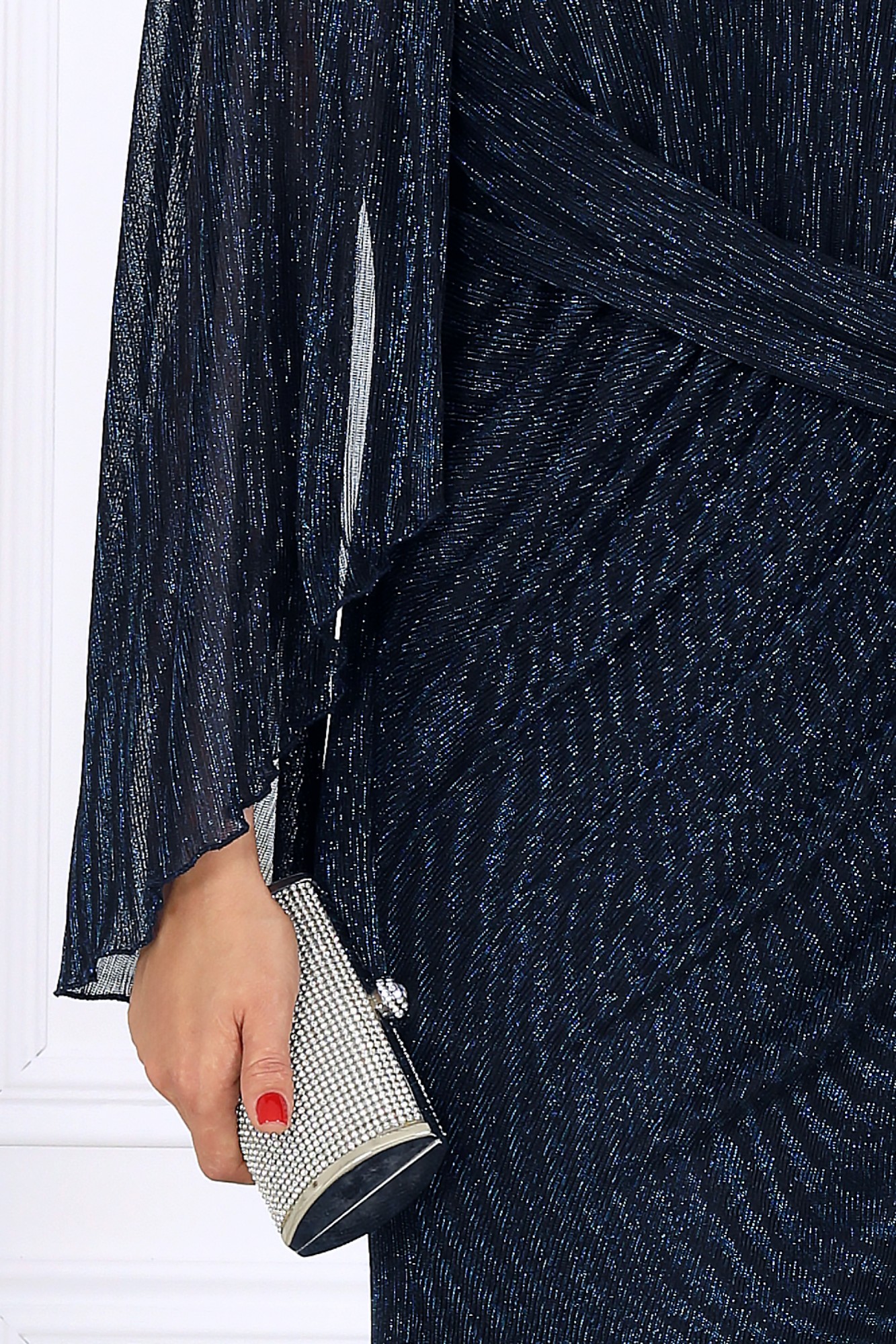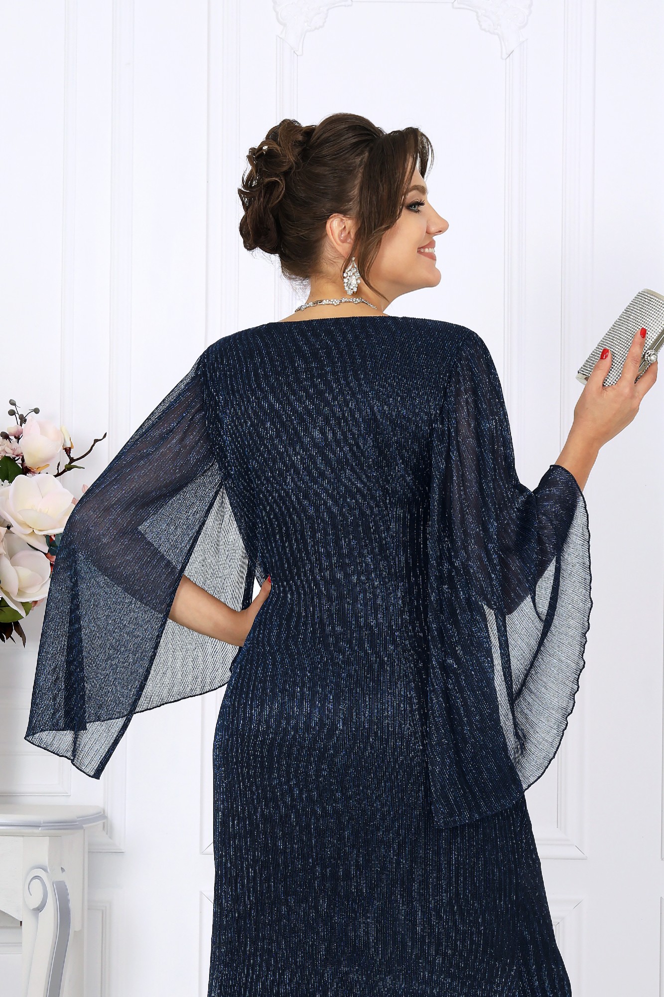 Длинное вечернее платье из элегантной сетки-гофре с нитью люрекс мерцает при каждом движении, словно улавливая в себе отблески огней. Этот деликатный блеск смотрится дорого и изысканно, создавая неповторимый аристократичный образ. Особое внимание заслуживает рукав — лёгкий, без шва, с изящно ниспадающими краями. Его воздушность придаёт образу загадочность и утончённость, а необычный крой с драпировкой и сборкой по линии плеч делает движения пластичными и грациозными. Фигурный вырез горловины придаёт образу нотку смелости, но остаётся выдержанным и гармоничным. Это платье прекрасно подходит для особых случаев: свадьбы, юбилея, званого вечера или торжества. Оно одинаково уместно в праздничной, свадебной или официальной атмосфере, позволяя вам ощущать себя королевой момента. Модель идеально подойдёт женщинам с формами — за счёт продуманного кроя она выгодно подчёркивает достоинства и деликатно скрывает лишнее, формируя правильный силуэт. Выбирая эту модель, вы выбираете не просто наряд, а состояние души — ощущение уверенности, стиля и особой значимости каждого момента. Платье женское, прилегающего силуэта с расширением к низу, выполнено из сетки-гофре с нитью «люрекс». Модель на трикотажной подкладке, без застежки, с плечевыми накладками. В верхней части переда косой подрез со сборкой; в шов подреза входит задрапированный декоративный элемент. На спинке обработаны таллиевые вытачки. Вырез горловины переда и спинки округлой формы, по переду углубленный. Рукав без шва, с отлетными краями и фигурным низом, по окату сборка; крепится к пройме только в верхней части. Пройма окантована узкой косой бейкой из основного материала.